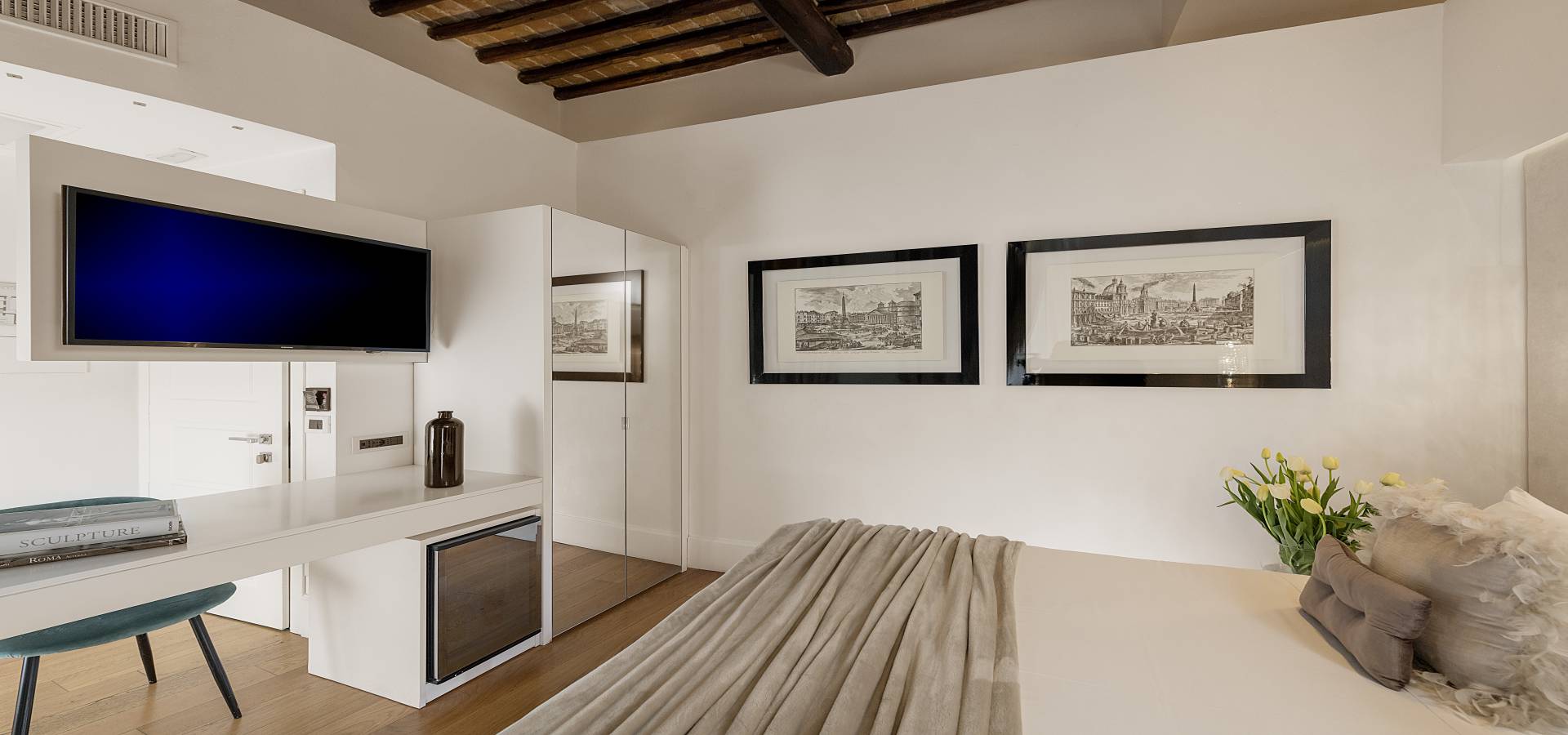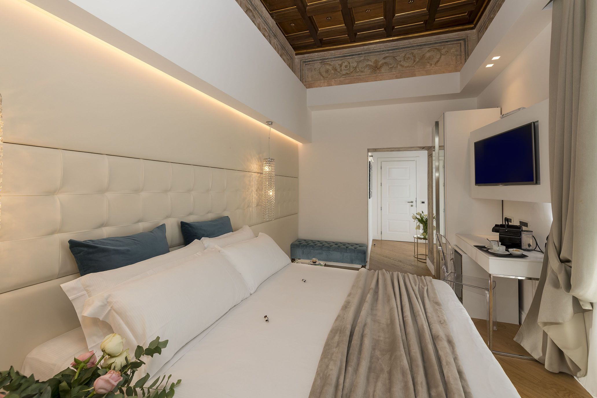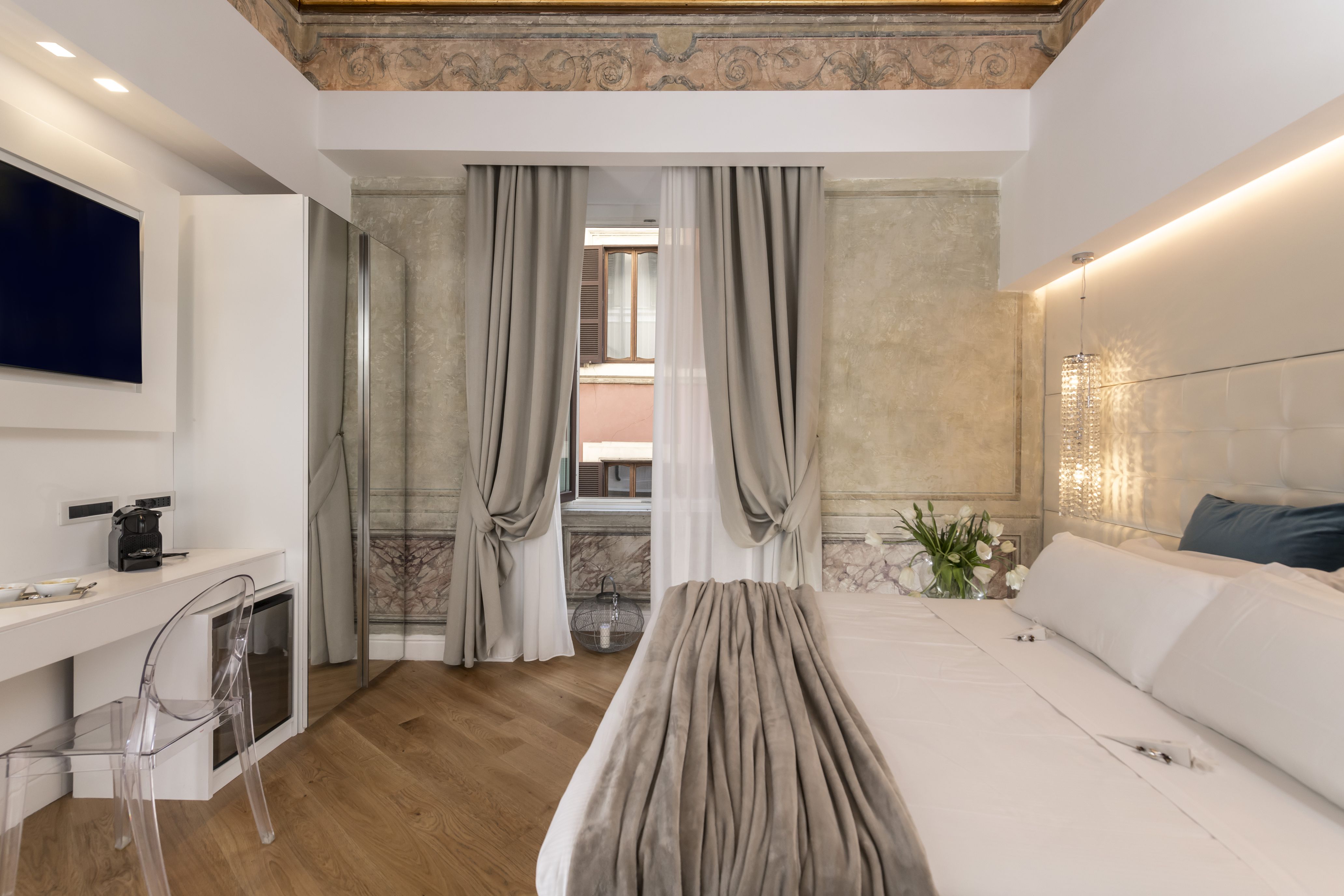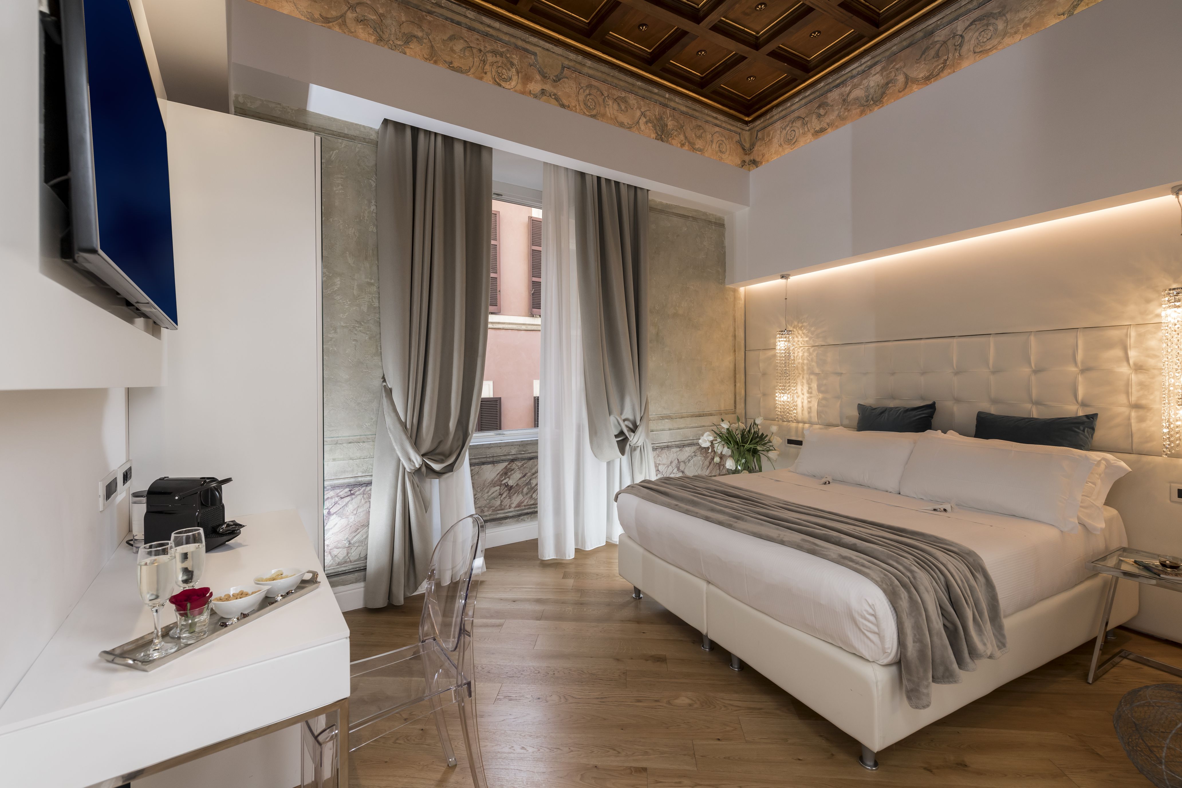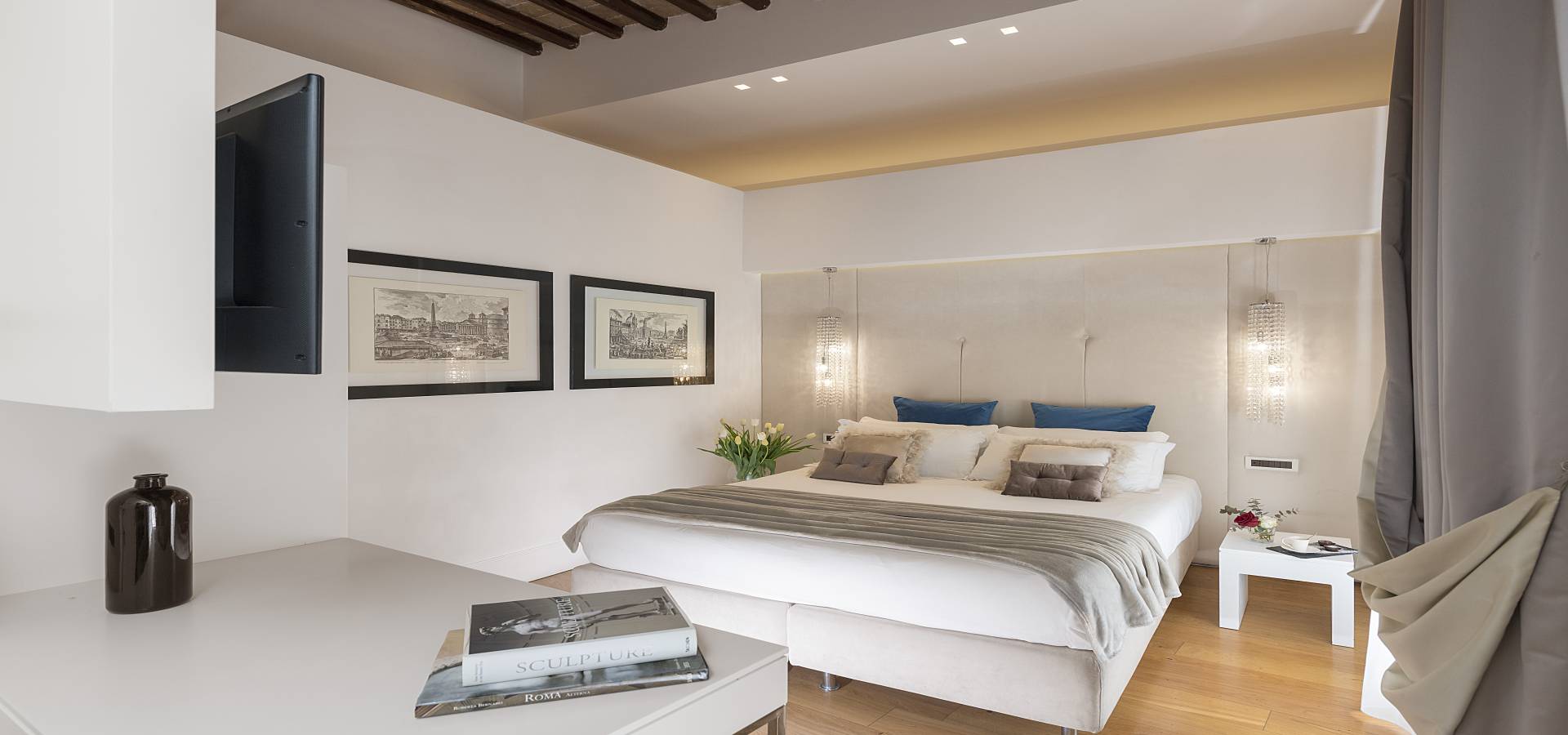 La Suite è la scelta ideale per un soggiorno di lusso a Roma, tra soffitti affrescati e design contemporaneo negli arredi. Dotata di vasca idromassaggio Jacuzzi è perfetta per trascorrere romantici momenti di relax in compagnia del proprio partner di viaggio.