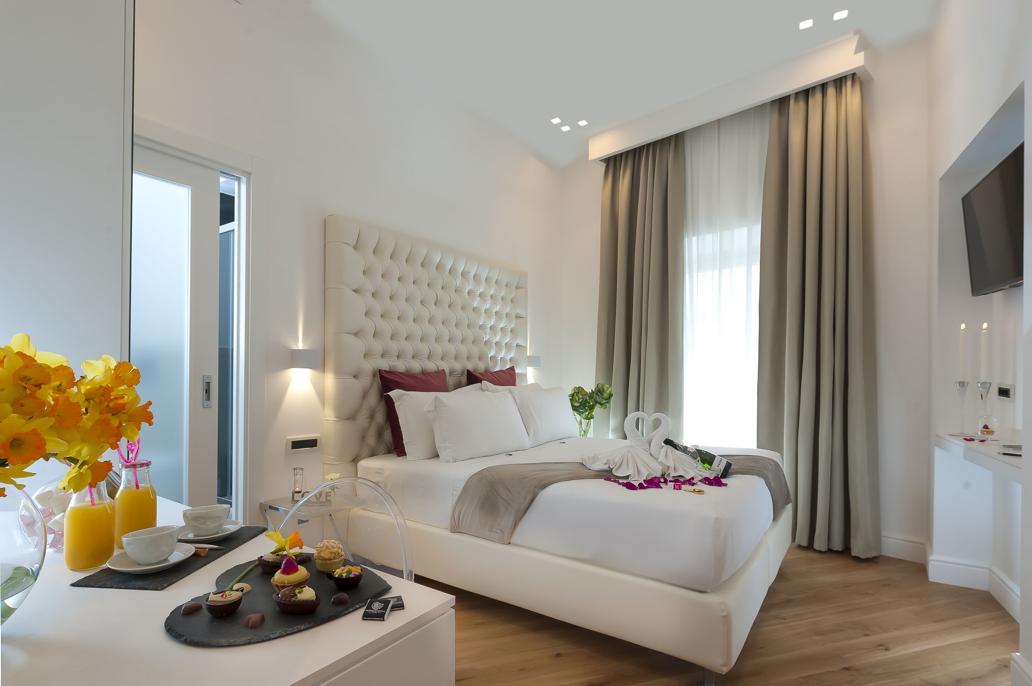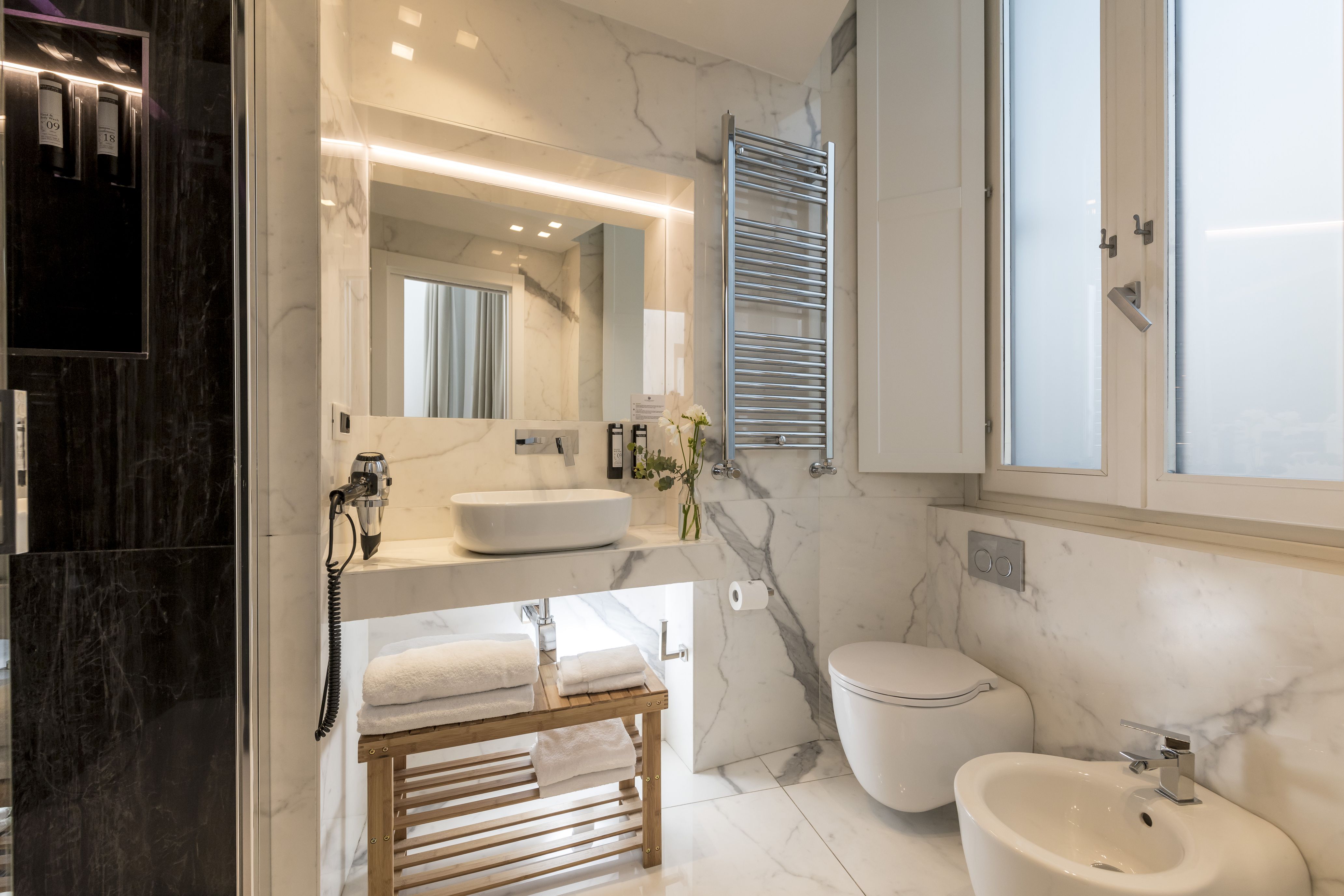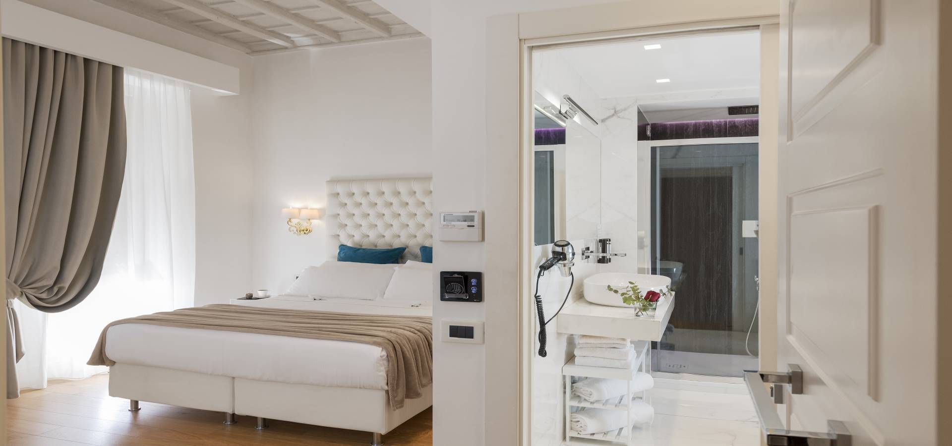 Dotate di un comodo letto matrimoniale queen size, divisibile su richiesta in due letti singoli, e un ampio bagno in marmo, dotato di un'ampia doccia emozionale e un kit cortesia per gli ospiti.