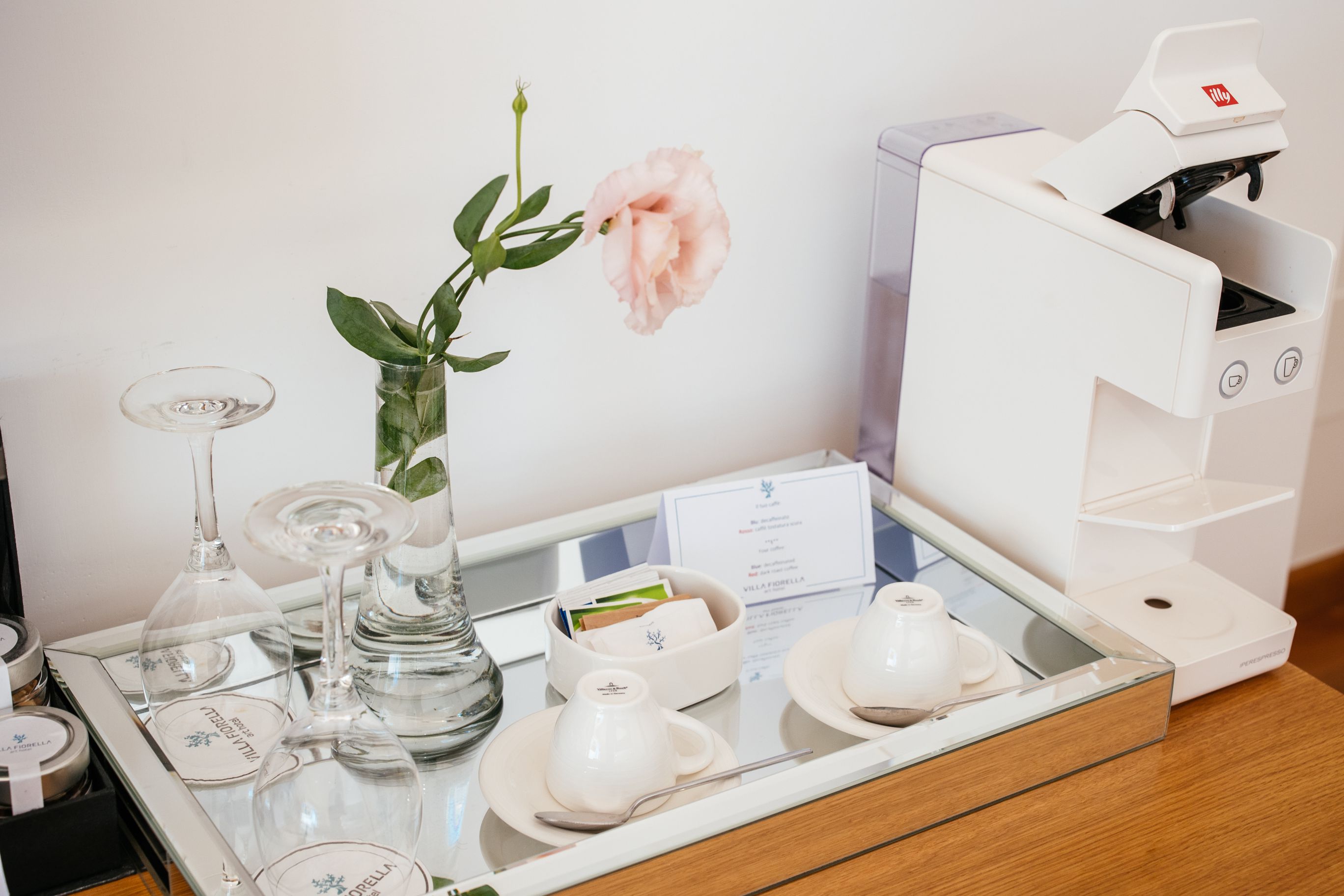 Prodotti da bagno ETRO e biancheria FRETTE. Macchina espresso Illy.
