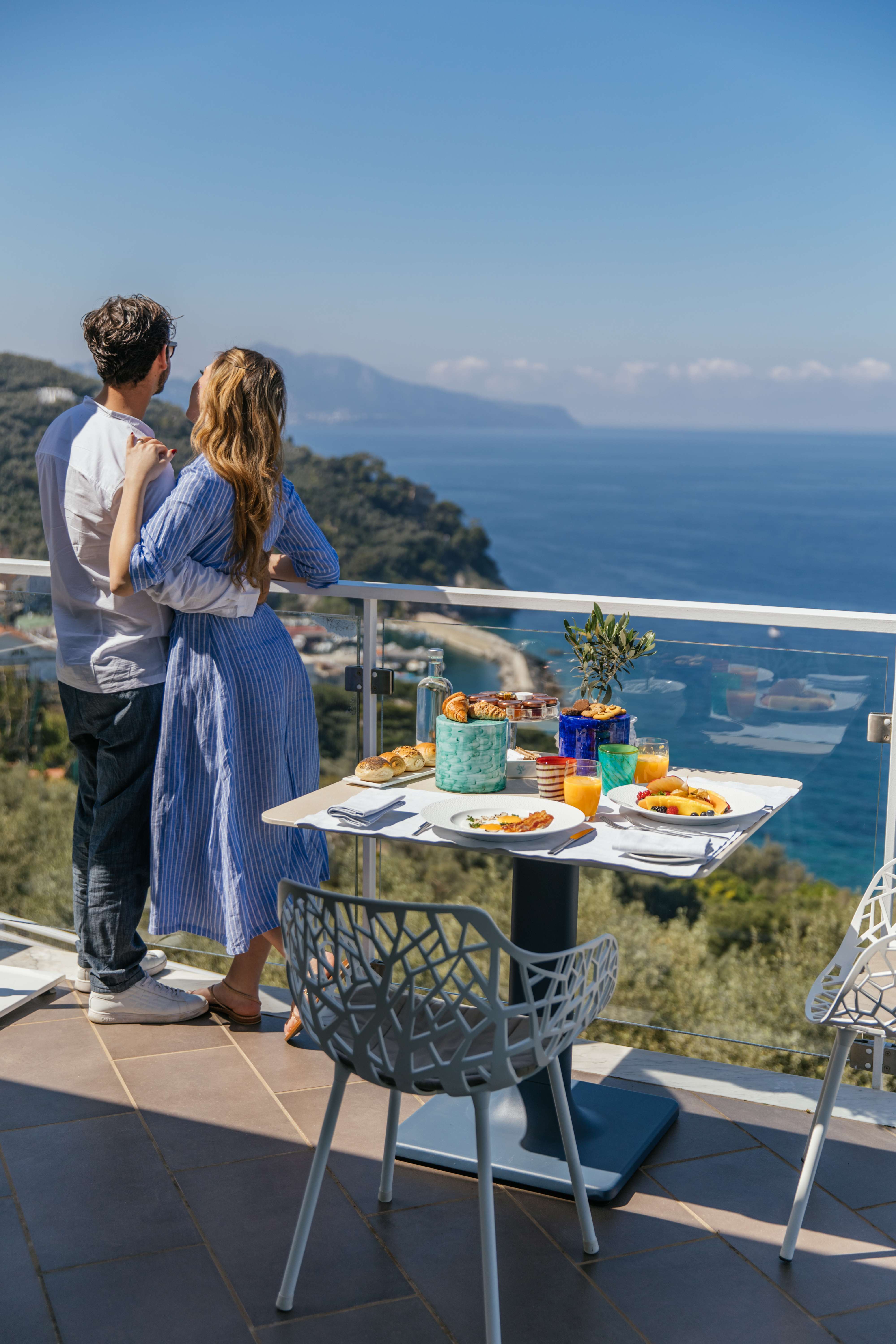 Le nostre Junior Suite Vista Mare, situate ai piani superiori, hanno balcone o terrazzo arredato da cui ammirare una vista mare mozzafiato. Bagno con cabina doccia, prodotti da bagno ETRO e biancheria FRETTE. Macchina espresso Illy.