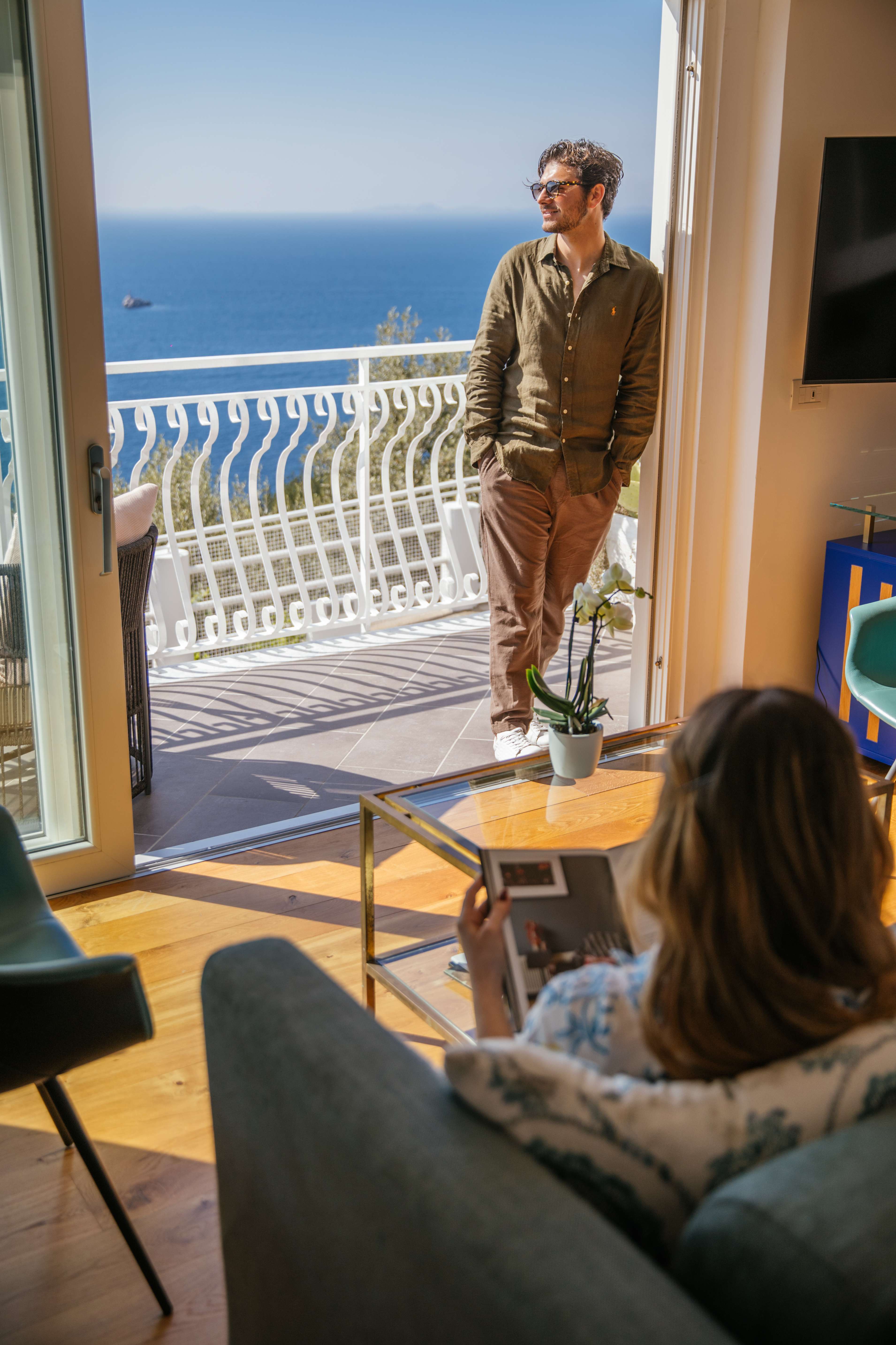 Molto più di una camera, la nostra Junior Suite Blue Capri, con le sue grandi finestre e il suo balcone arredato, è un'esperienza di lusso sul Mediterraneo, per svegliarsi vista Capri. La camera dispone di