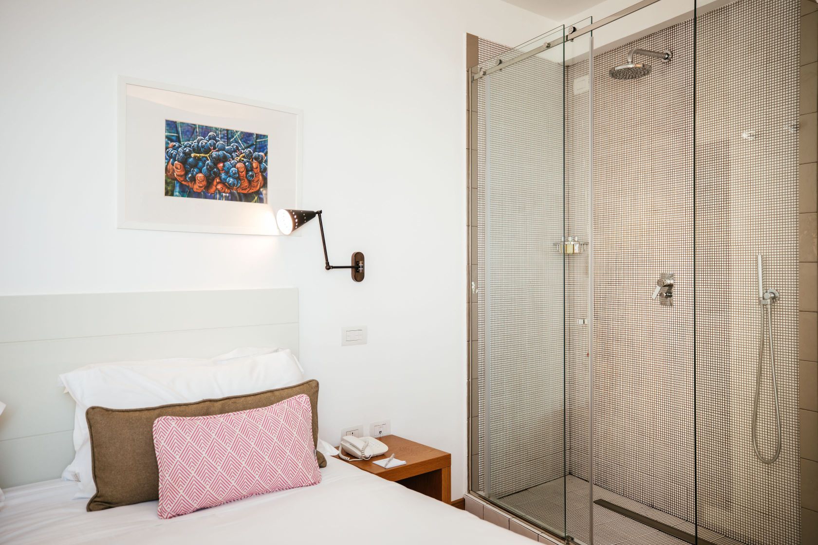 Le camere Comfort hanno balcone alla francese con vista interna, tutte con cabina doccia (alcune camere hanno doccia a vista in camera), linea cortesia ETRO e biancheria FRETTE. Ideali per un soggiorno con semplicità ed eleganza senza rinunciare alla comodità