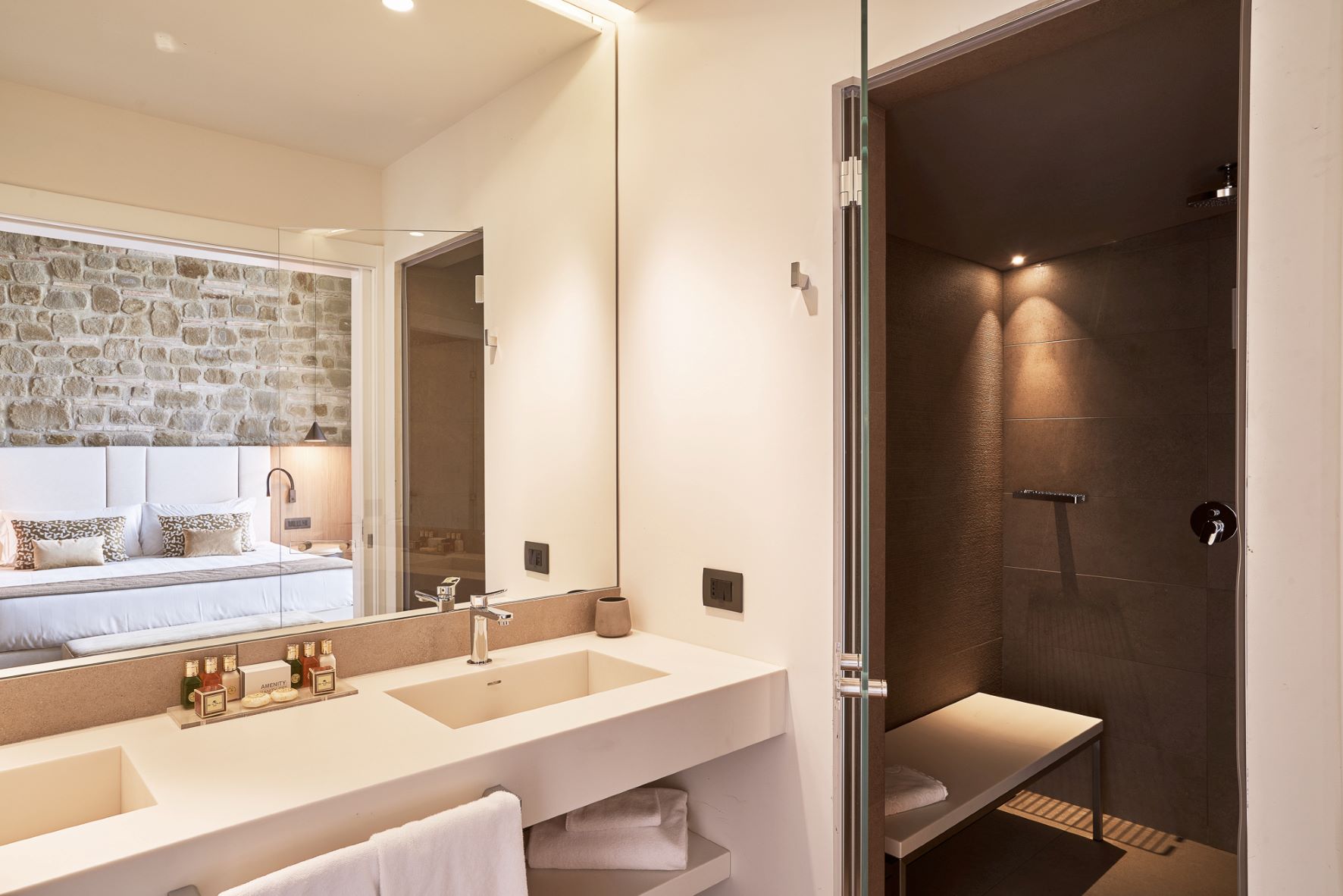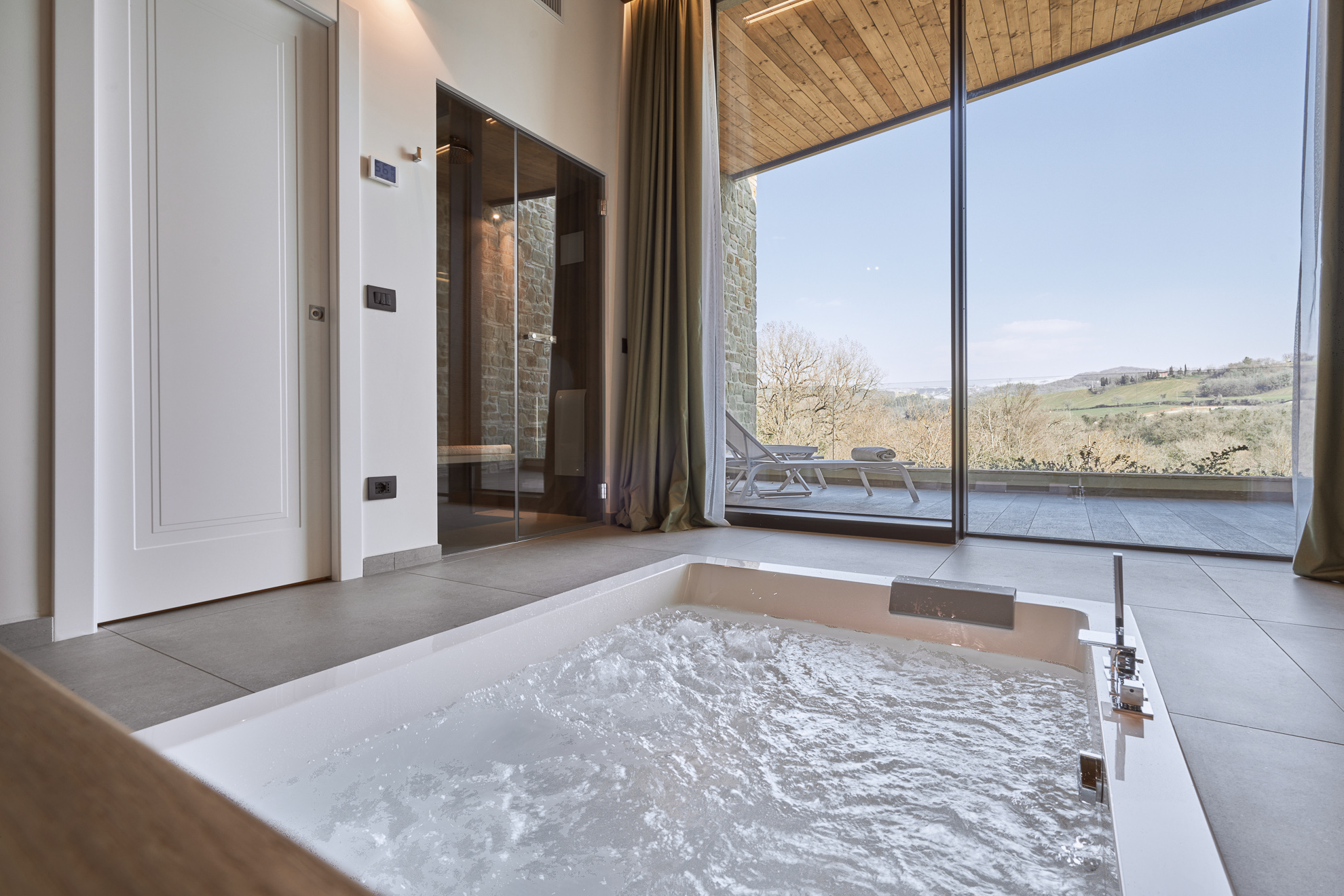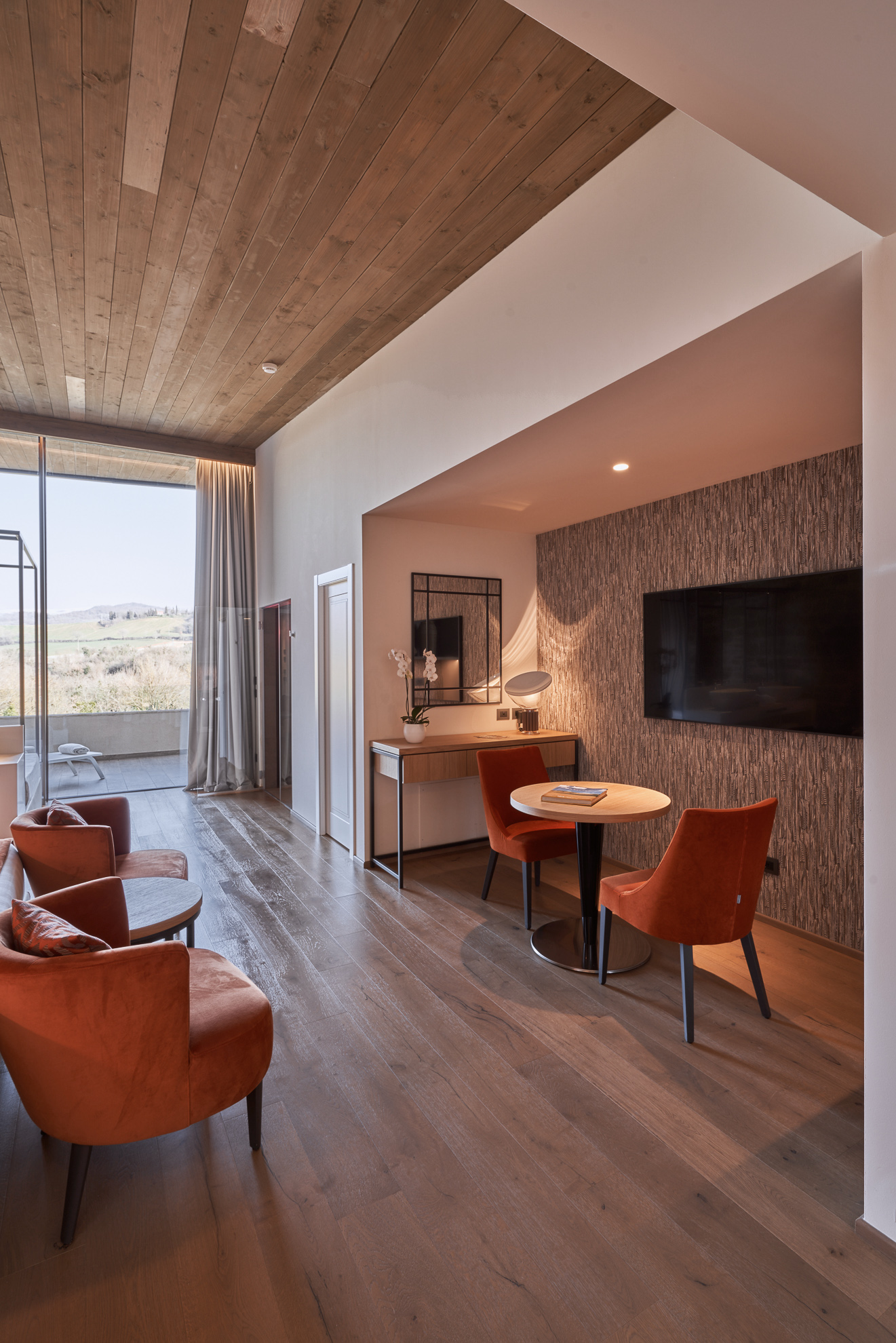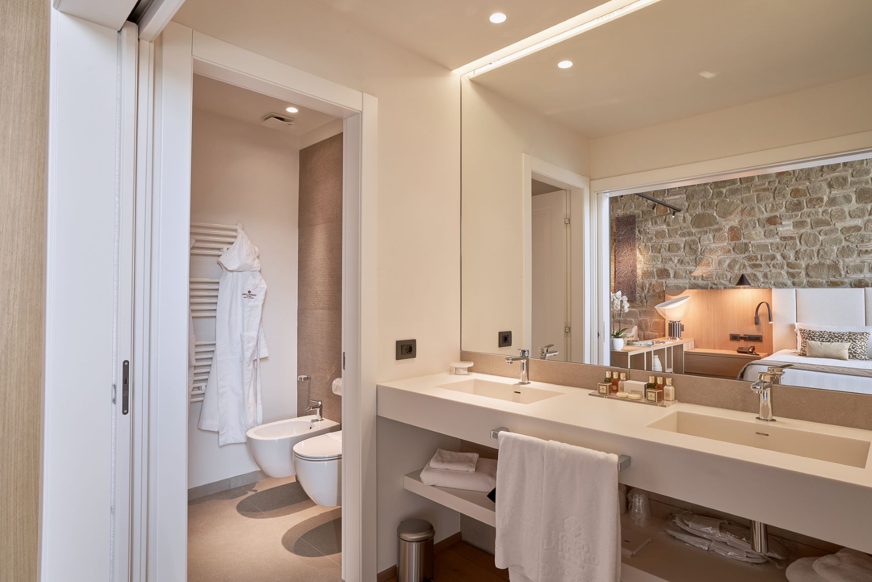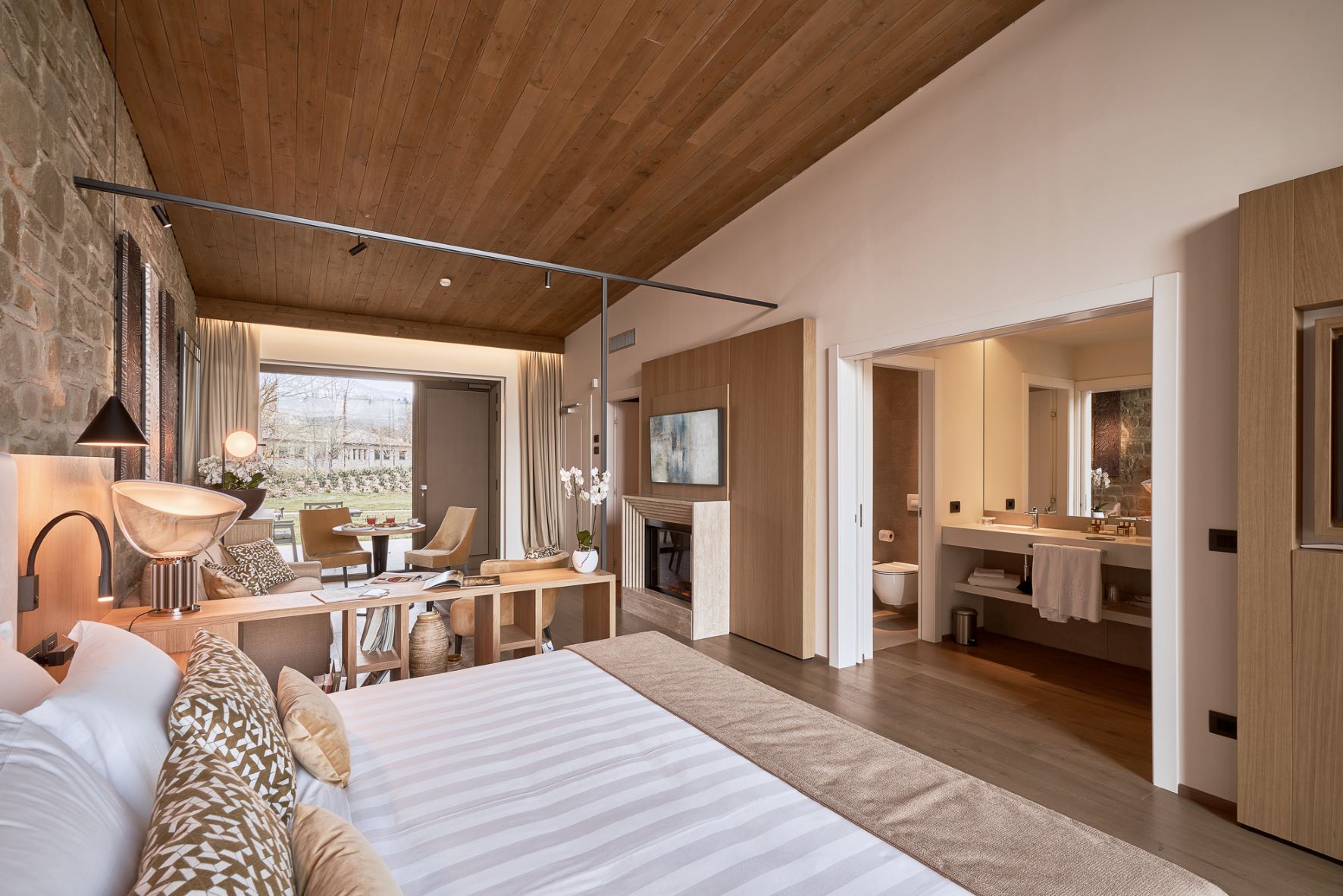 Double or twin bed, terracotta flooring and exposed wooden beams, private bathroom with bathtub or shower, independent heating/air conditioning, safe, Smart TV, and FREE Wi-Fi connection.