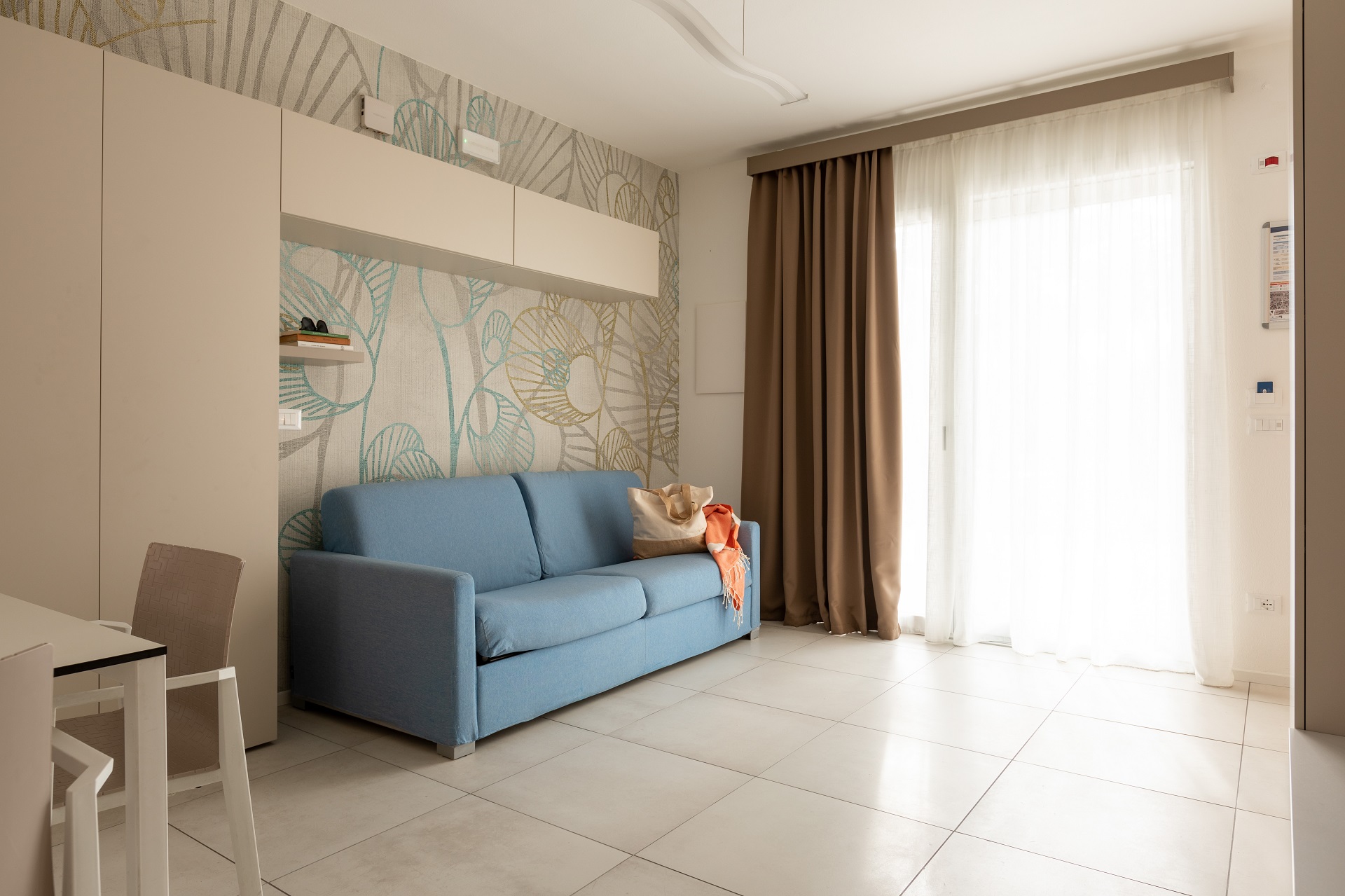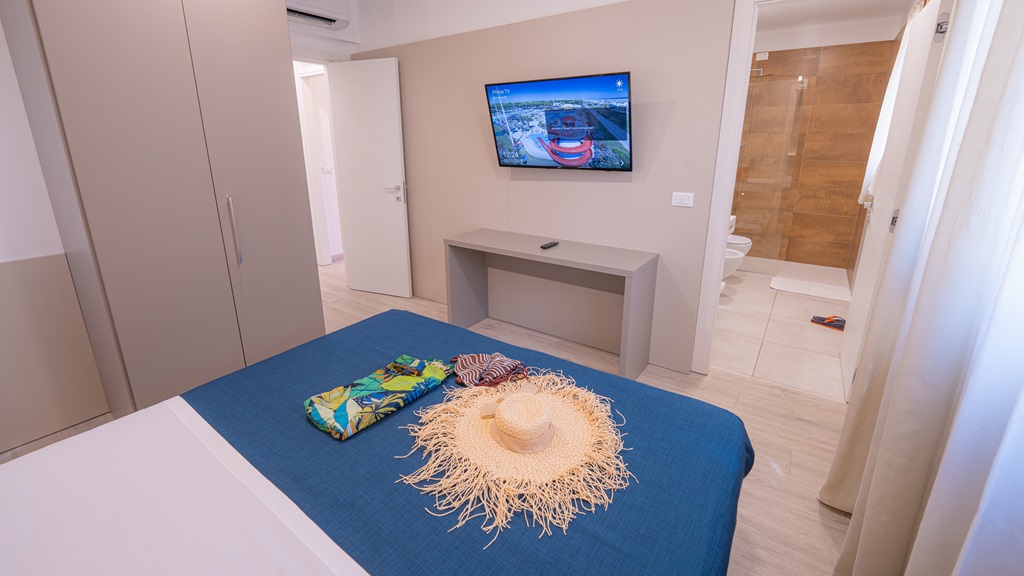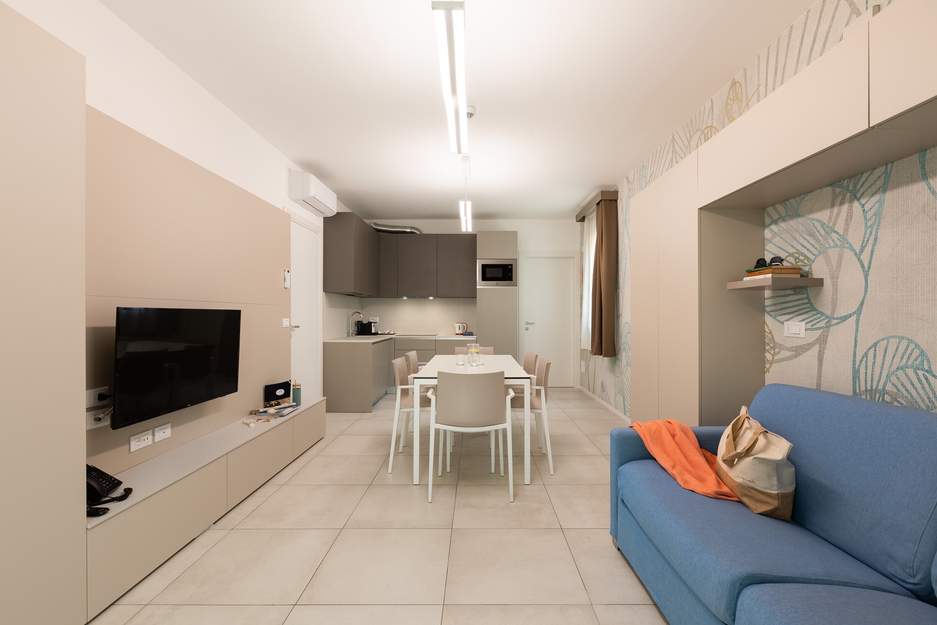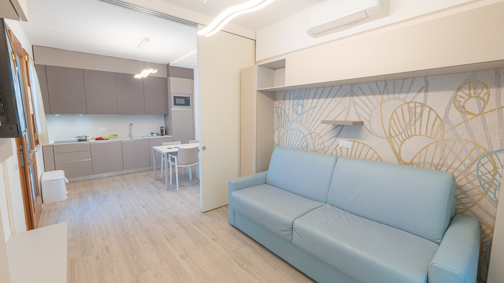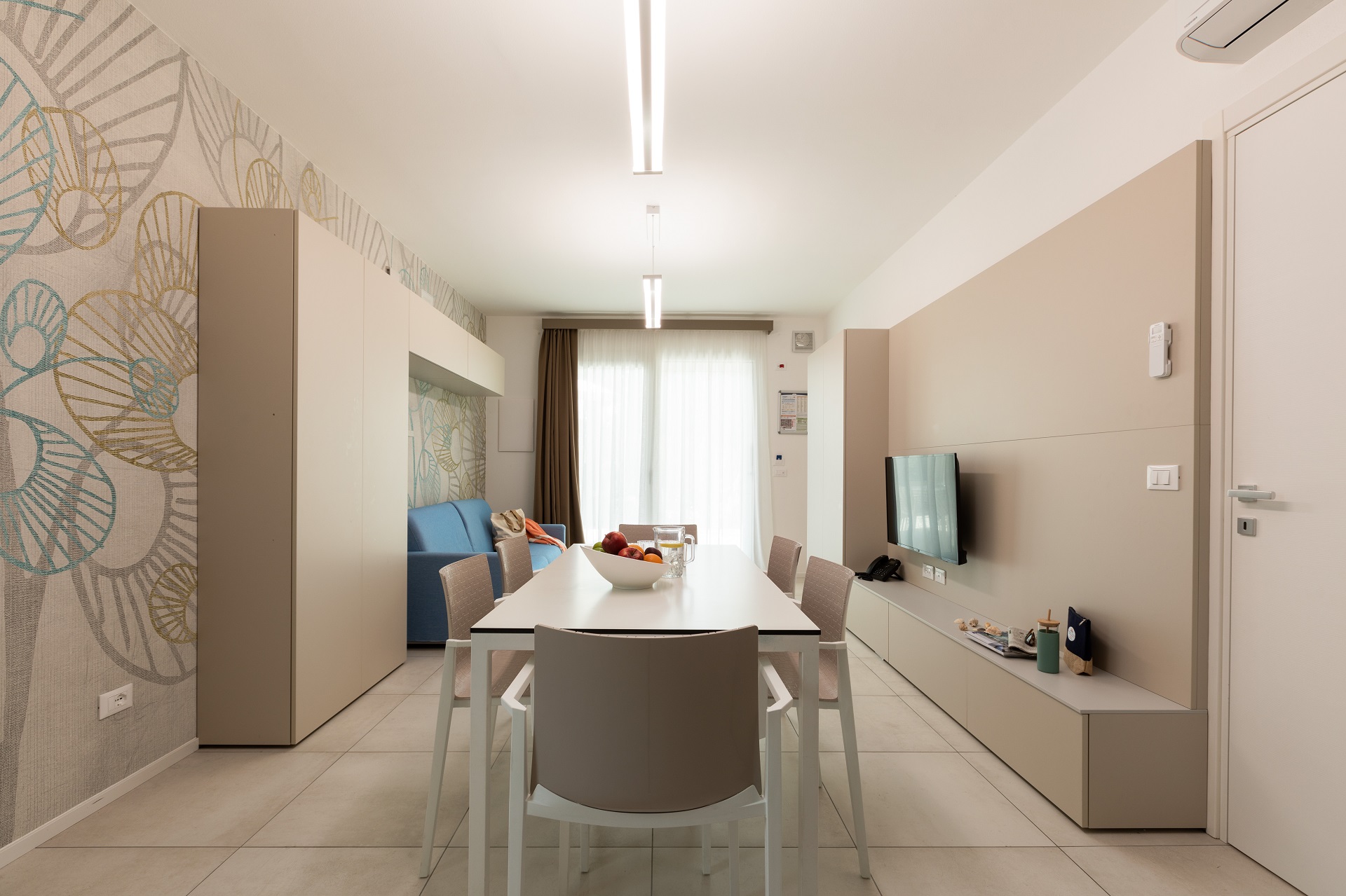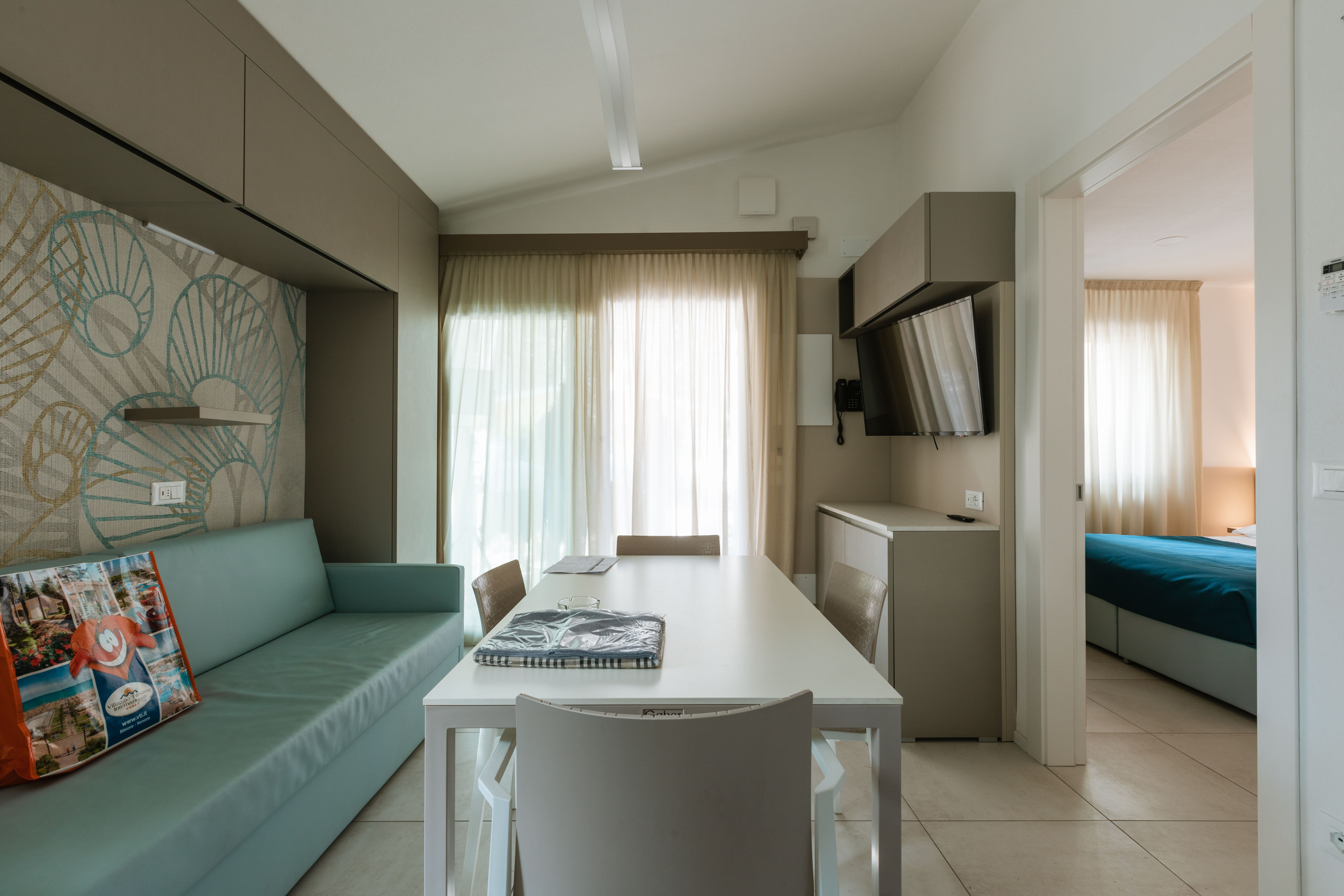 Stellen Sie sich Ihren Urlaub in einer komplett renovierten Wohnung im Herzen des Villaggio Turistico Internazionale vor, mit allen Annehmlichkeiten in unmittelbarer Nähe. Die Superior-Suiten befinden sich direkt über dem Gebäude im Zentrum der Anlage.