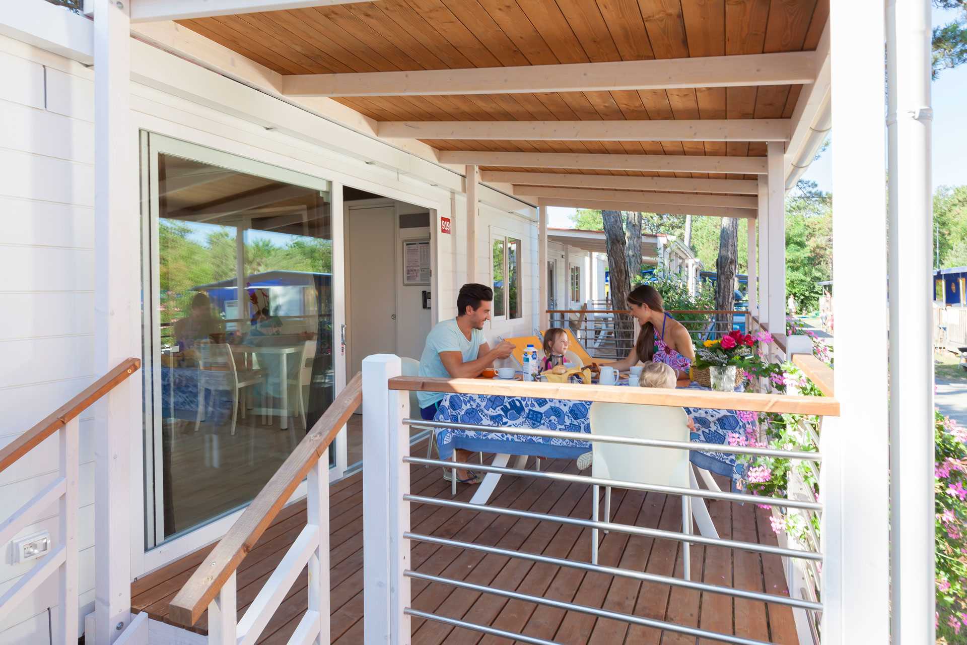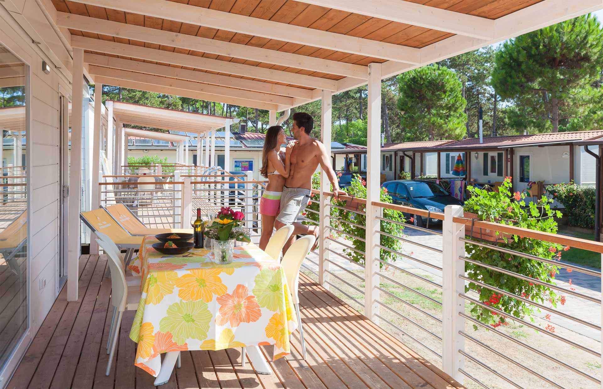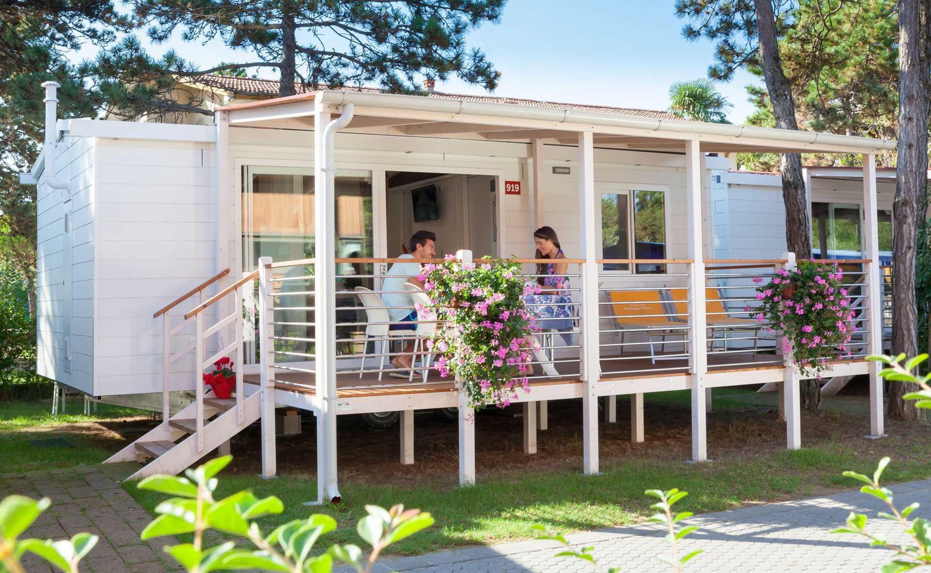 Mobilhome Platinum Mod. Crippa ist ein von unseren neusten Caravanstypologien und er ist geeignet für große Familie und Freundegruppe, bis 7 Personen. In Mobilhome Platinum Mod. Crippa werden Sie unsere gewohnte Qualität und Detailspflege finden. Alle Plus-Leistungen sind inbegriffen im Preis. Verpassen Sie nicht die Gelegenheit, einen entspannenden Urlaub zu verbringen! Größe: 9,4mt x 3,9mt (breite hölzerne Veranda 9,4mt x 3mt).