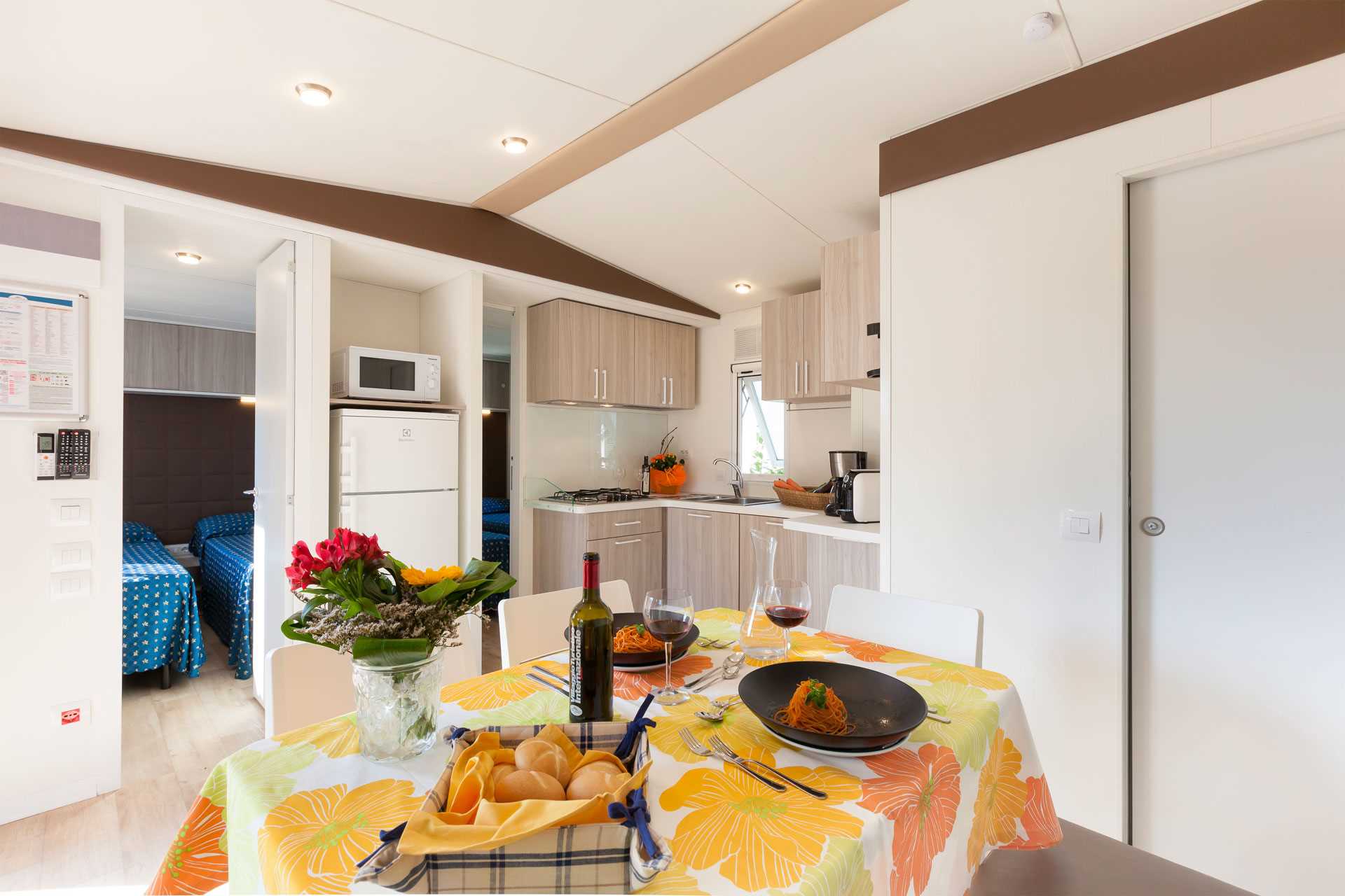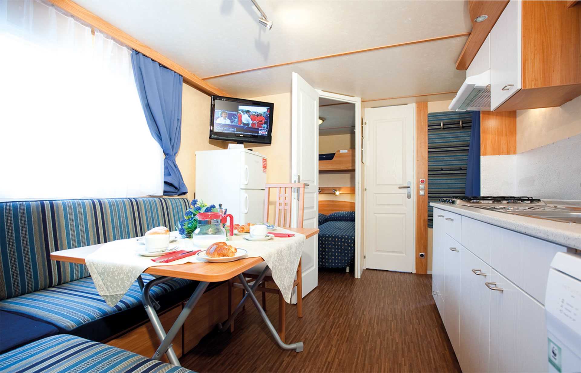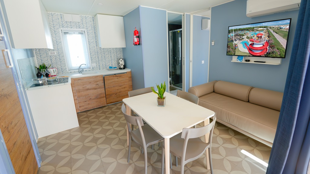 Die moderne Ausstattung und die gute Verarbeitung machen die Maxi Caravan Plus Mare zur idealen Wohnlösung, wenn Sie die Natur lieben, aber nicht auf Komfort und Service verzichten wollen. Sie liegen nur 300 m vom Strand und vom Schwimmbad entfernt und bieten Ihnen ein angenehmes und komfortables Erlebnis.