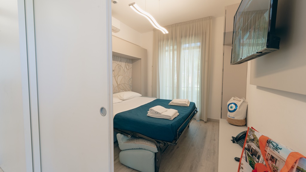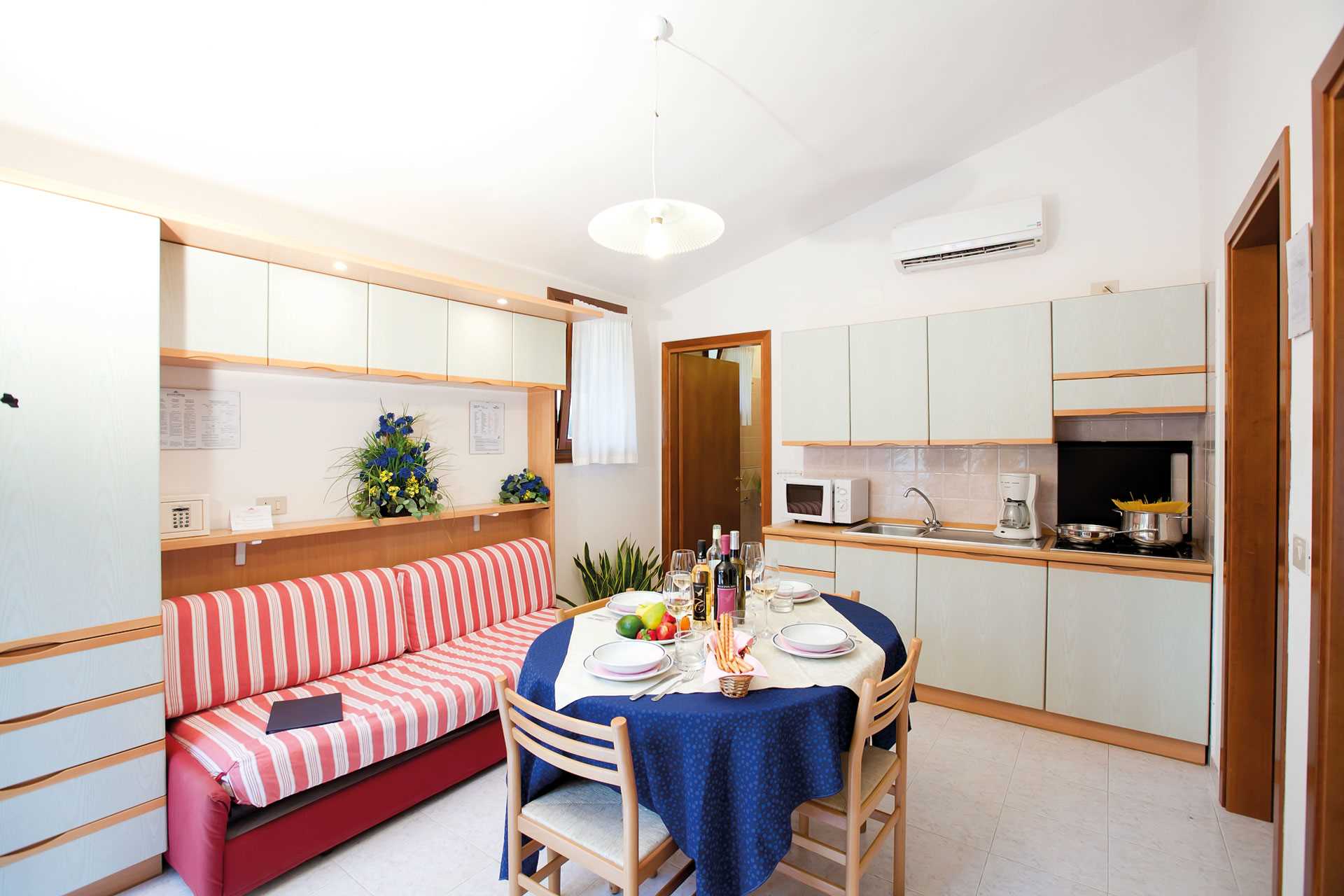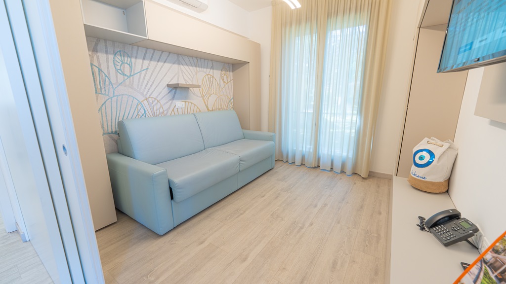 Die Annehmlichkeiten eines Hotelzimmers kombiniert mit den exklusiven Dienstleistungen des Dorfes: das ist der Urlaub, der Sie in unserer "Mini-Suite" Zimmer erwartet. Genießen Sie das Frühstück in unserem Restaurant und erleben Sie einen unvergesslichen Aufenthalt in Bibione.
