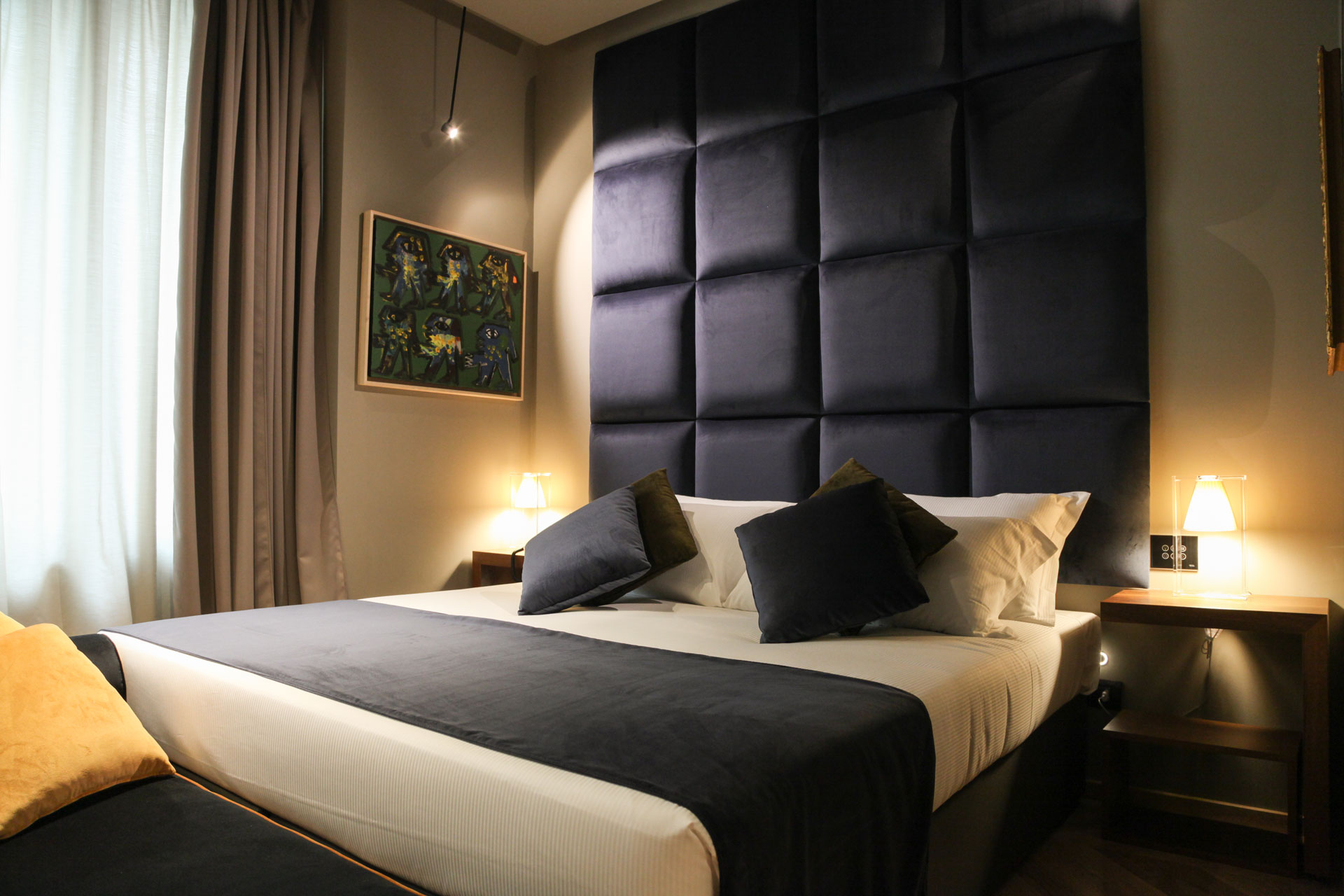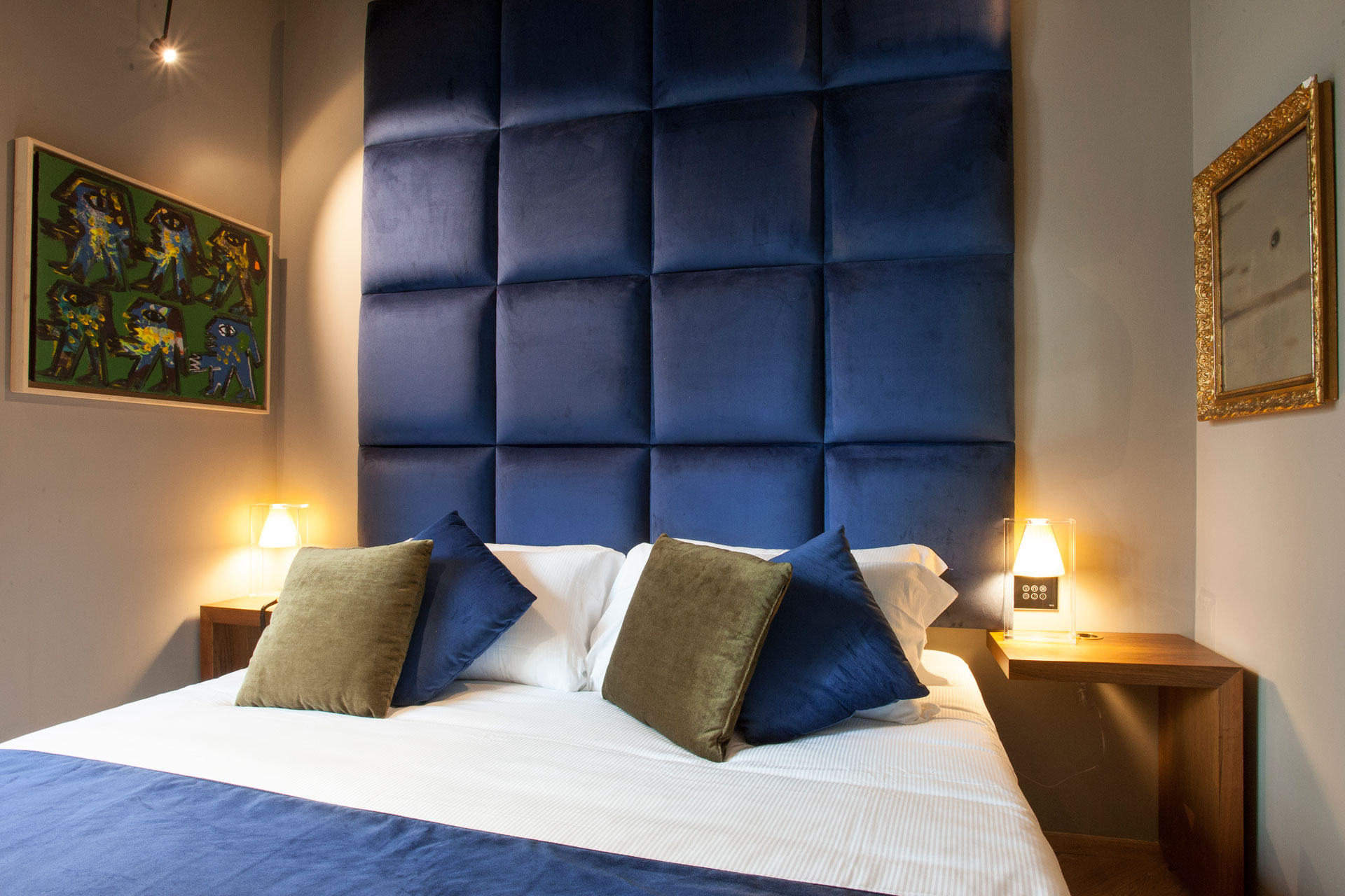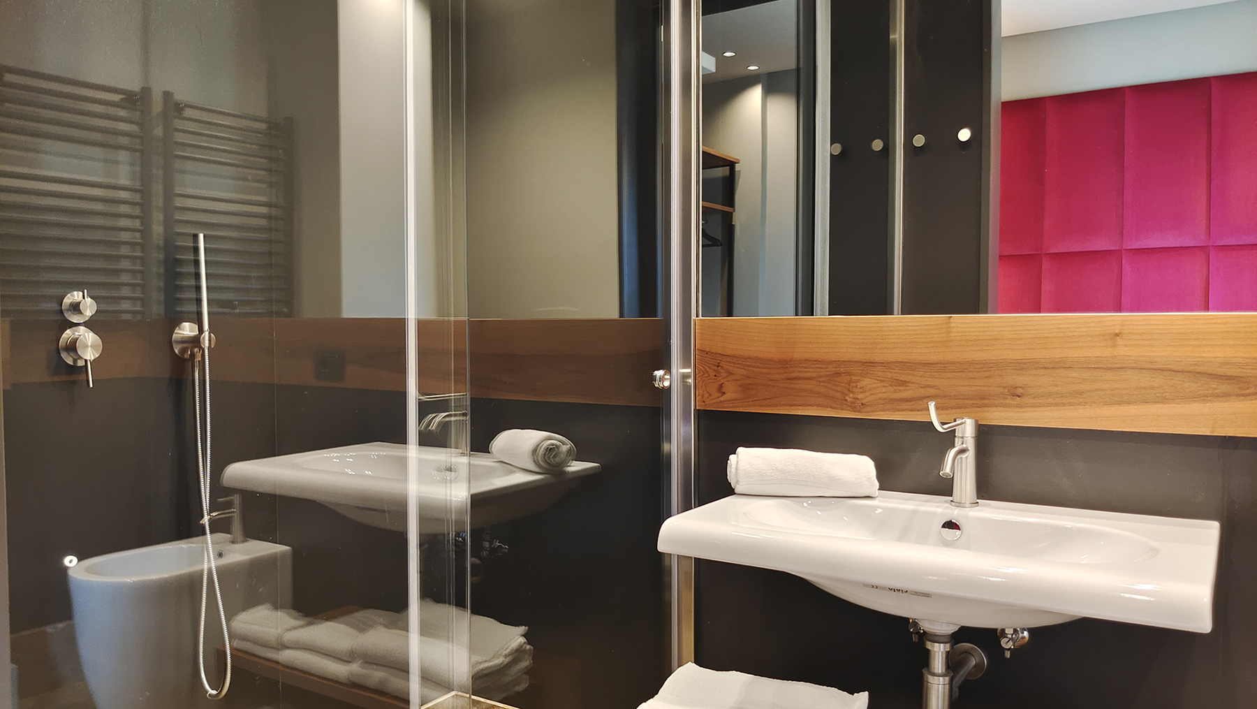 The Deluxe rooms, with a 22 sqm surface area, are beautifully decorated with parquet floors and fine carpets. Design furniture, walls adorned with contemporary style paintings and the bathroom with shower separated from the rest of the room by a glass satin wall. Double bed with maxi headboard, air conditioning, telephone, satellite flat-screen TV, Wi-Fi, tea/coffee-making facilities, hairdryer, safe and minibar. Cot beds are also available on request