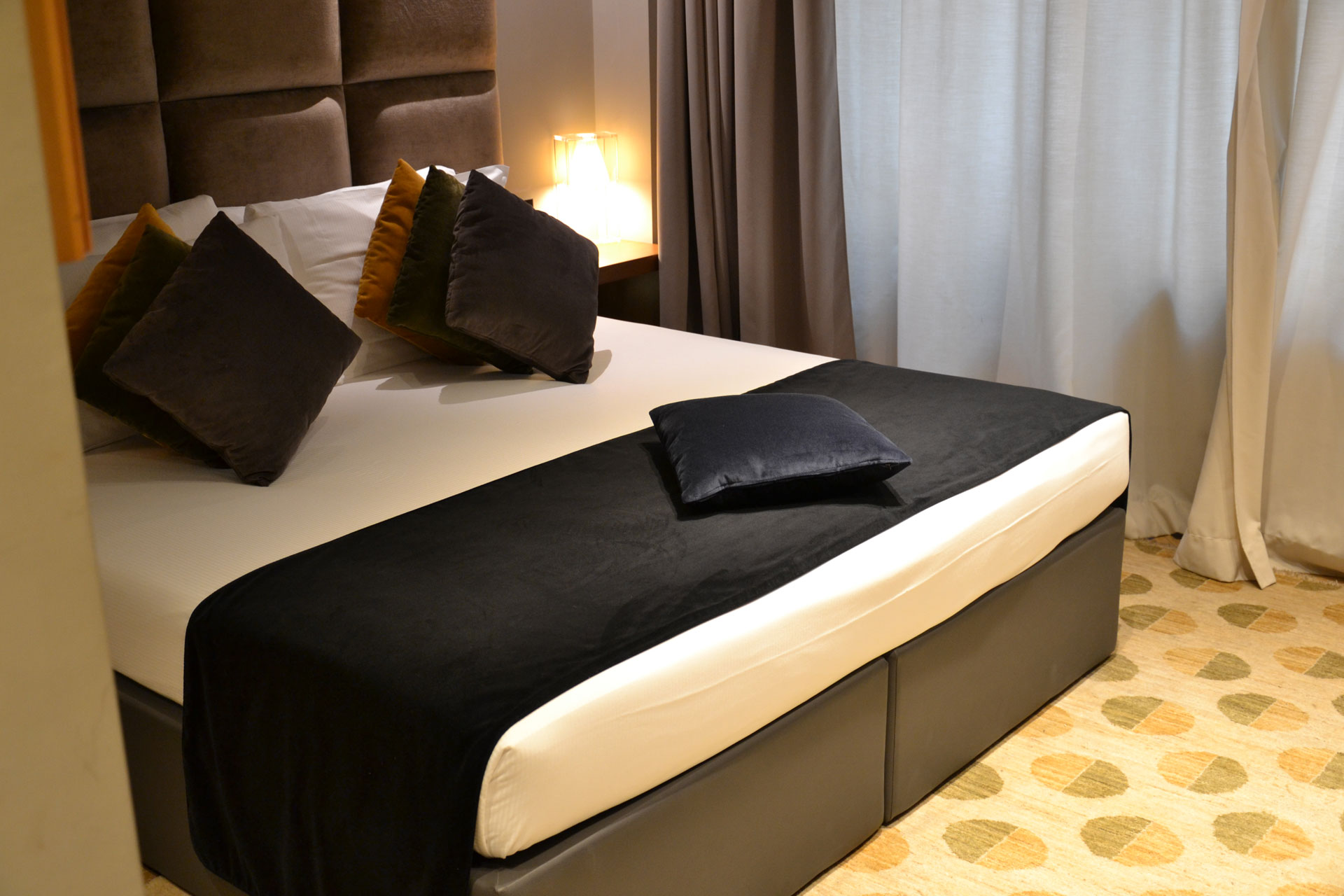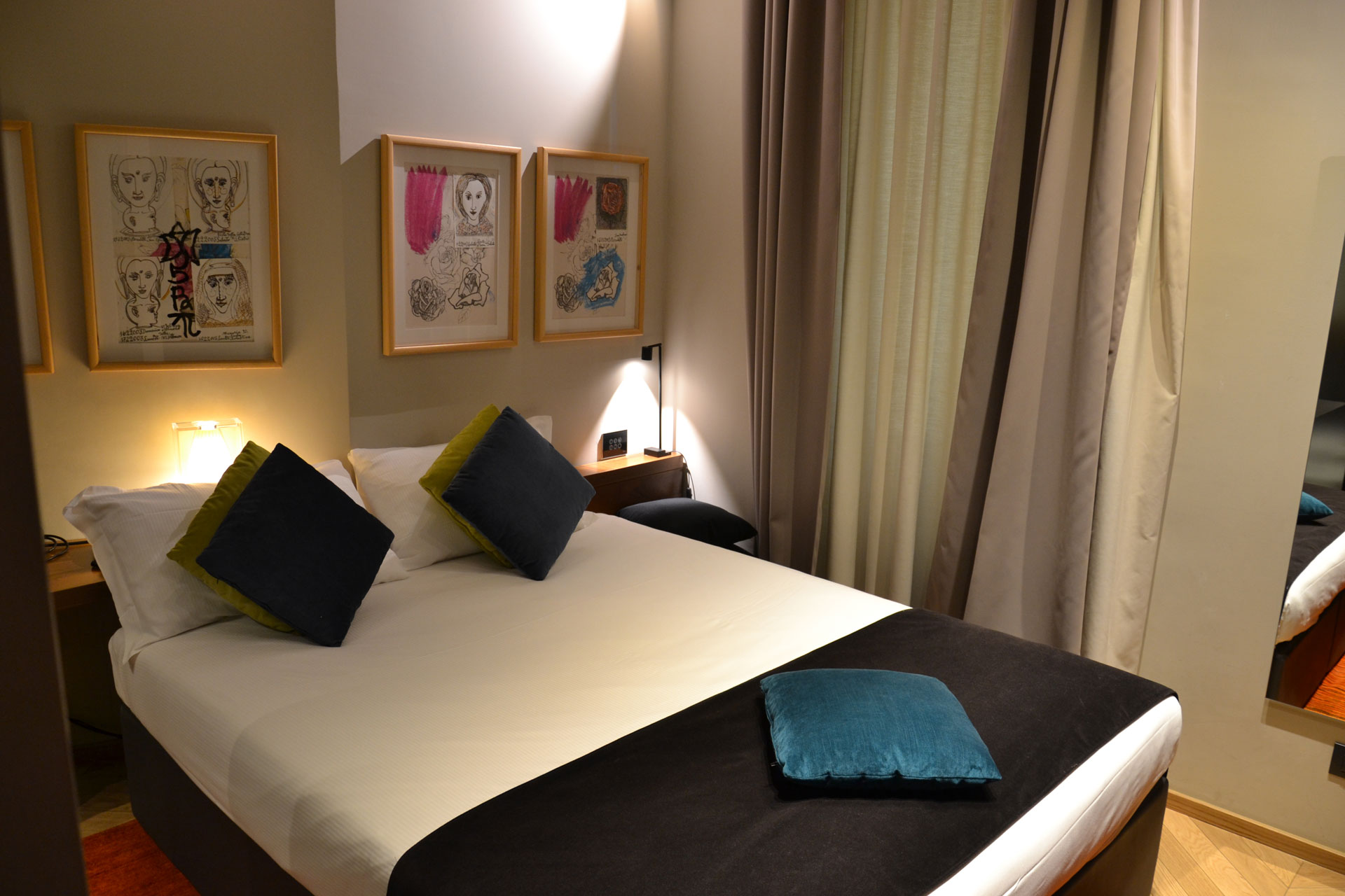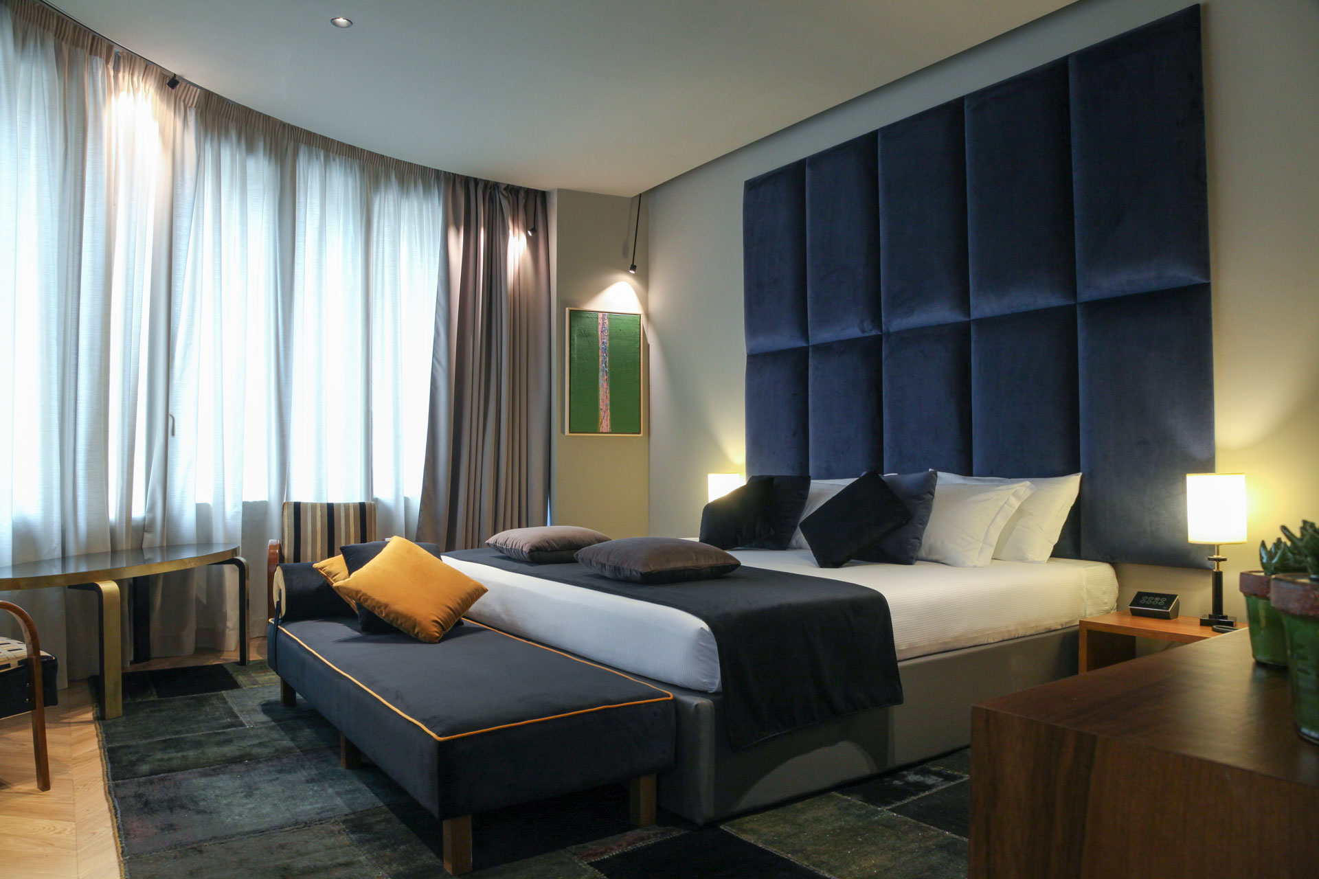The Deluxe rooms, with a 22 sqm surface area, are beautifully decorated with parquet floors and fine carpets. Design furniture, walls adorned with contemporary style paintings and the bathroom with shower separated from the rest of the room by a glass satin wall. Double bed with maxi headboard, air conditioning, telephone, satellite flat-screen TV, Wi-Fi, tea/coffee-making facilities, hairdryer, safe and minibar. Cot beds are also available on request