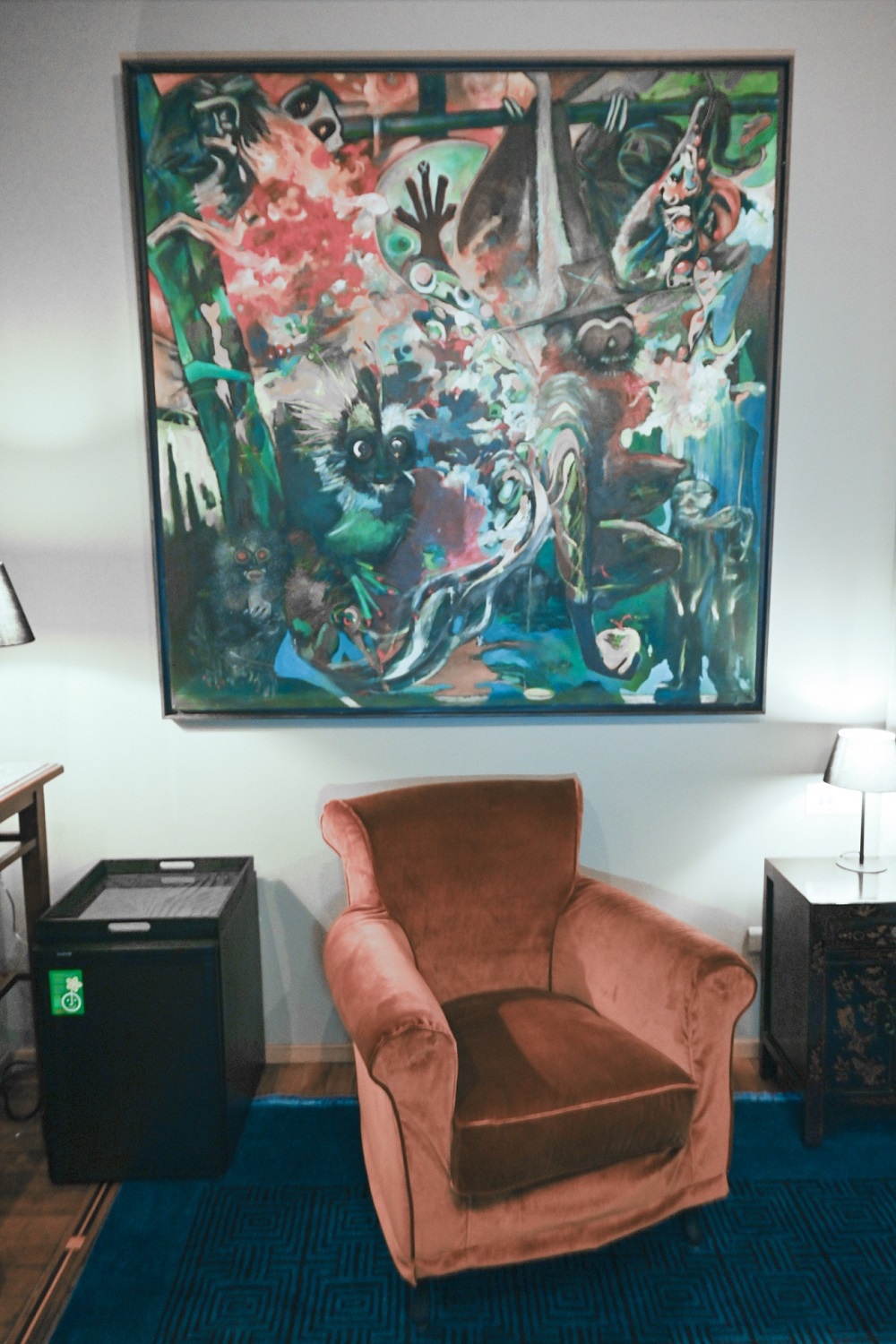 The presence of designer paintings and designer furniture combined with antiques create an eclectic style with a strong visual impact.