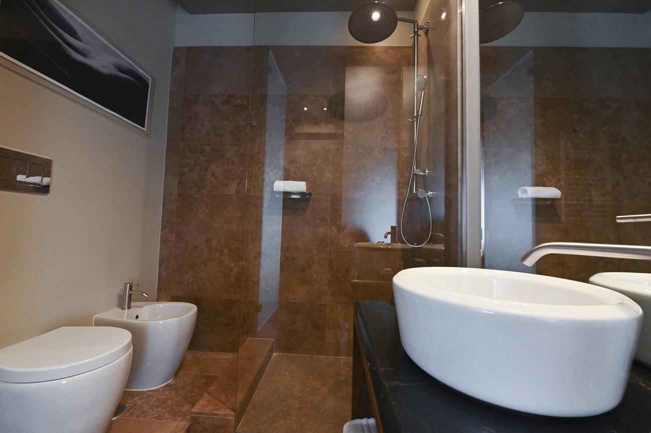 The rooms are completed by a bathroom embellished with polychrome marble and equipped with a large shower cabin and everything you need to make your stay pleasant.