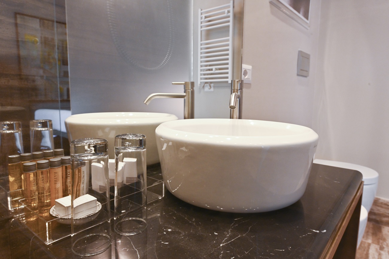 The rooms are equipped with private bathroom, finely decorated with marble and a large shower cabin.