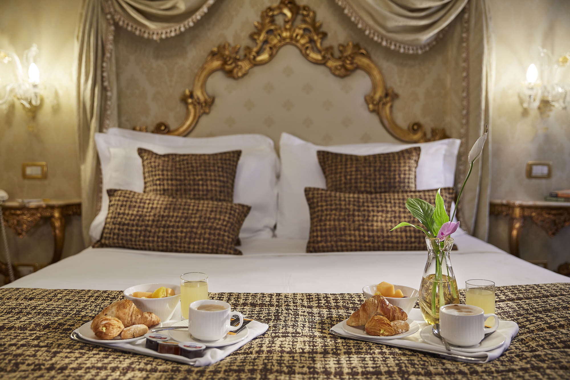 Eleganti ed immerse in una suggestiva atmosfera, ricche di luce e affacciate su un giardino, sono arredate con cura in stile veneziano del XVIII secolo. Disponibili nelle tipologie di doppia con letto