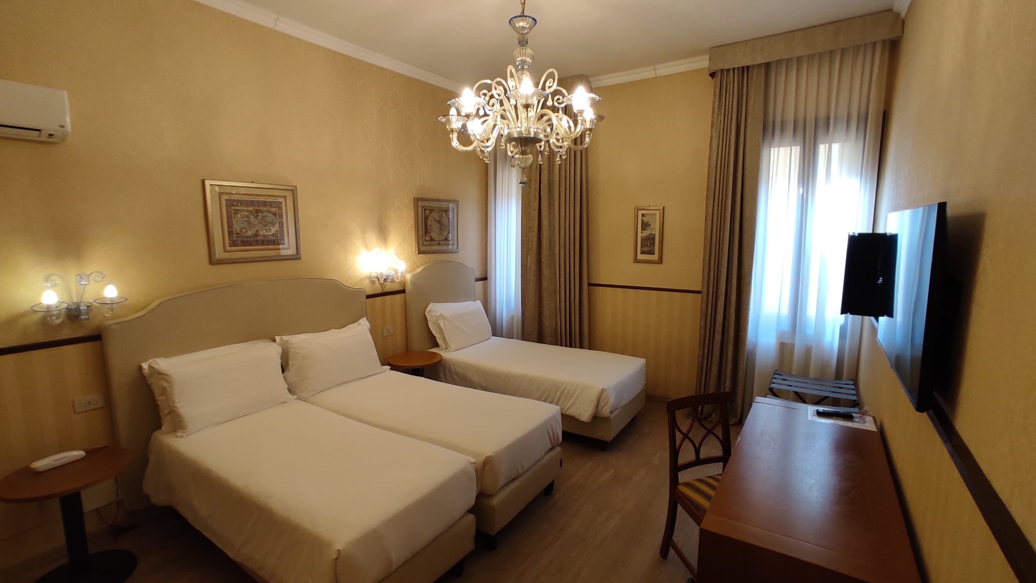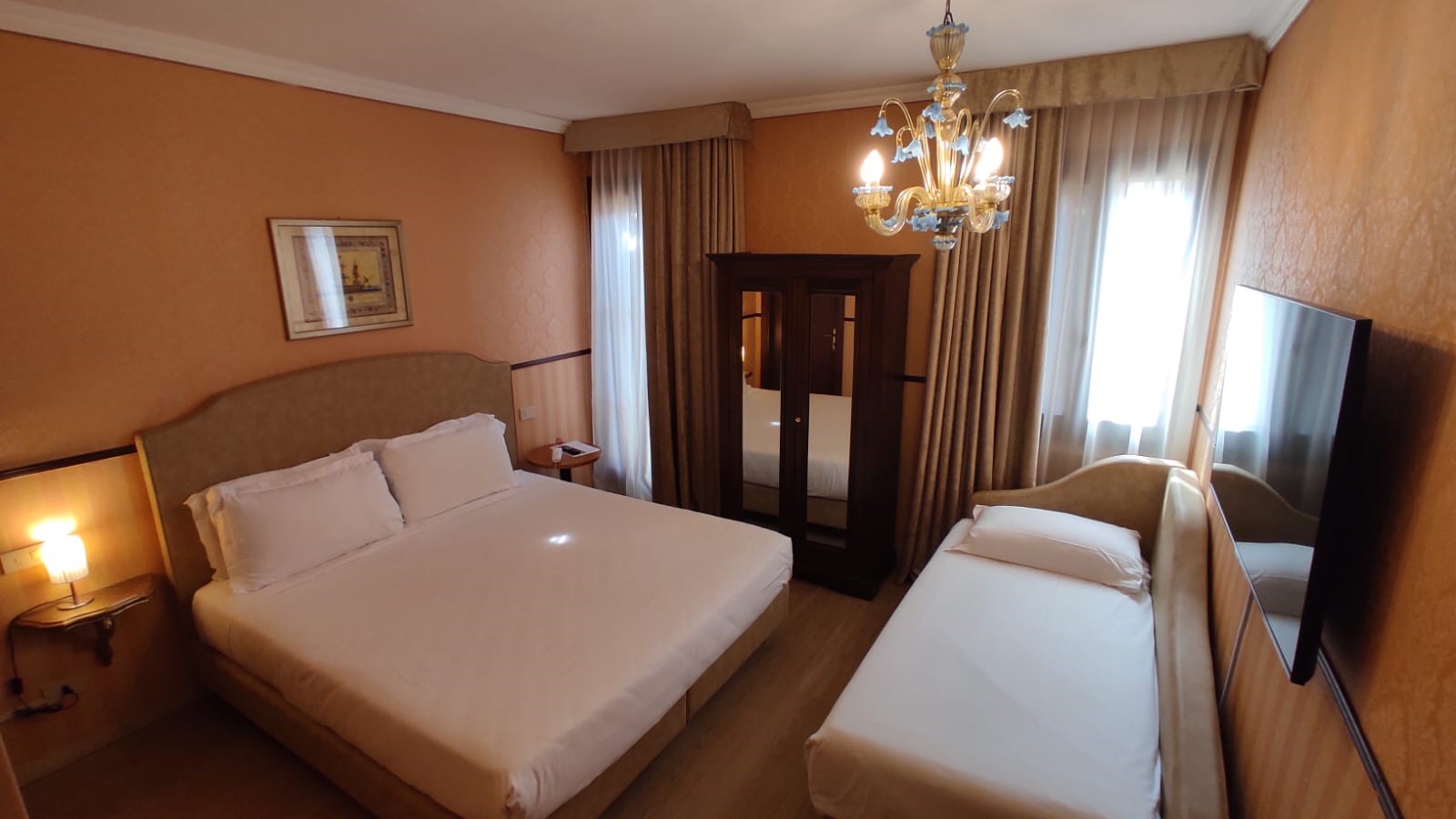 Accogliente camera non fumatori, dotata di bagno privato con doccia, asciugacapelli, aria condizionata/riscaldamento, TV satellitare, minibar, Wi-Fi gratuito, telefono, cassaforte e zanzariere.