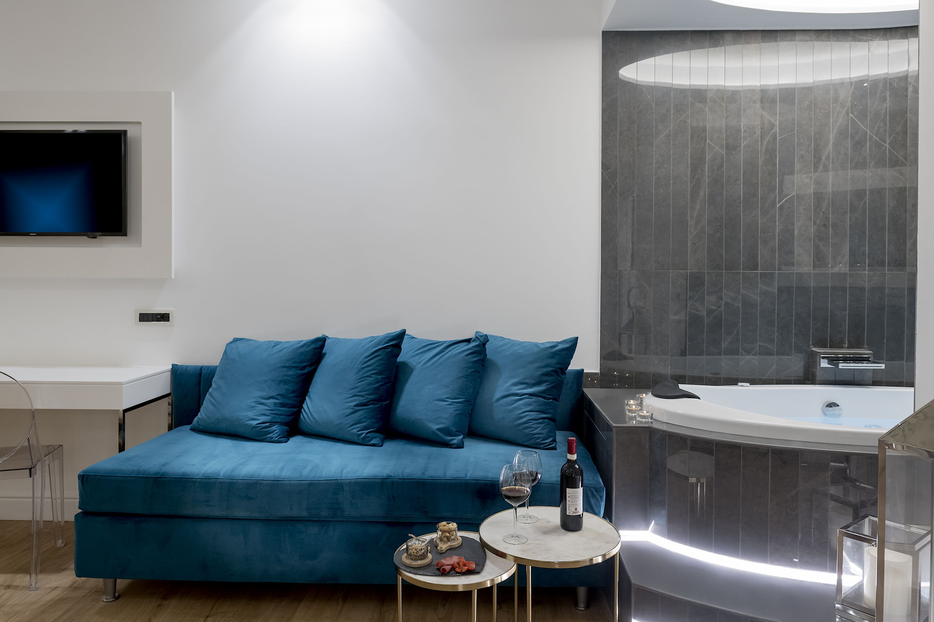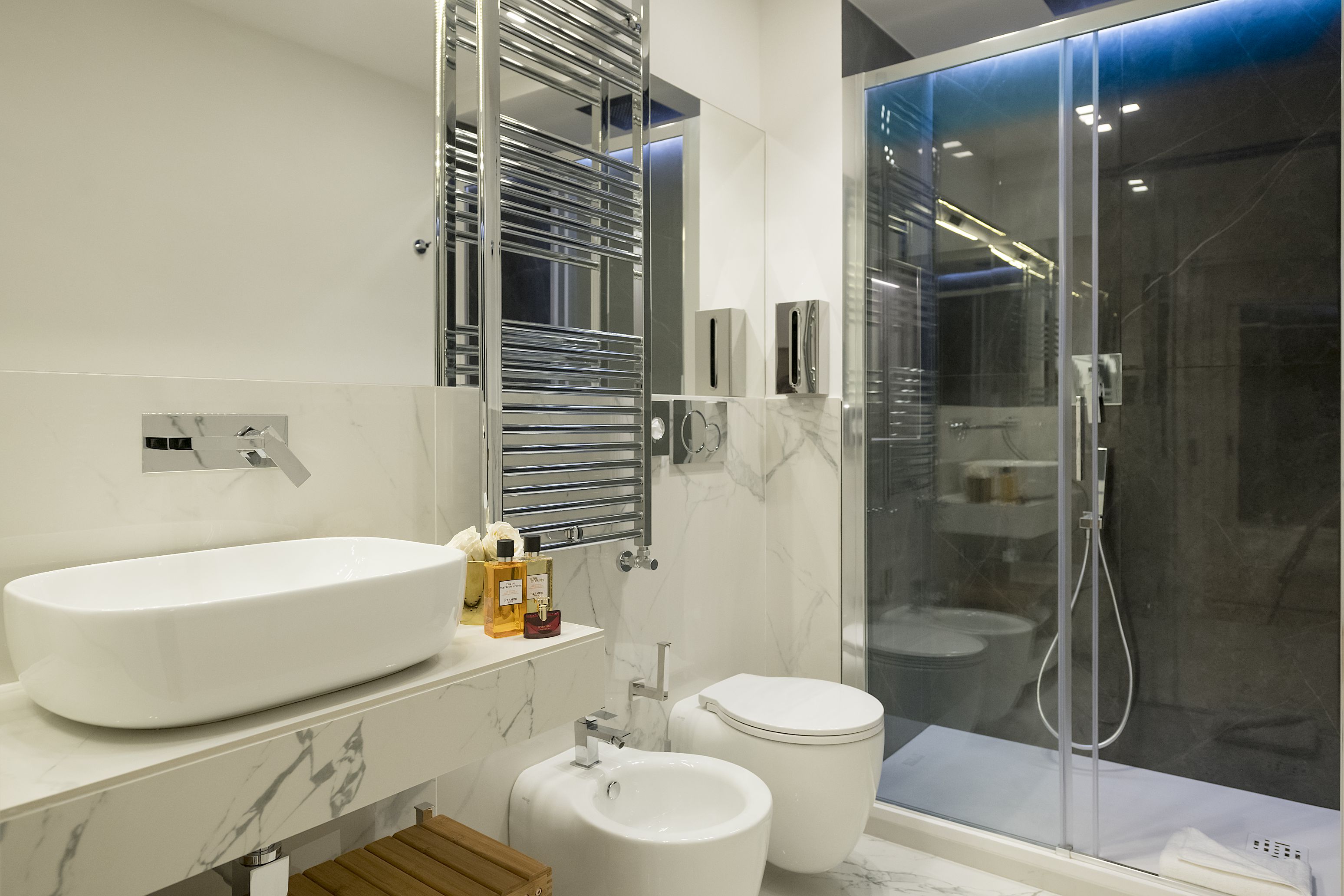 Dotata di letto tondo, doccia emozionale e vasca idromassaggio, per chi vuole trasformare la sua vacanza a Roma in un soggiorno di relax. In aggiunta troverete prodotti da toilette biologici e un kit cortesia da bagno.