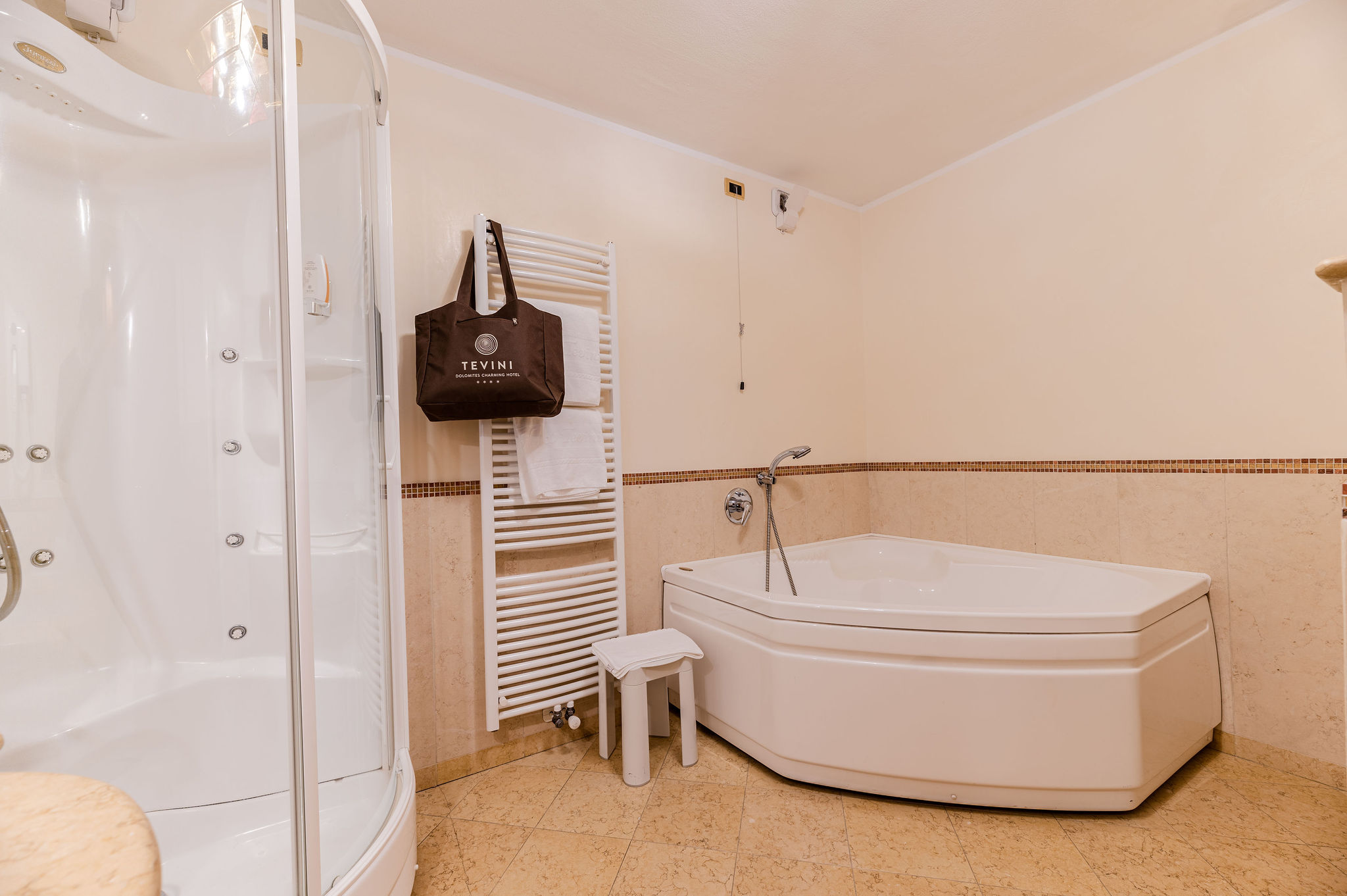 Mit Stil und Eleganz eingerichtet, exklusiv, gemütlich, speziell: Dieses Zimmer kann ein romantisches und wirklich unvergessliches Aufenthalt-Erlebnis schenken. Es verfügt über einen Balkon, Holz- und Steinboden, Doppelbett, Kamin, Badewanne und eigene Sauna.Mit allem Komfort ausgestattet: WLAN, Tresor, Telefon, LCD-Fernseher mit Sky-Kanälen, Minibar, Wasserkocher, kontrollierte mechanische Belüftung, Wellness-Bag mit Bademantel und Hausschuhen.