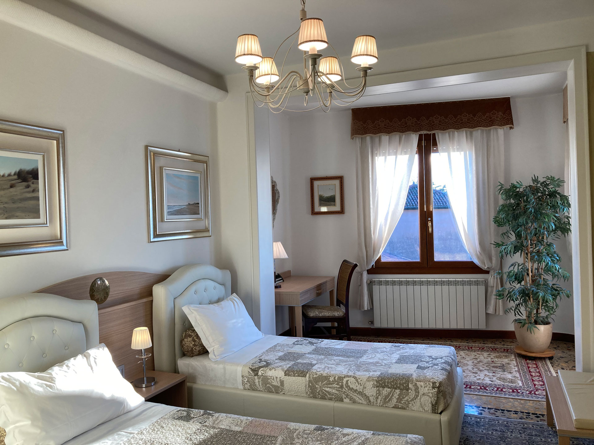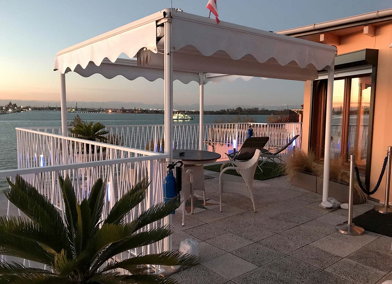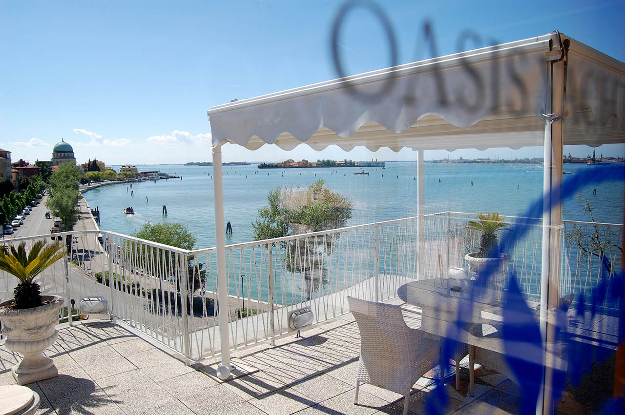 Matrimoniale con due balconi e splendida vista sulla laguna (180 gradi), bagno con doccia, in stile neo-liberty. Locazione ai sensi dell’art. 27 bis L.R. 11/2013