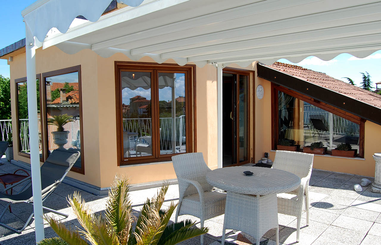 Matrimoniale con splendida vista sulla laguna (180 gradi), in stile country, secondo piano, bagno con box doccia. Locazione ai sensi dell’art. 27 bis L.R. 11/2013