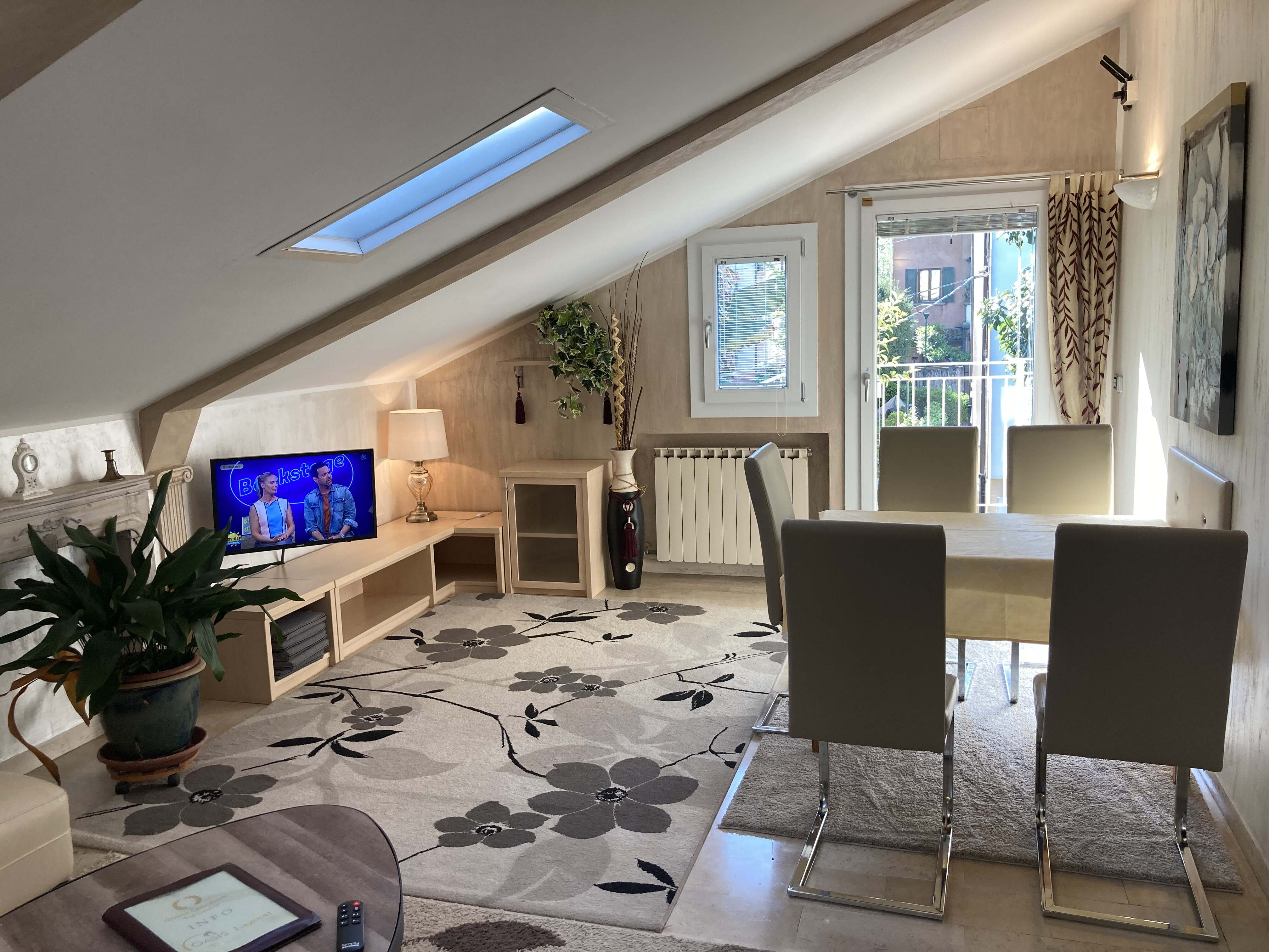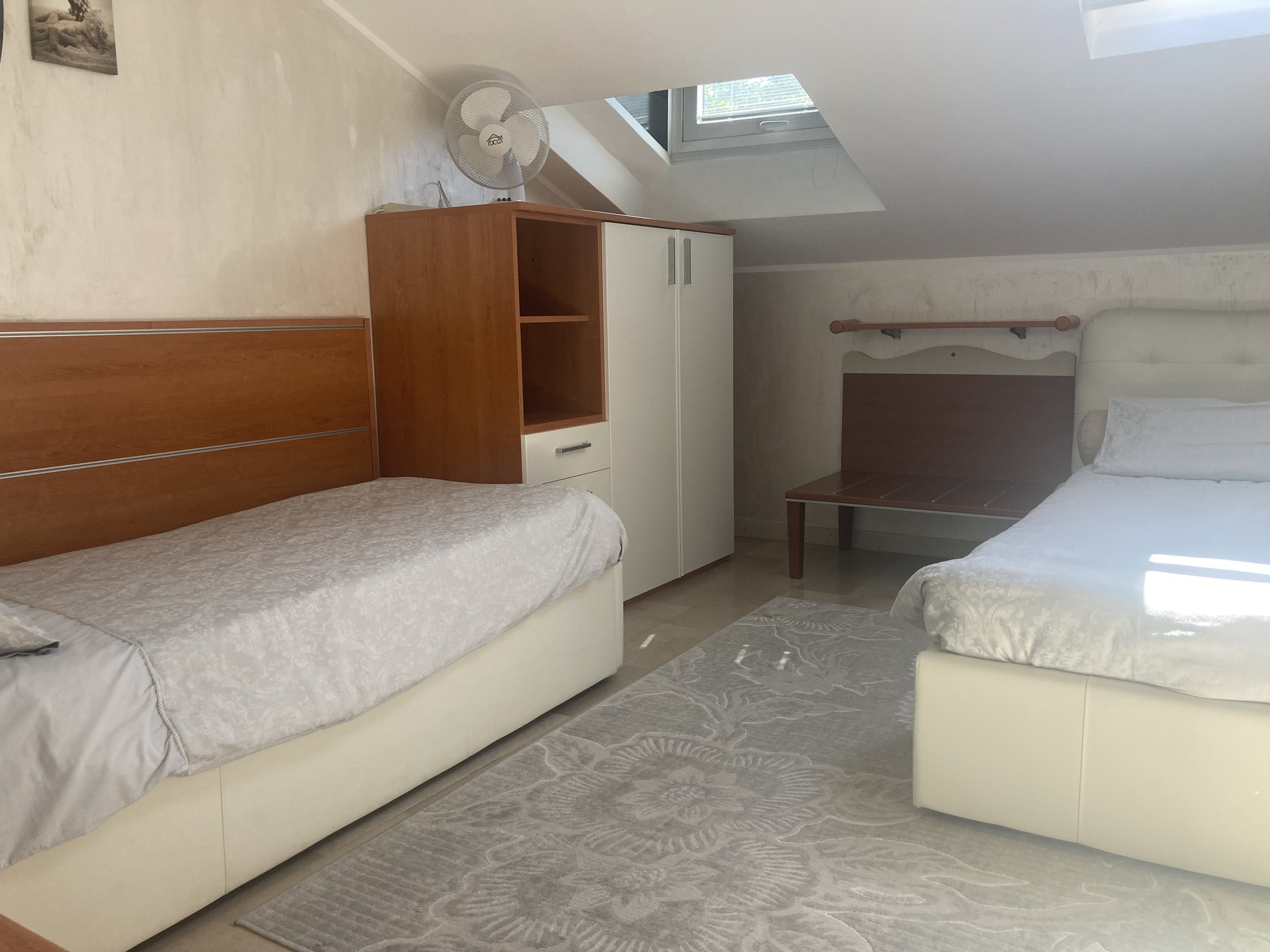 In stile arte moderna, primo piano mansardato, vista giardino, composto da ingresso, camera da letto matrimoniale, 1 camera da letto singola, 1 camera da letto doppia, soggiorno con piccolo balcone, 1 bagno con box doccia, cucinotto completamente arredato. Ascensore. Locazione ai sensi dell’art. 27 bis L.R. 11/2013