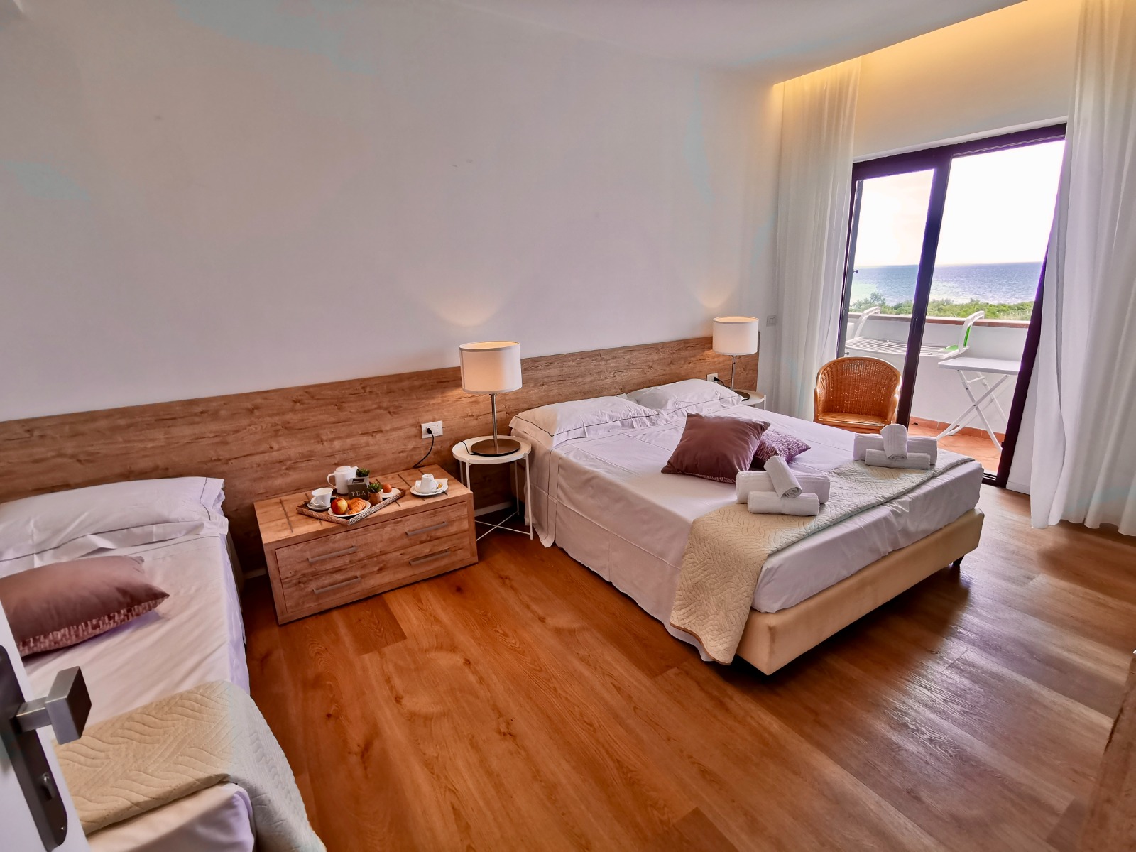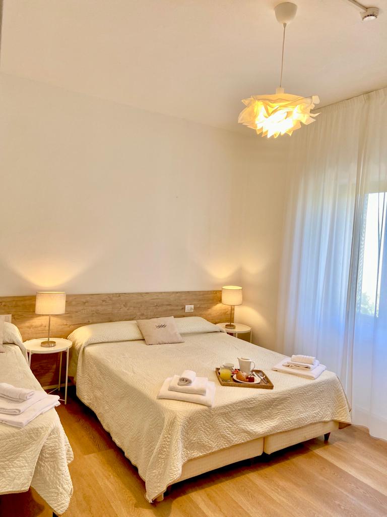 Unsere Dreibettzimmer mit Panoramablick auf das Meer befinden sich im 2. oder 3. Stock des Gebäudes und bieten einen spektakulären Blick auf den Golf von San Teodoro und den berühmten Strand La Cinta. Der private Balkon, der mit einem Tisch und Stühlen ausgestattet ist, ist der perfekte Ort, um die morgendliche Ruhe zu genießen und sich vom Anblick der über dem Meer aufgehenden Sonne verzaubern zu lassen.