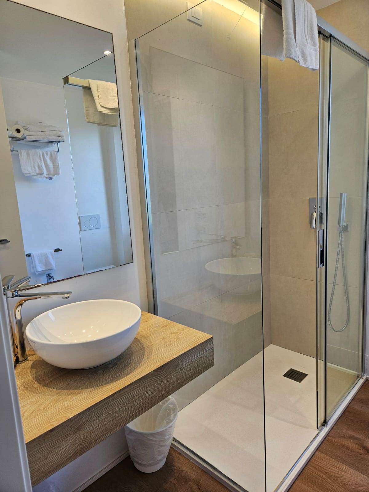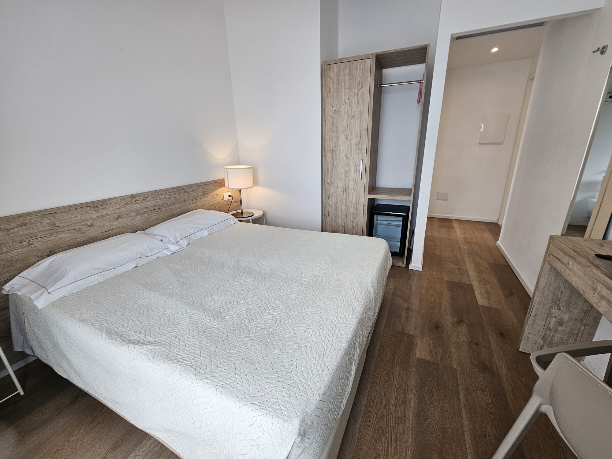 Unser Economy-Doppelzimmer befindet sich im Erdgeschoss und wurde kürzlich renoviert. Es bietet einen funktionalen und gemütlichen Raum, ideal für praktische und komfortable Aufenthalte. Es verfügt über ein eigenes Bad und liegt gegenüber dem Hoteleingang.