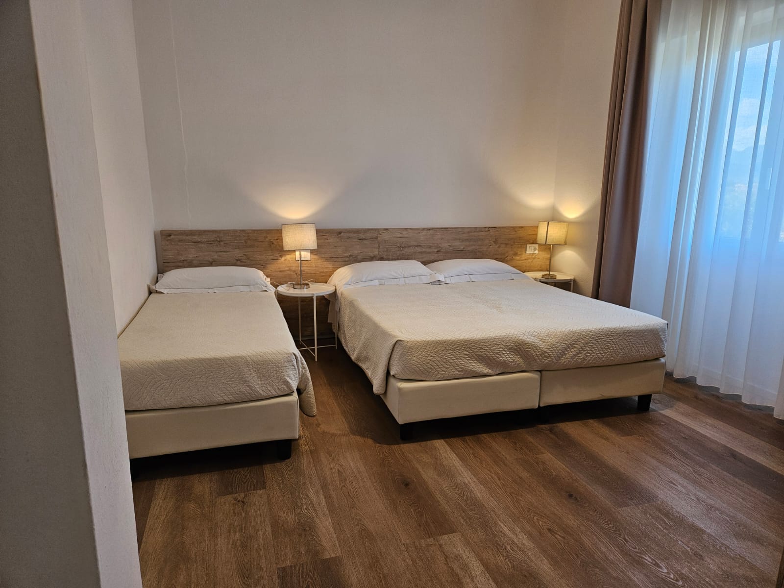 Unsere kürzlich renovierten Standard-Dreibettzimmer bieten gemütliche und funktionale Räume, ideal für einen Urlaub im Zeichen des Komforts. Sie verfügen über ein eigenes Bad mit Fenster und bieten bequem Platz für bis zu drei Personen.