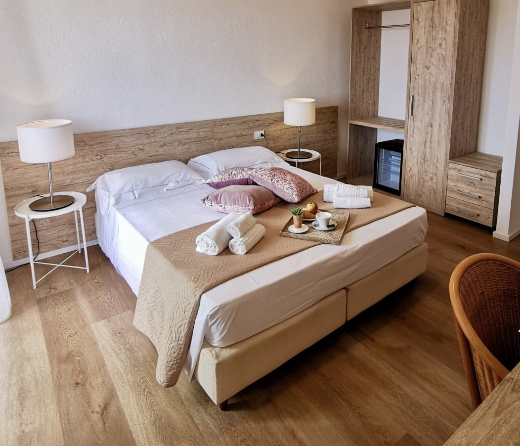 Unsere kürzlich renovierten Standard-Doppelzimmer bieten gemütliche und funktionale Räume, ideal für einen Urlaub im Zeichen des Komforts. Sie verfügen über ein eigenes Bad und bieten bequem Platz für bis zu zwei Personen.