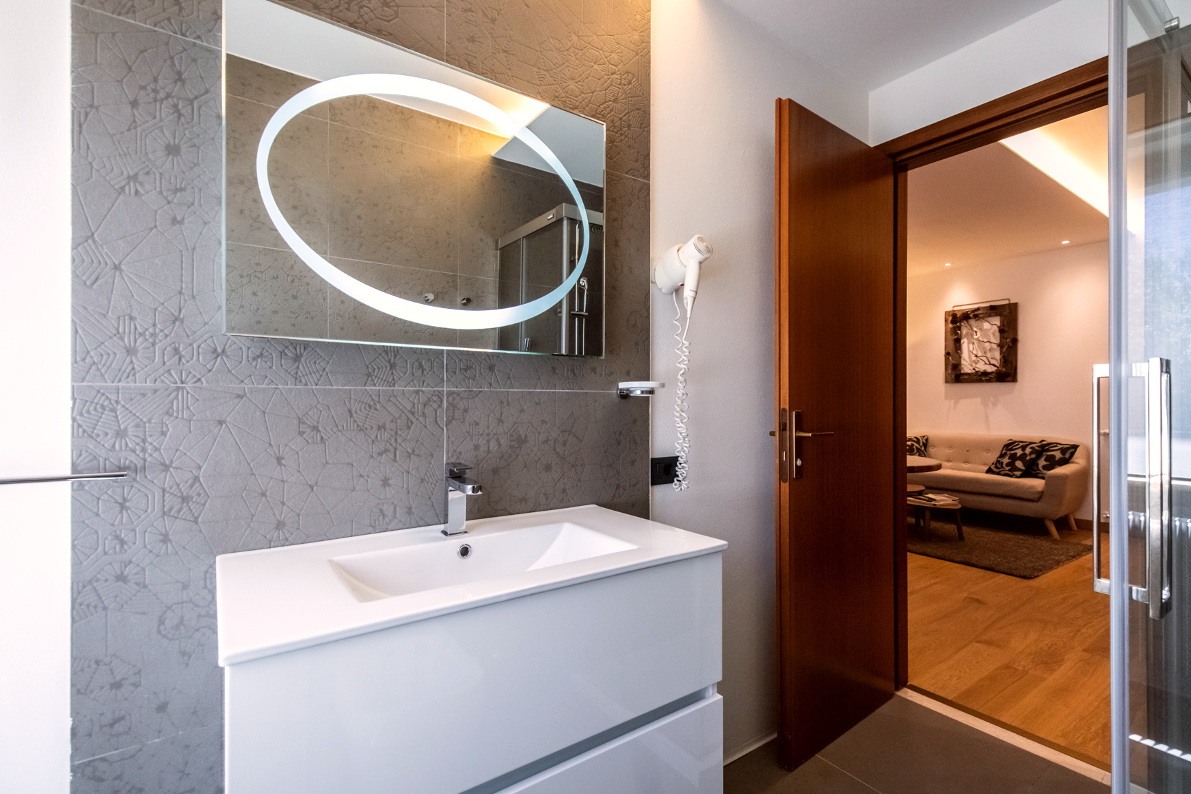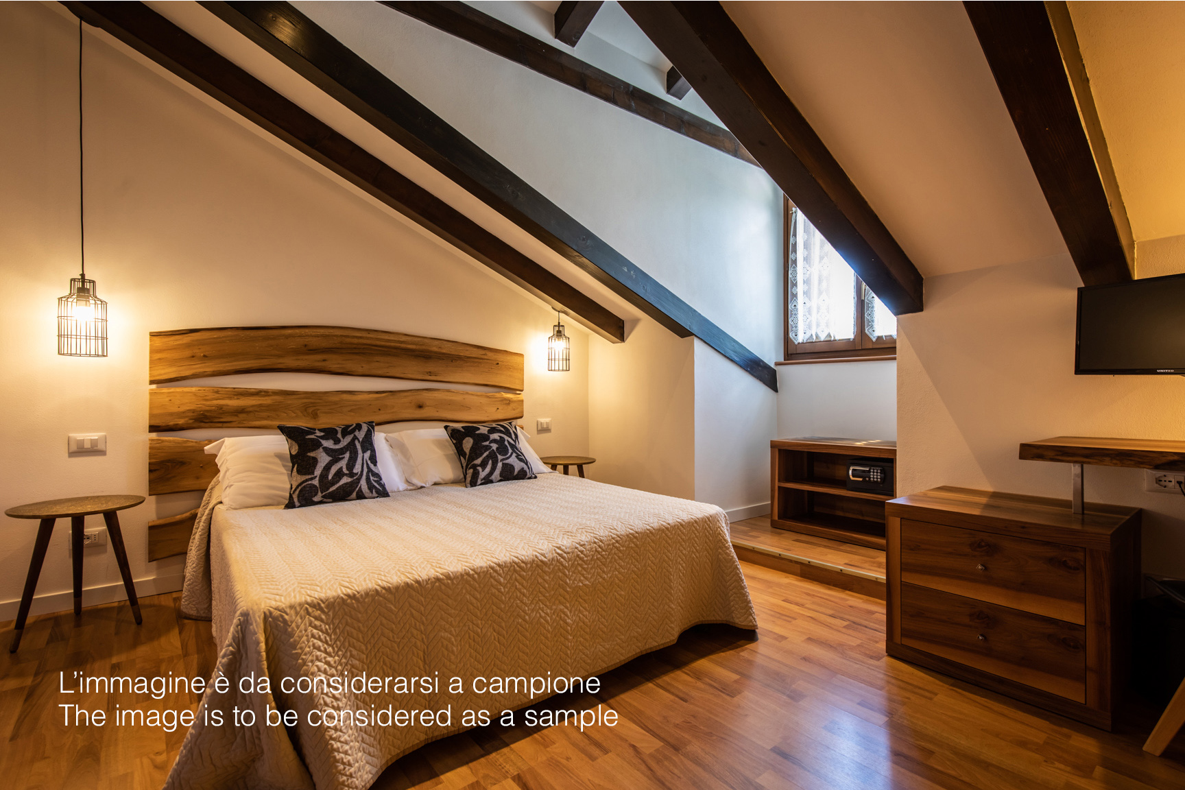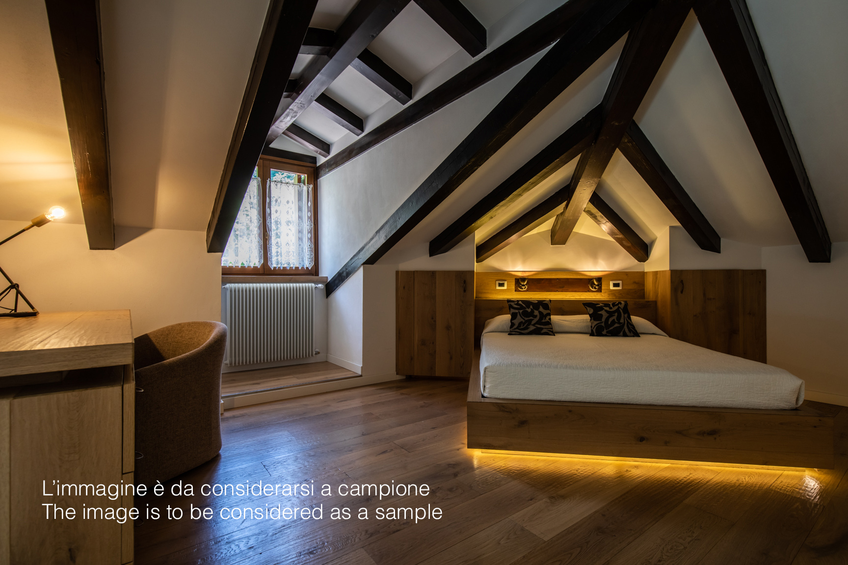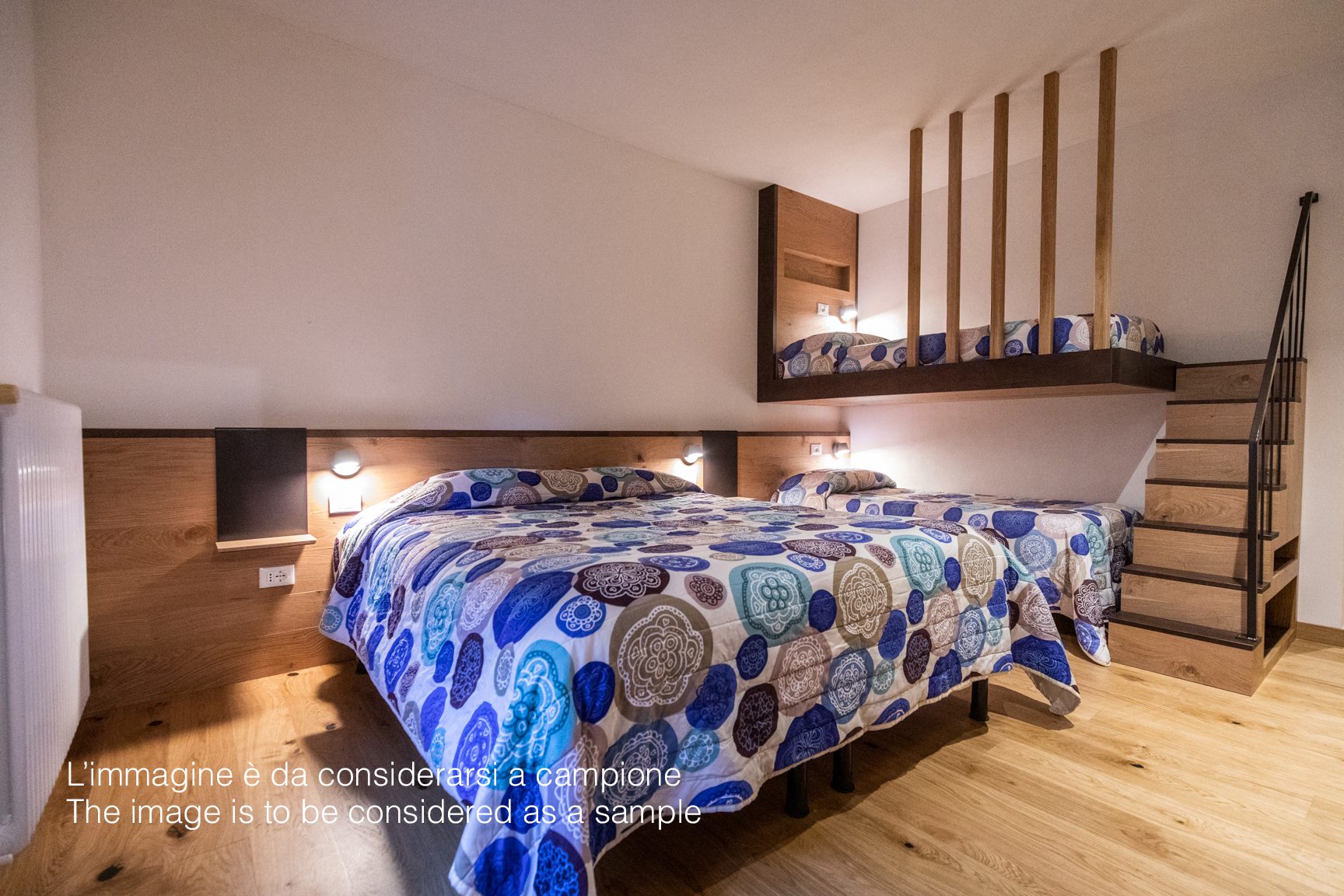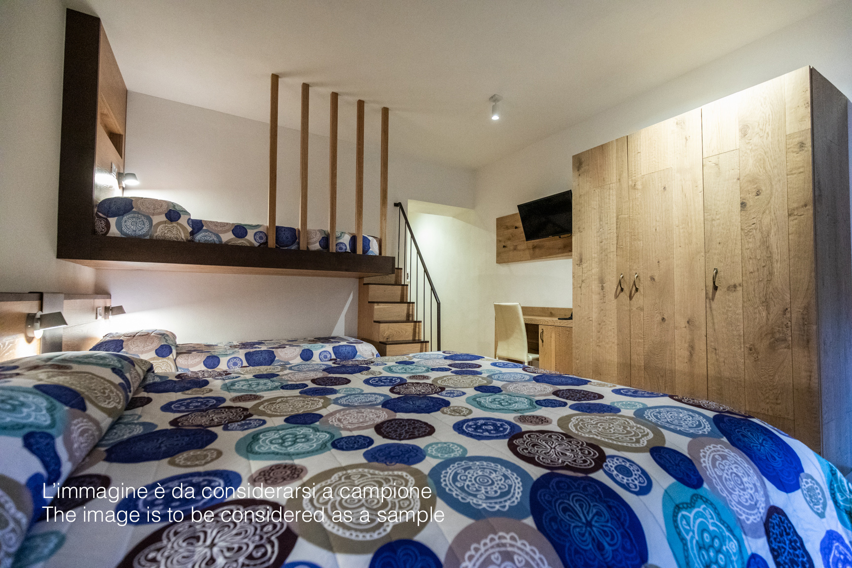 Komfortable und geräumige Familienlösung mit privatem Zugang. Sie können zwischen Familienzimmern mit offenem Schnitt oder zwei miteinander verbundenen Doppelzimmern mit gemeinsamem Bad wählen. Eine Lösung mit maximalem Komfort für einen gemeinsamen Urlaub.