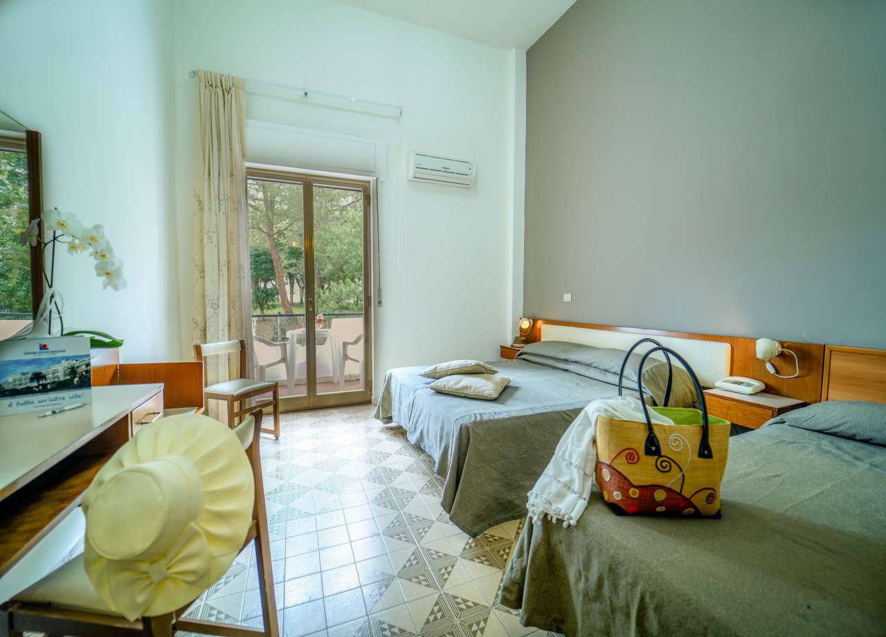 Die Triple Resort Zimmer des Santa Caterina Village sind ideal für einen Familienurlaub in Scalea oder für kleine Gruppen von Freunden. Sie befinden sich alle in der Anlage und sind nur 50 Meter vom Strand und dem Meer entfernt und verfügen über einen Balkon, von dem aus Sie einen entspannenden Blick auf die Stadt Scalea und den Pollino-Nationalpark genießen können.