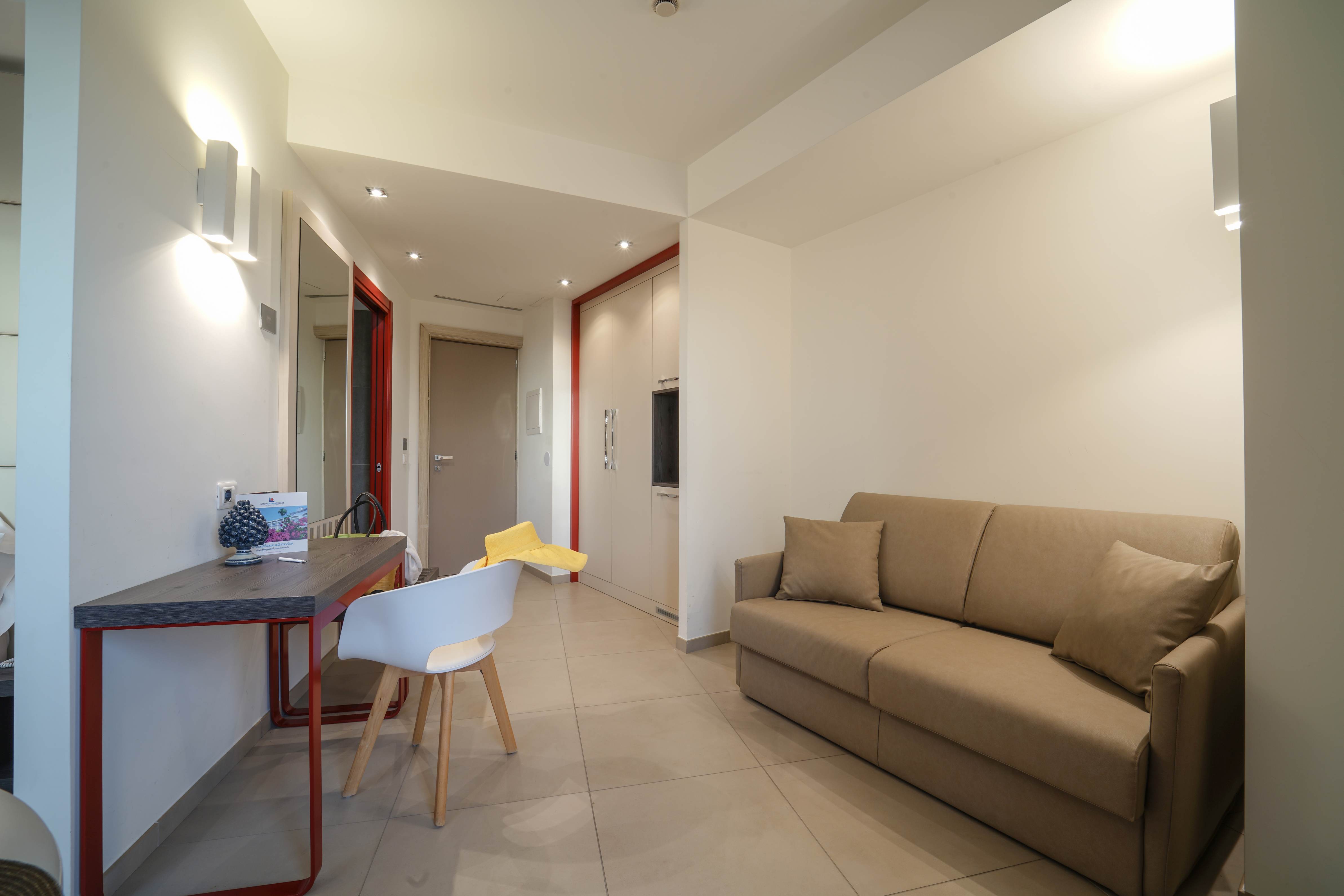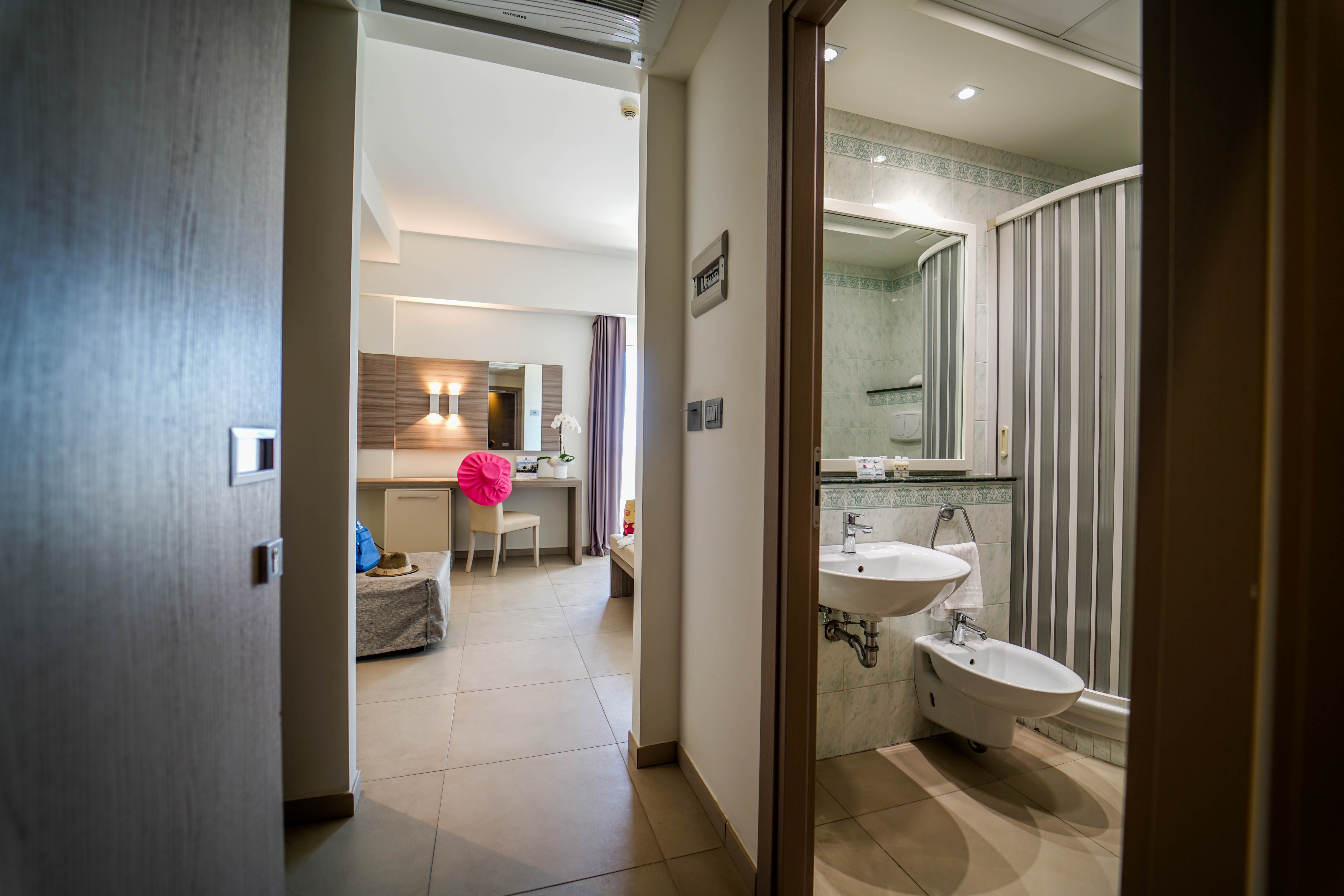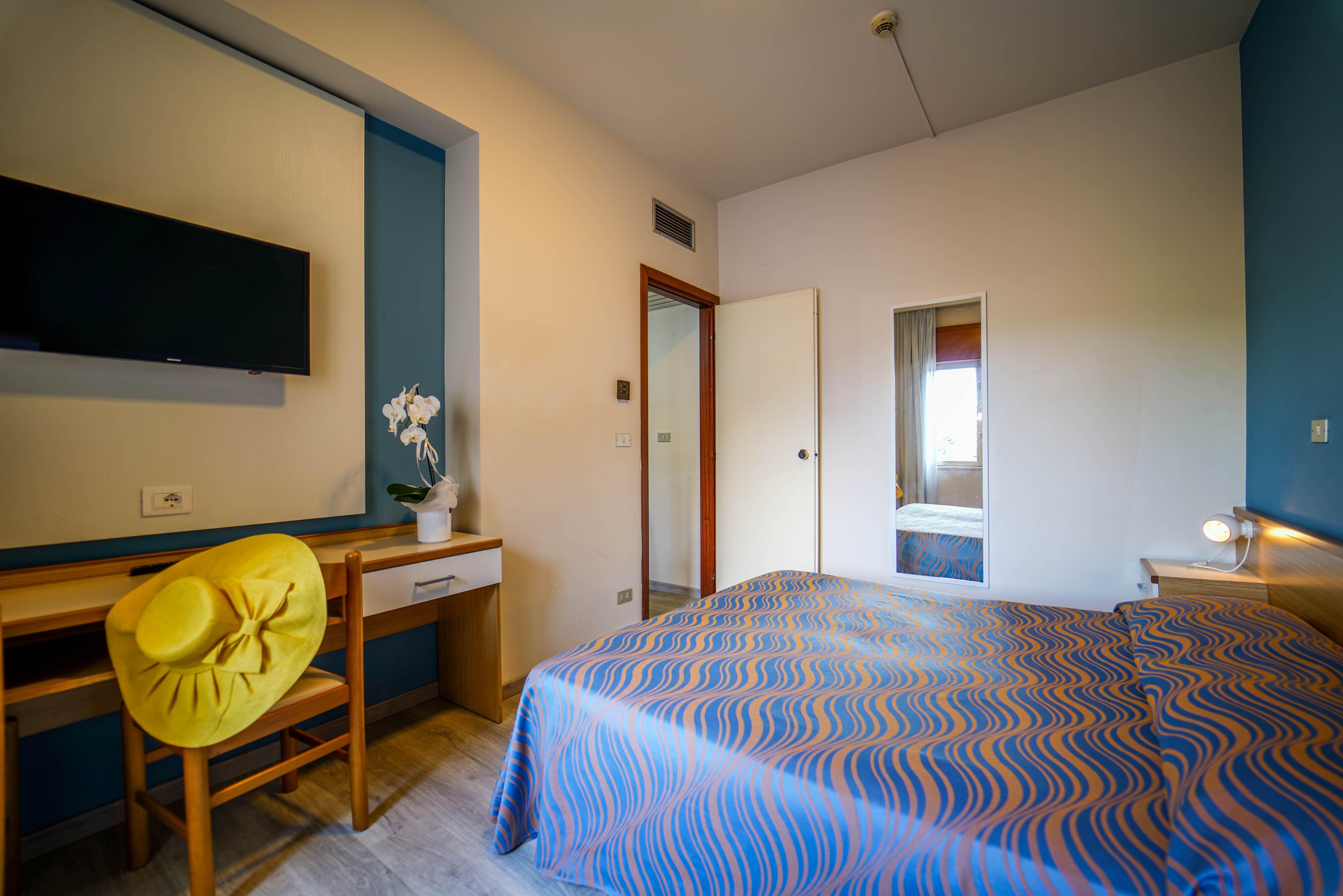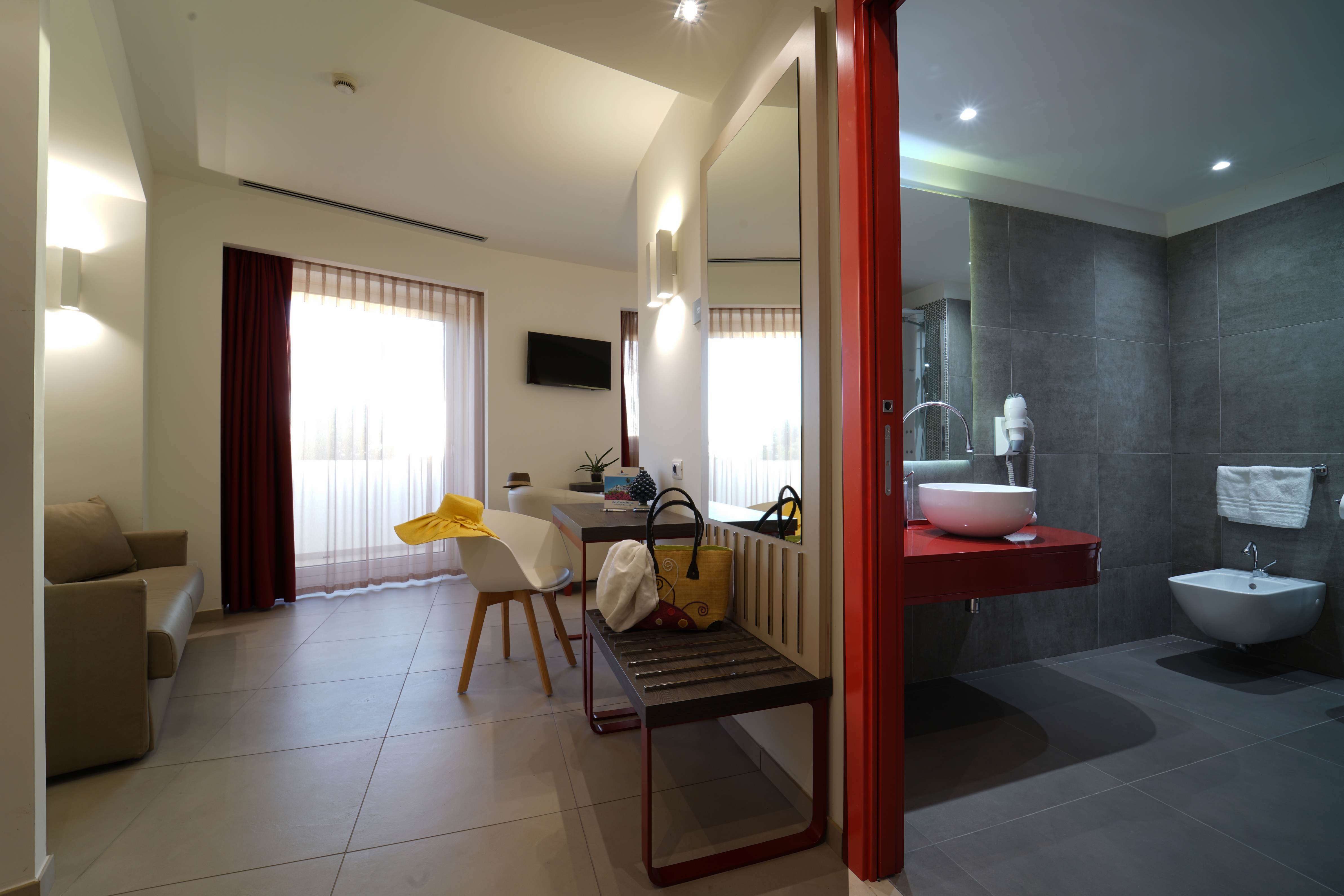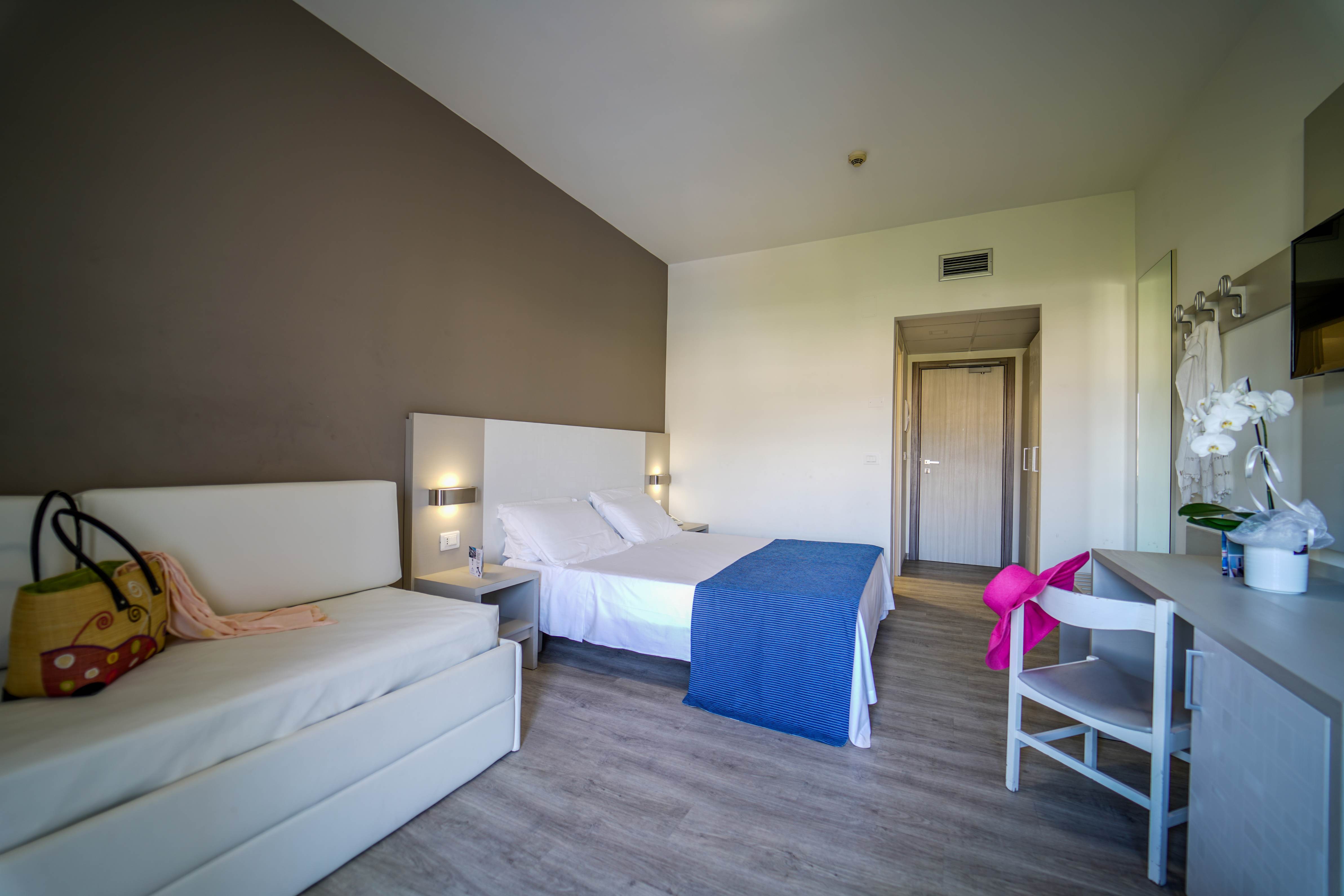 Diese Zimmer befinden sich im Village Gebäude und sind dank einer internen Shopping Galerie mit dem zentralen Hotel Körper und allen Dienstleistungen verbunden. Sie sind sehr geräumig und daher besonders für Familien oder Gruppen von Freunden geeignet. Kürzlich renoviert und schallisoliert, zeichnen sie sich durch einen modernen Einrichtungsstil aus und sind ausgestattet mit: zeitgesteuerter Klimaanlage, Wi-Fi-Anschluss, Safe, Minibar und 32" Full-HD-Farbfernseher.