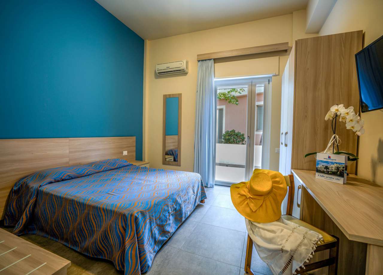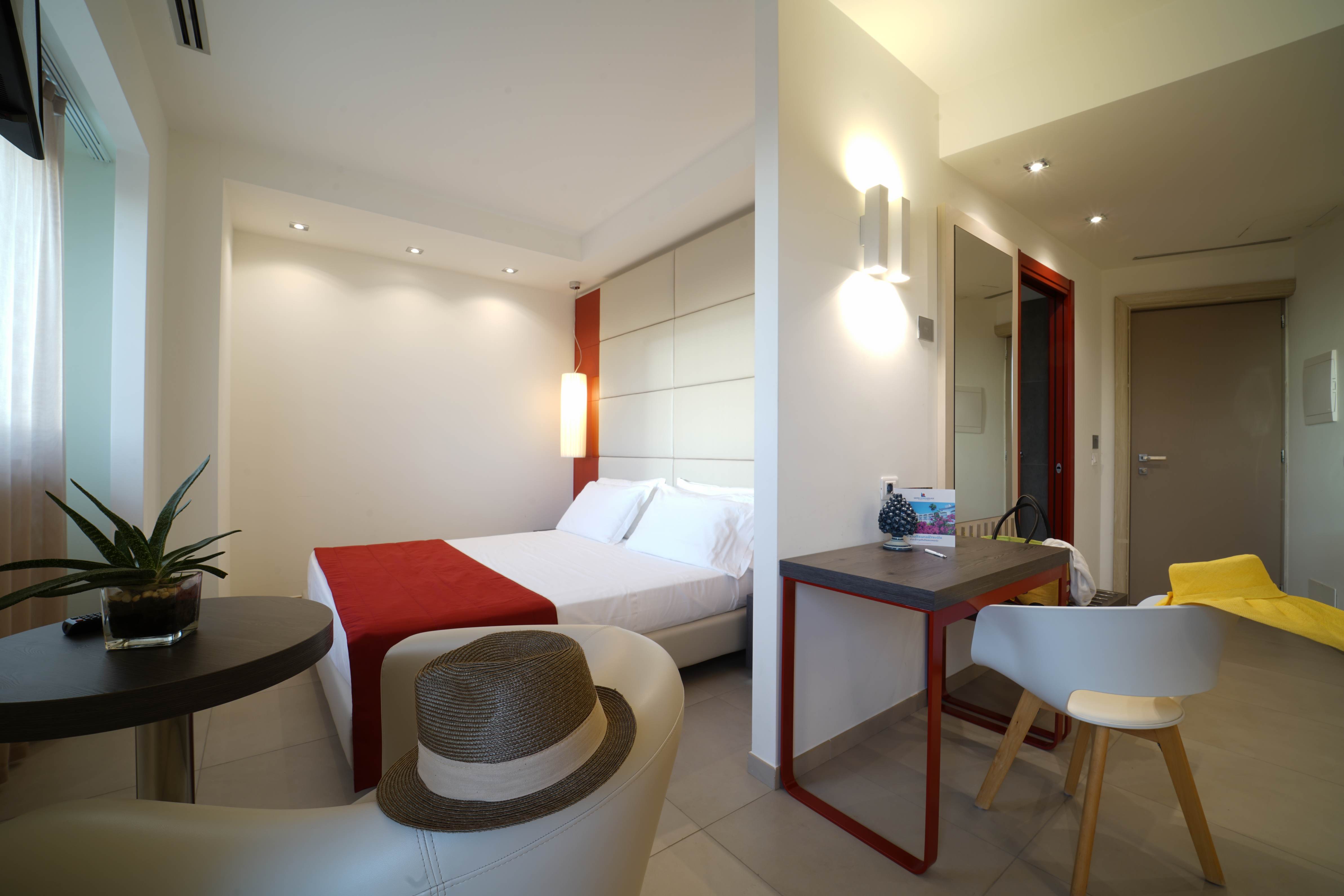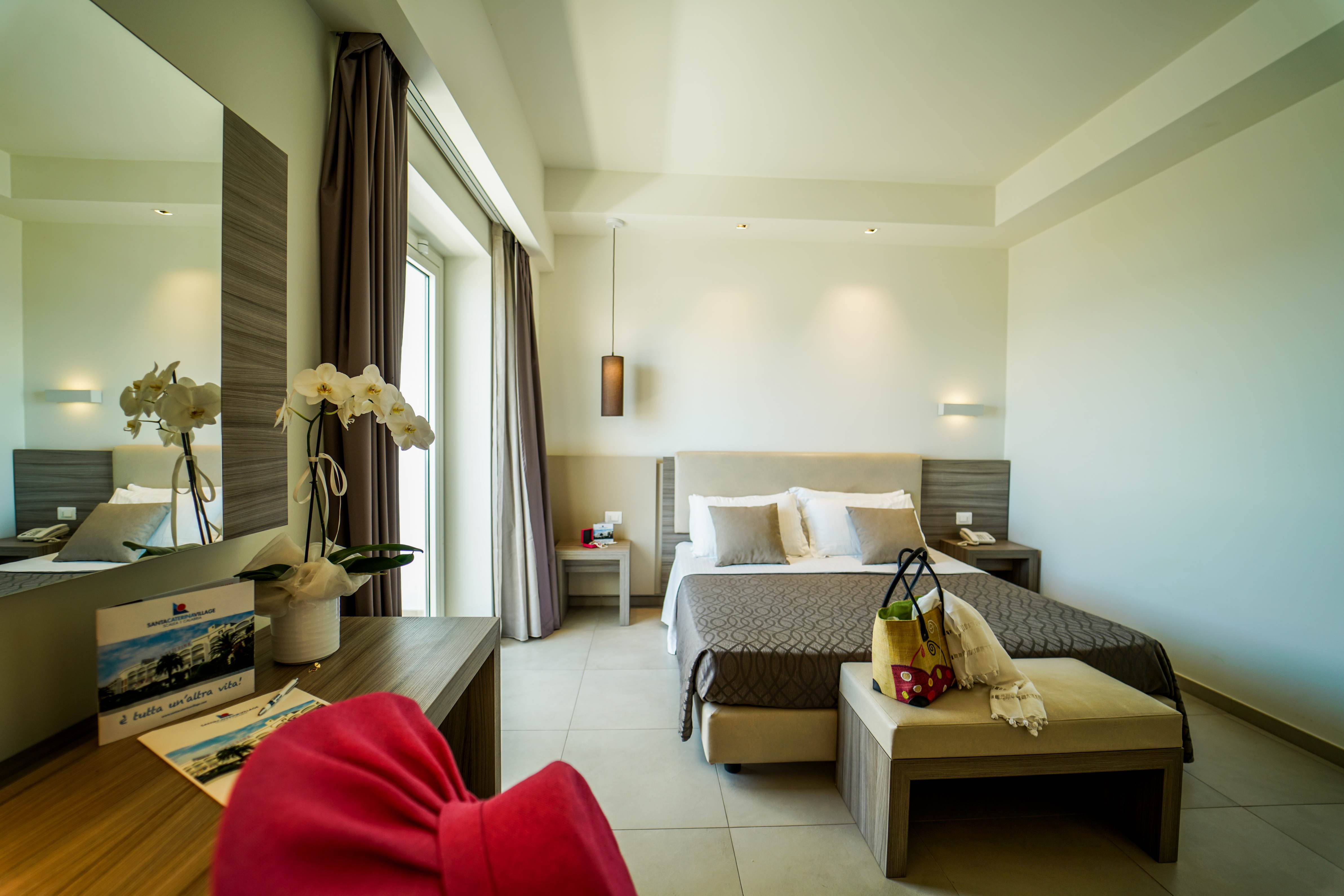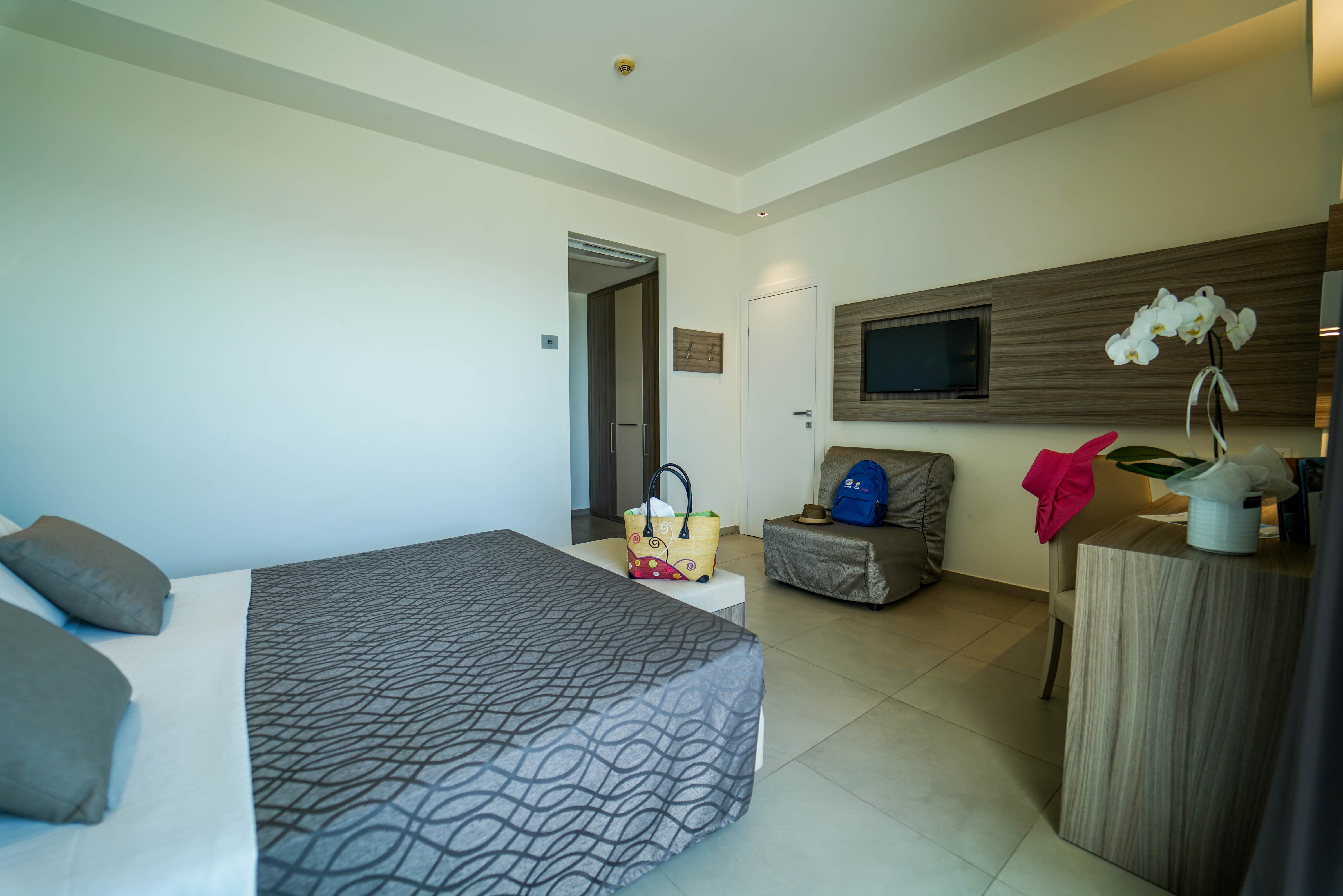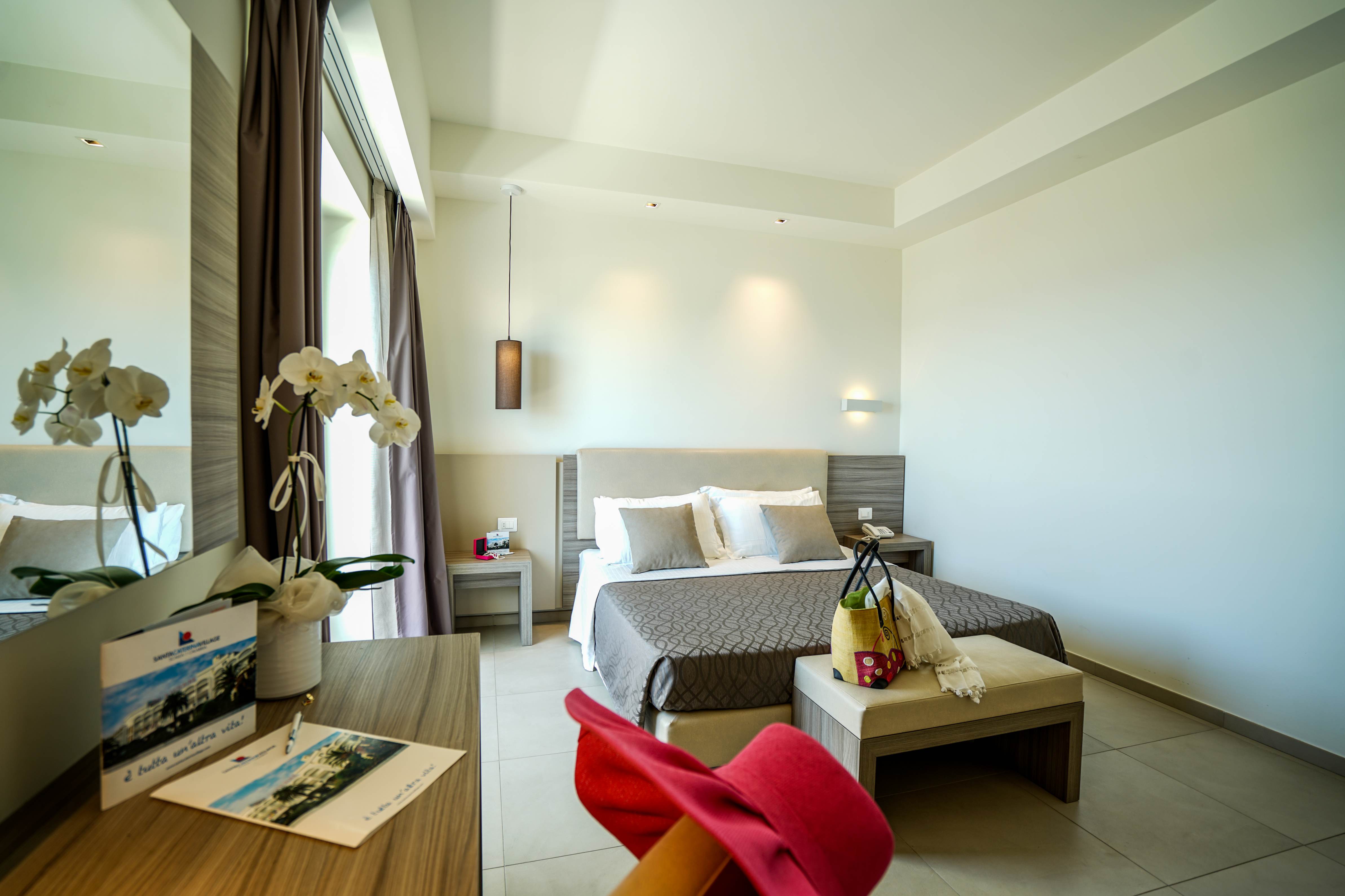 Die kürzlich renovierten Resort-Zimmer sind perfekt schallisoliert und zeichnen sich durch ihren modernen Stil, einen bequemen Balkon, um den Blick auf unsere berühmten Sonnenuntergänge über dem Meer zu genießen, und ein hohes Maß an Komfort und Ausstattung aus: kostenloser Wi-Fi-Anschluss, Safe, Minibar und 32" Full-HD-Led-TV, Domotik und intelligentes Klima.
