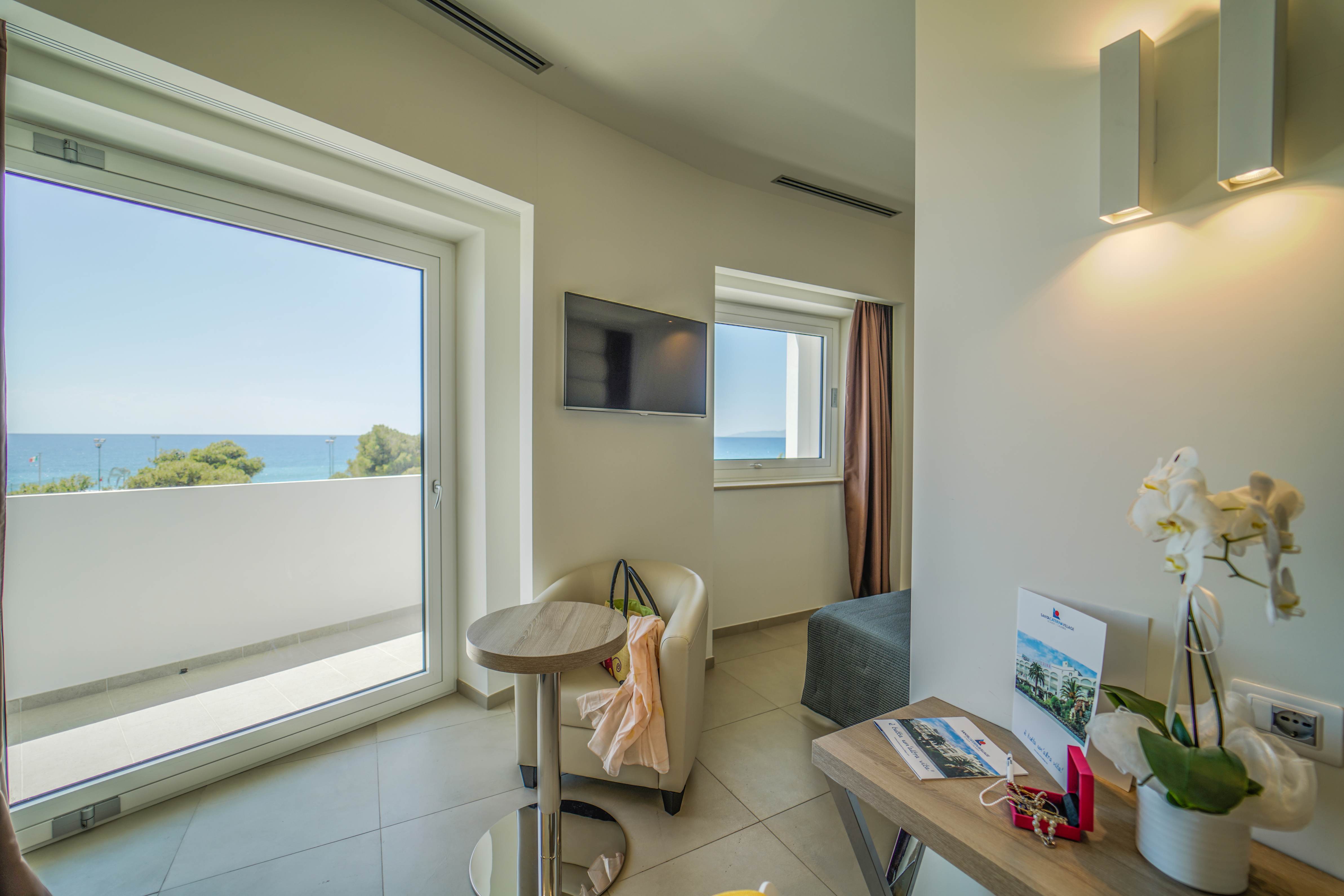 Die Junior Suiten sind sehr modern gestaltet und mit überraschenden kleinen Juwelen ausgestattet. Sie machen Ihren Aufenthalt zu einem einzigartigen und unvergesslichen Erlebnis, nur 50 Meter vom Meer entfernt. Alle Zimmer befinden sich im Resort Körper und verfügen über das Meerblick, wurden vor kurzem renoviert und sind in einem einzigartigen und faszinierenden Stil eingerichtet. Die Zimmer sind sehr groß mit einem Relaxbereich und einer großen Terrasse mit atemberaubendem Meerblick.