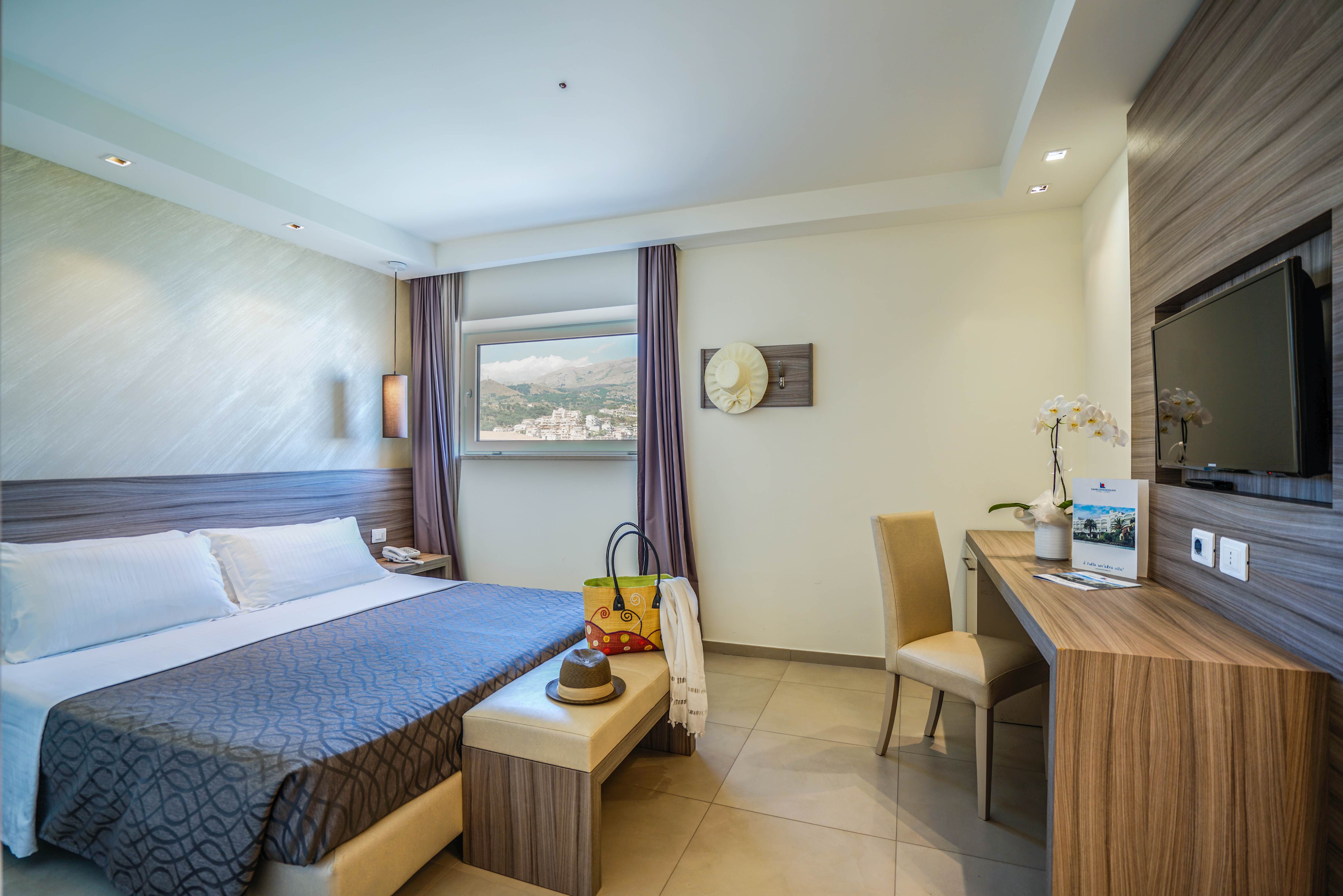 Die kürzlich renovierten Resort-Zimmer sind perfekt schallisoliert und zeichnen sich durch ihren modernen Stil, einen bequemen Balkon, von dem aus man den Blick auf unsere berühmten Sonnenuntergänge genießen kann, und ein hohes Maß an Komfort und Ausstattung aus: kostenloser Wi-Fi-Anschluss, Safe, Minibar und 32" Full-HD-Led-TV, Domotik und intelligentes Klima.