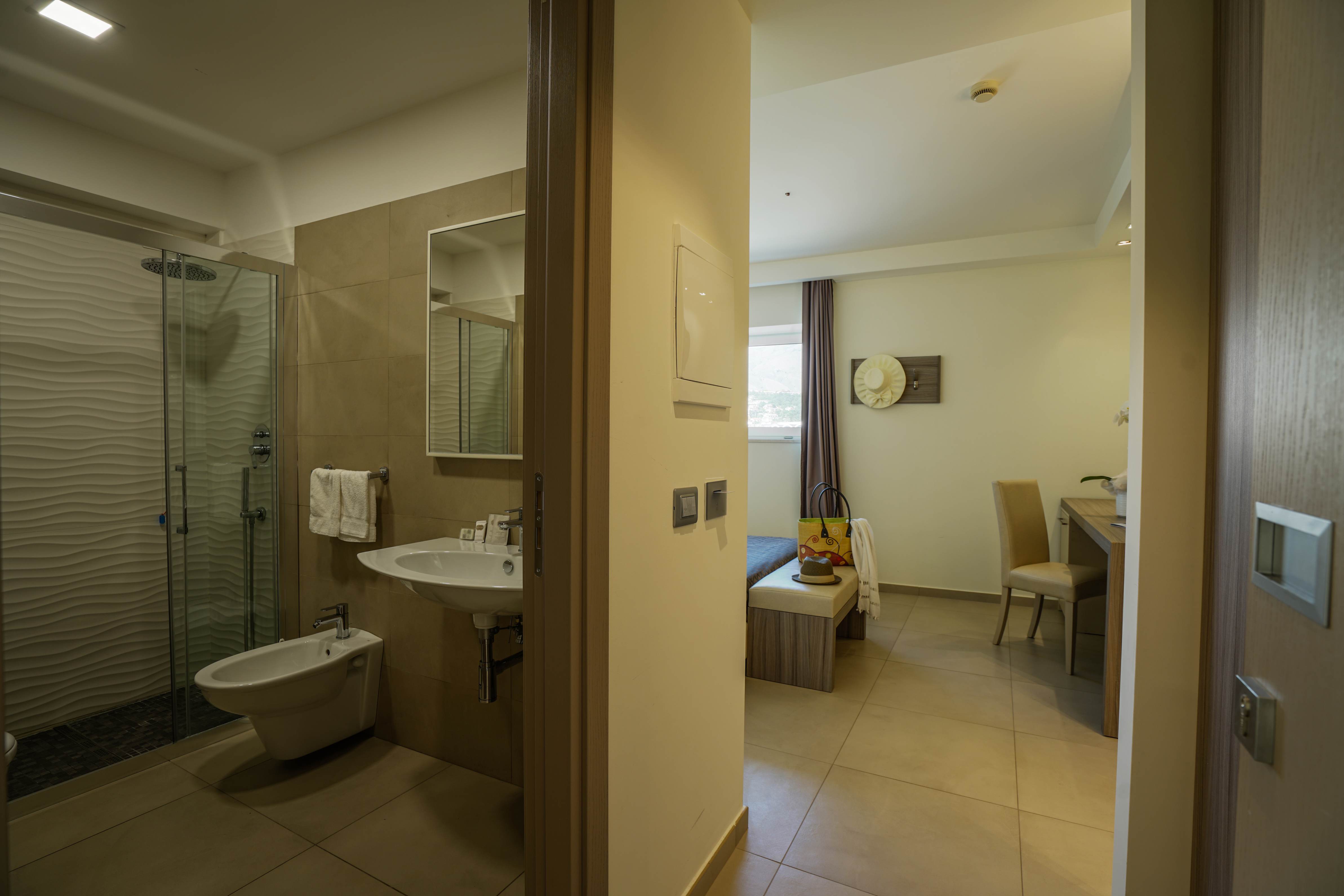 Diese Zimmer befinden sich im Village Gebäude und sind dank einer internen Shopping Galerie mit dem zentralen Hotel Körper und allen Dienstleistungen verbunden. Sie sind sehr geräumig und daher besonders für Familien oder Gruppen von Freunden geeignet. "Das kommunikative Zimmer" bietet Unterkunft in zwei Zimmern, beide von demselben internen und privaten Badezimmer profitieren.