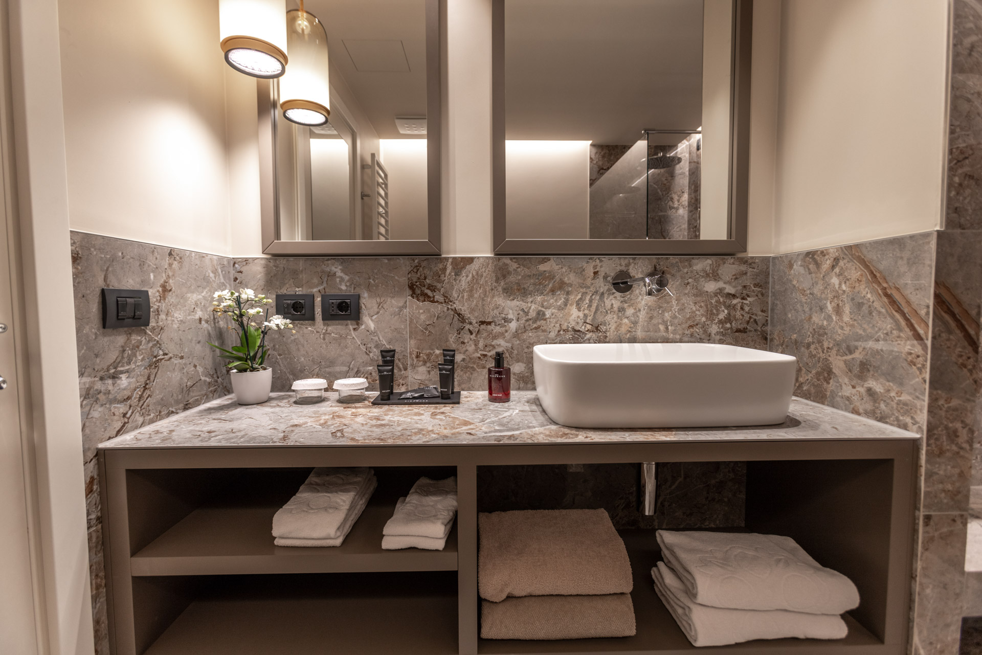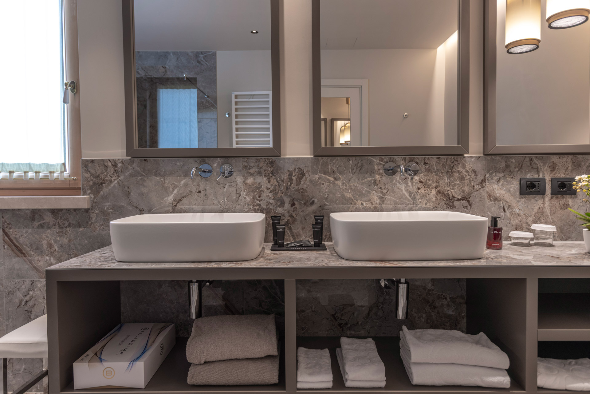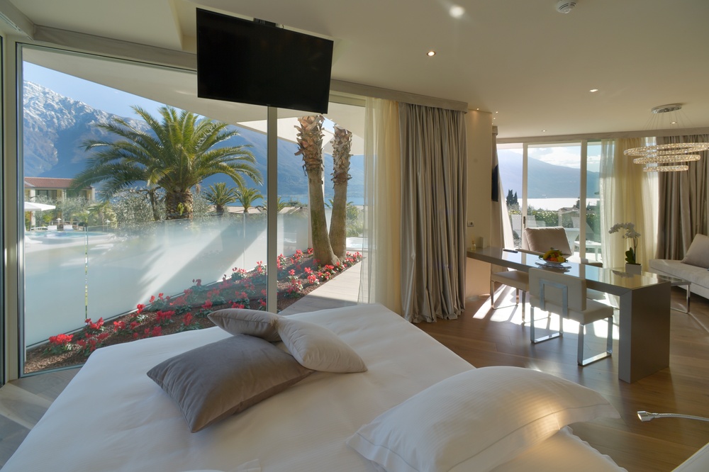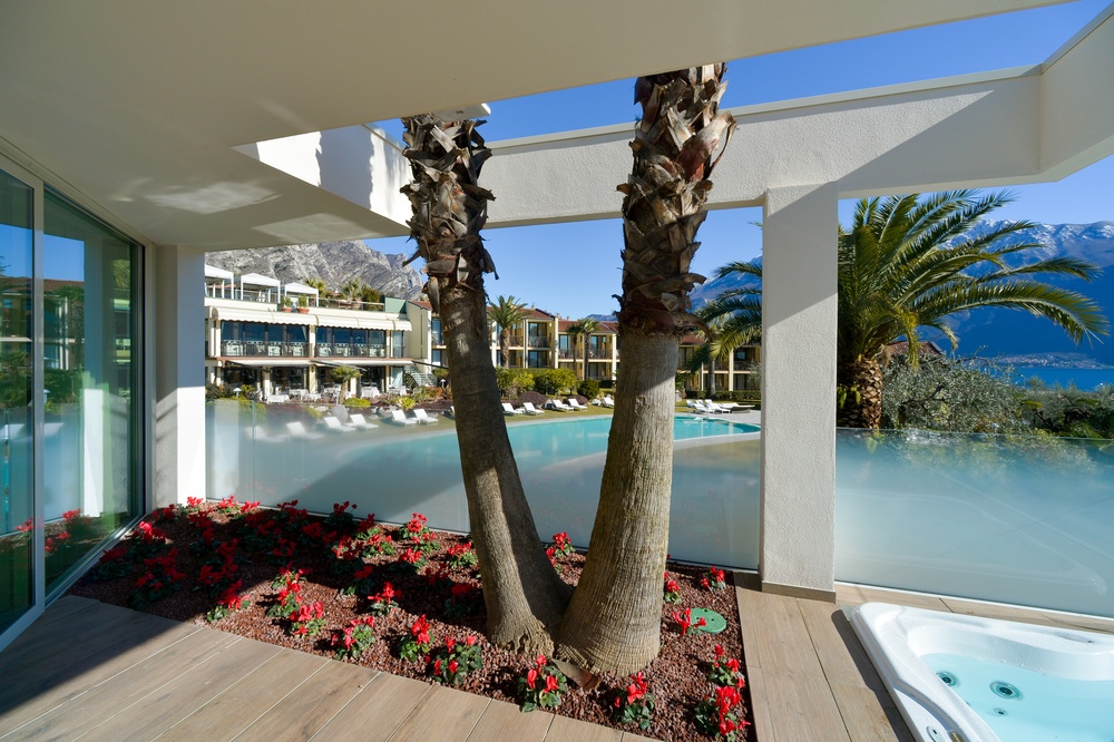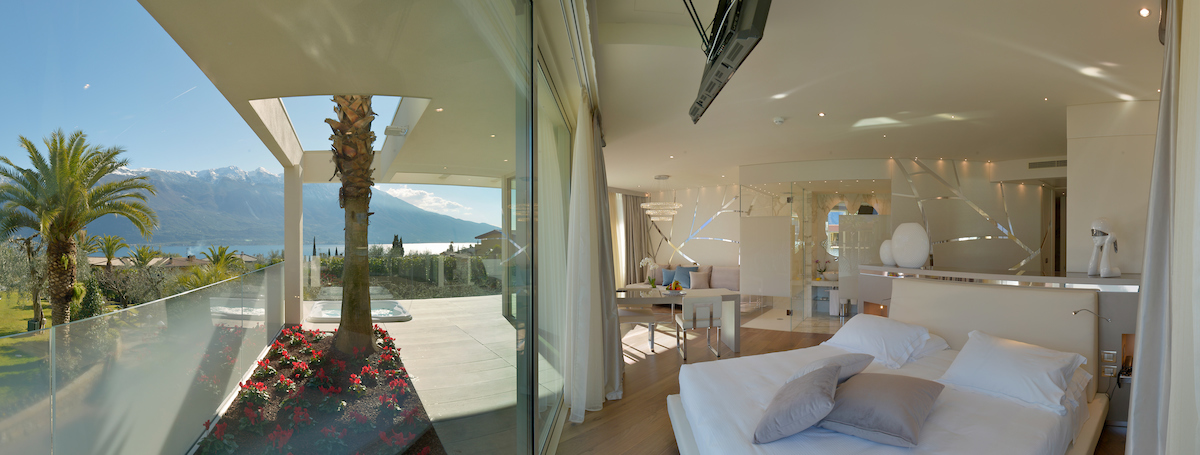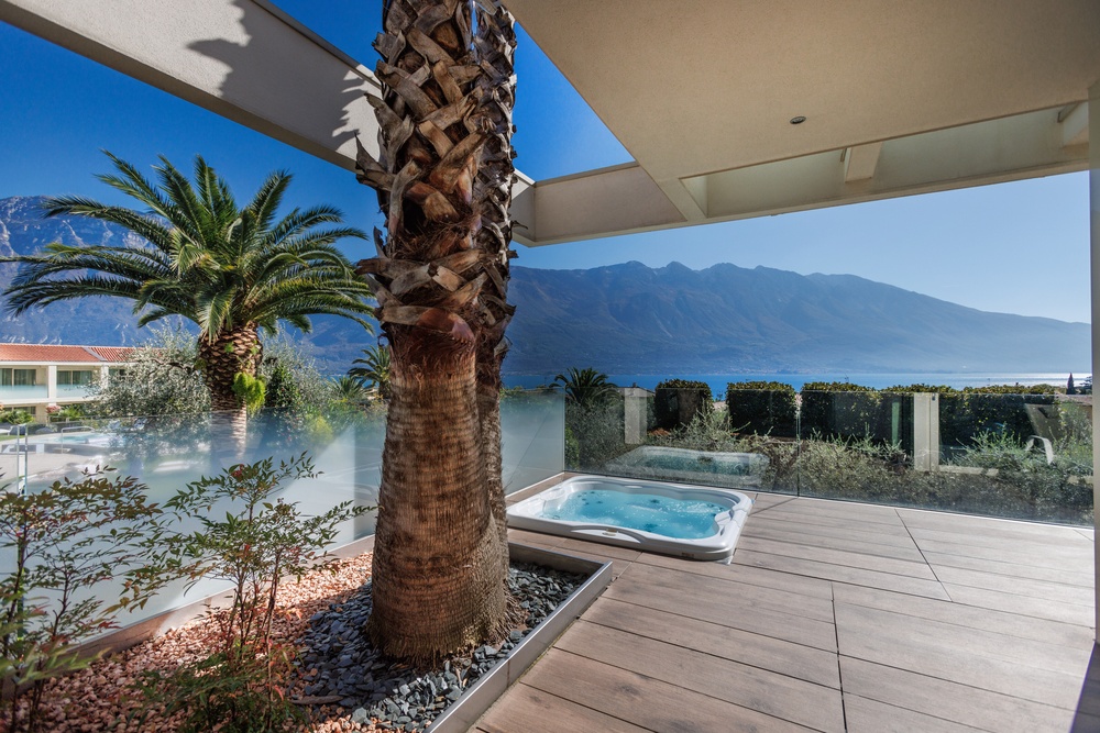 Space, luxury, privacy, an experience to be lived in the Deluxe Suites, designed to offer the ultimate in comfort and style. Each suite features two independent bedrooms with double bathrooms, characterized by light colors and modern furnishings, embellished by large windows offering breathtaking views of the lake. An impeccable example of Italian design that will leave our guests speechless. Each suite boasts an exclusive lake view, a private patio and a refined mini jacuzzi pool. The double bathrooms are equipped with a shower, soft bathrobes and two types of slippers for an unparalleled luxury experience. You will also find a direct dial phone, minibar, tea and coffee maker, Dyson hairdryer, make-up mirror and a complete bathroom line.