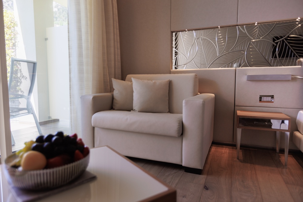 Let yourself be transported into a daydream in an oasis of style and modernity, where refined design intertwines with the enchanting beauty of our garden. Our Junior Suites with Garden and/or Pool View, bright and airy, characterized by light and relaxing tones, will welcome you with discreet elegance and an irresistibly charming atmosphere. Large windows open onto the lush garden, offering a panoramic view that will envelop you in a feeling of peace and well-being. Let yourself be intoxicated by the scents of nature and the song of birds, while you surrender to the deepest relaxation. Every detail is designed for your maximum comfort. The bathroom, equipped with a spacious shower, will give you moments of pure relaxation, soft bathrobes and slippers will make you feel at home from the very first moment. Services include a direct dial telephone, minibar, tea and coffee maker, hairdryer, make-up mirror, and a line of high-quality bathroom products. The rooms also offer, on request, the possibility of adding a third bed to comfortably accommodate an additional guest. Come discover a haven of luxury and serenity, where every detail is carefully designed to offer you an unforgettable stay. To guarantee an impeccable experience and respect the well-being of all guests, all our rooms are non-smoking.