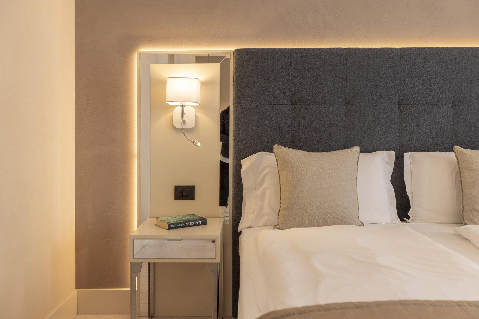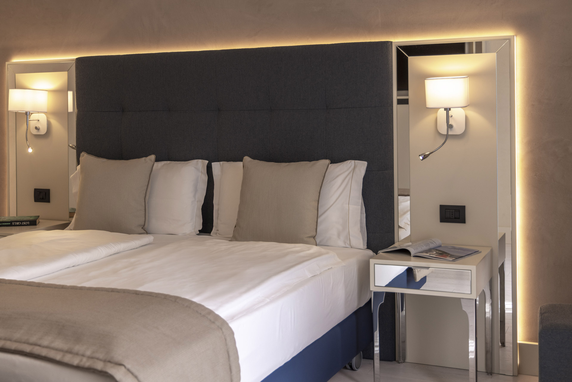 Our living rooms are a haven of tranquility, designed to offer you a unique and unforgettable experience. With an elegant sofa that can be converted into a single bed, these suites are distinguished by their light colors and refined design, creating a relaxing and welcoming atmosphere. Immersed in the greenery of our garden, these spaces offer exclusive and private hospitality, where you can experience a truly Italian dream. Each room boasts a private terrace overlooking the garden, parquet floors, and a large bathroom complete with a bathtub and shower. You will find soft bathrobes and slippers for maximum comfort, a direct-dial telephone, a minibar, and a tea and coffee maker. In addition, each room is equipped with a hairdryer, a makeup mirror, and a line of high-quality bathroom products. Come discover a corner of paradise where every detail is designed to offer you a stay of unparalleled class and serenity. To guarantee an impeccable experience and respect the well-being of all guests, all our rooms are non-smoking.