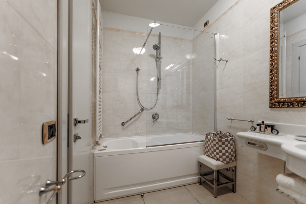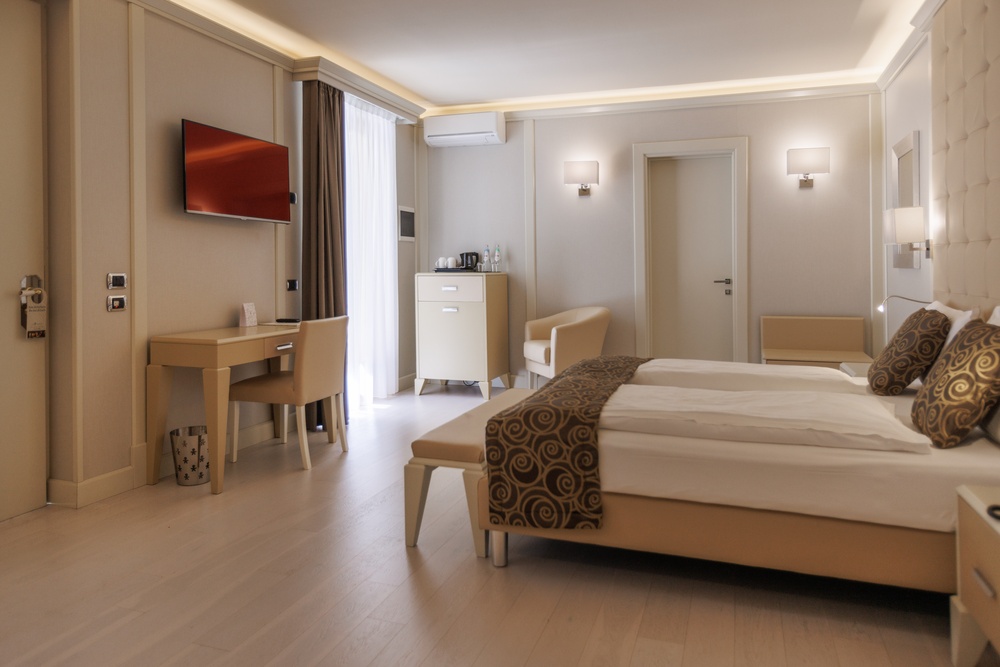 Indulge in the timeless charm of our Prestige Garden View rooms, where every detail contributes to creating an oasis of relaxation and sophistication. Surround yourself with bright, warm colors that infuse a sophisticated tranquility and prepare your body and mind for perfect rest. Each room is an exclusive retreat, featuring a spacious private terrace overlooking the garden and pool, perfect for enjoying an aperitif at sunset or breakfast in the morning. The possibility of adding a third bed, upon request, makes the rooms ideal for families as well. The bathroom, a true design jewel, boasts a spacious glass shower cubicle and refined details that enhance the feeling of well-being. Bathrobes and soft slippers await to offer you the utmost comfort, while a complete set of bathroom amenities completes the experience. Exclusive features such as a direct-dial telephone, minibar, and tea and coffee maker guarantee a stay focused on practicality and relaxation. Additionally, a makeup mirror and hairdryer are at your disposal to pamper yourself at any time. Choose our rooms and prepare to live an unforgettable experience, where luxury, comfort, and attention to detail blend to offer you a dream stay. To guarantee an impeccable experience and respect the well-being of all guests, all our rooms are non-smoking