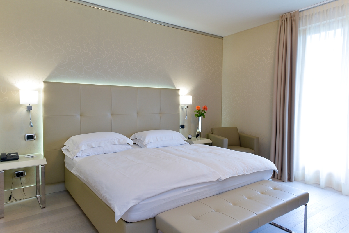 Our Junior Suites with a Partial Lake View are modern and bright rooms that will welcome you with elegance and comfort. Characterized by light colors, they offer large windows that provide a charming partial view of the lake, creating a relaxing and enchanting atmosphere. The bathroom is equipped with a spacious shower, while soft bathrobes and personal slippers will make you feel pampered from the very first moment. The rooms also offer the possibility, upon request, of adding a third bed to meet every need. Services include a direct dial telephone, minibar, tea and coffee maker, hairdryer, makeup mirror, and a line of high-quality bathroom products. Discover a haven of luxury and serenity, where every detail is carefully curated to offer you an unforgettable stay. To ensure an impeccable experience and respect the well-being of all guests, all our rooms are non-smoking.