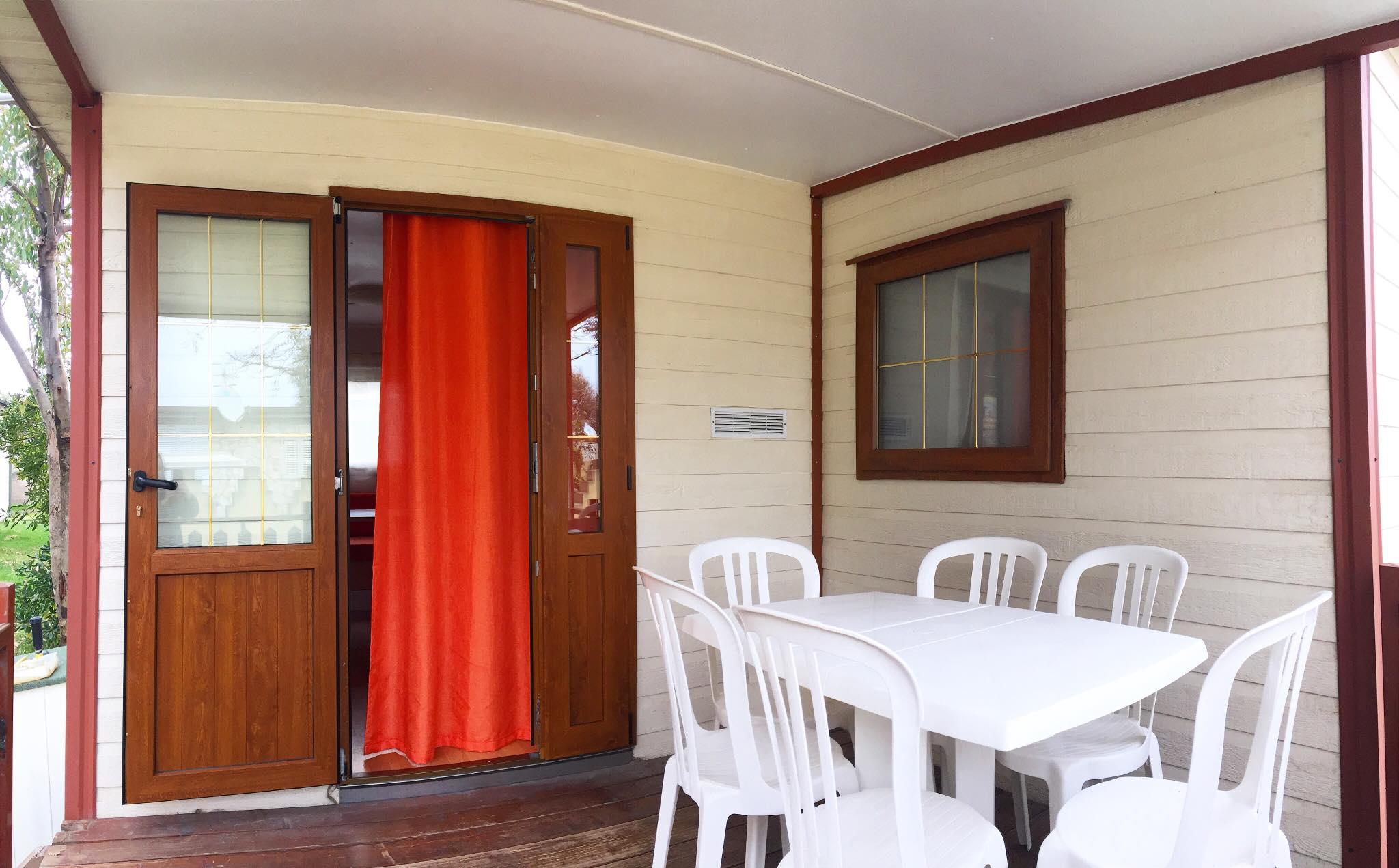 Alojamiento en casa móvil situado en una zona tranquila, acogedora y funcional, es una excelente solución para 2 personas. DESCRIPCIÓN: habitación con cama francesa, cocina con comedor, TV, aire acondicionado, calefacción. Mosquiteras combinadas con persianas. Cuarto de baño con ducha, WC, lavabo y bidé. Terraza con mesa y sillas.