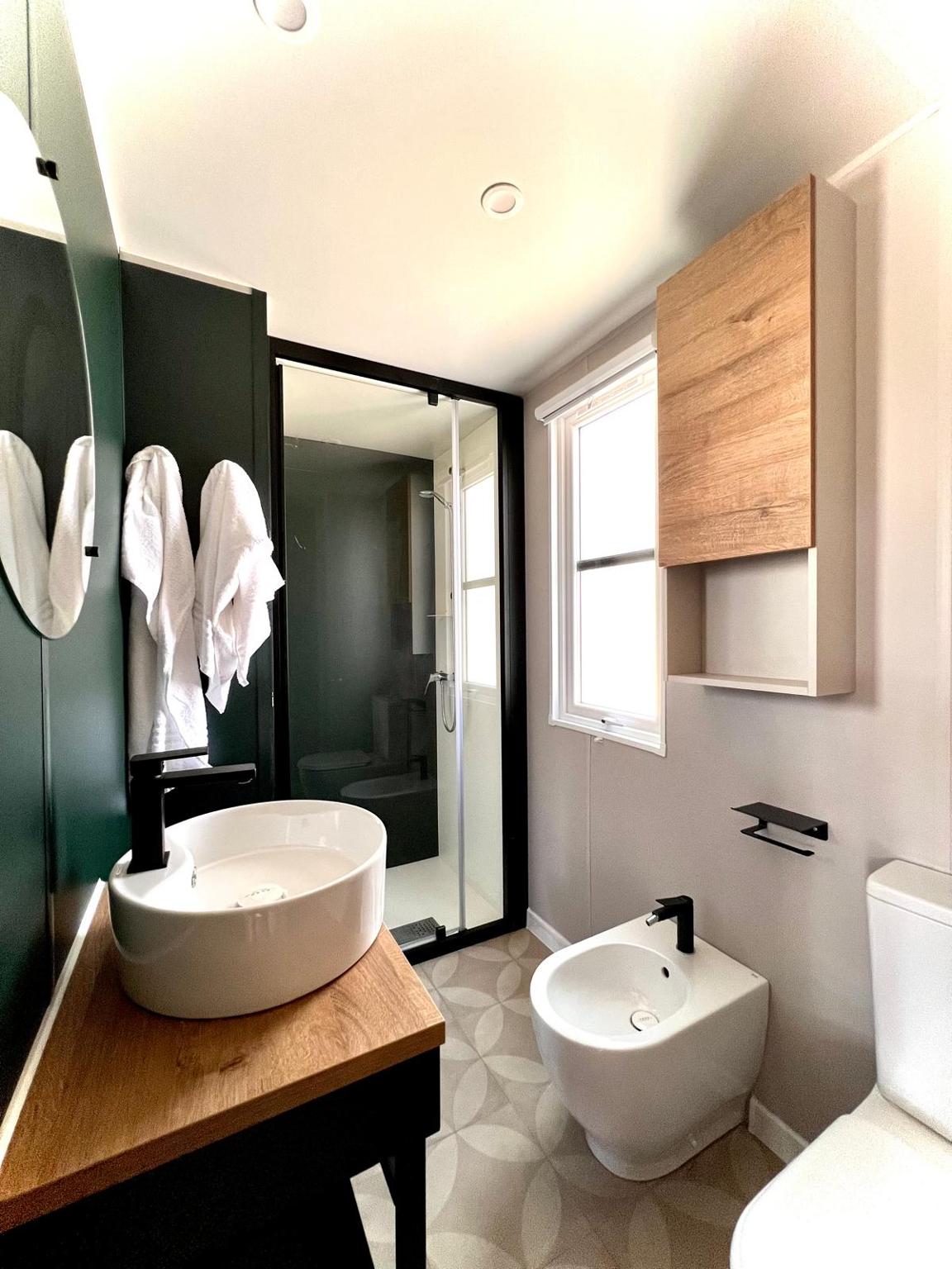 Dos baños con ducha (bidet no disponible), cocineta frigorifico/congelator, TV y aire acondicionado/calefaccion