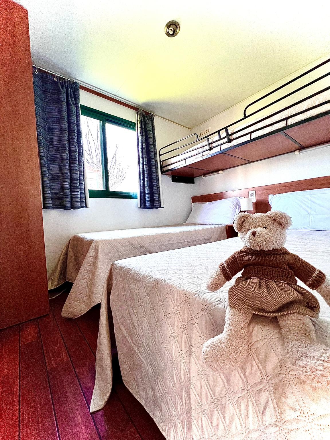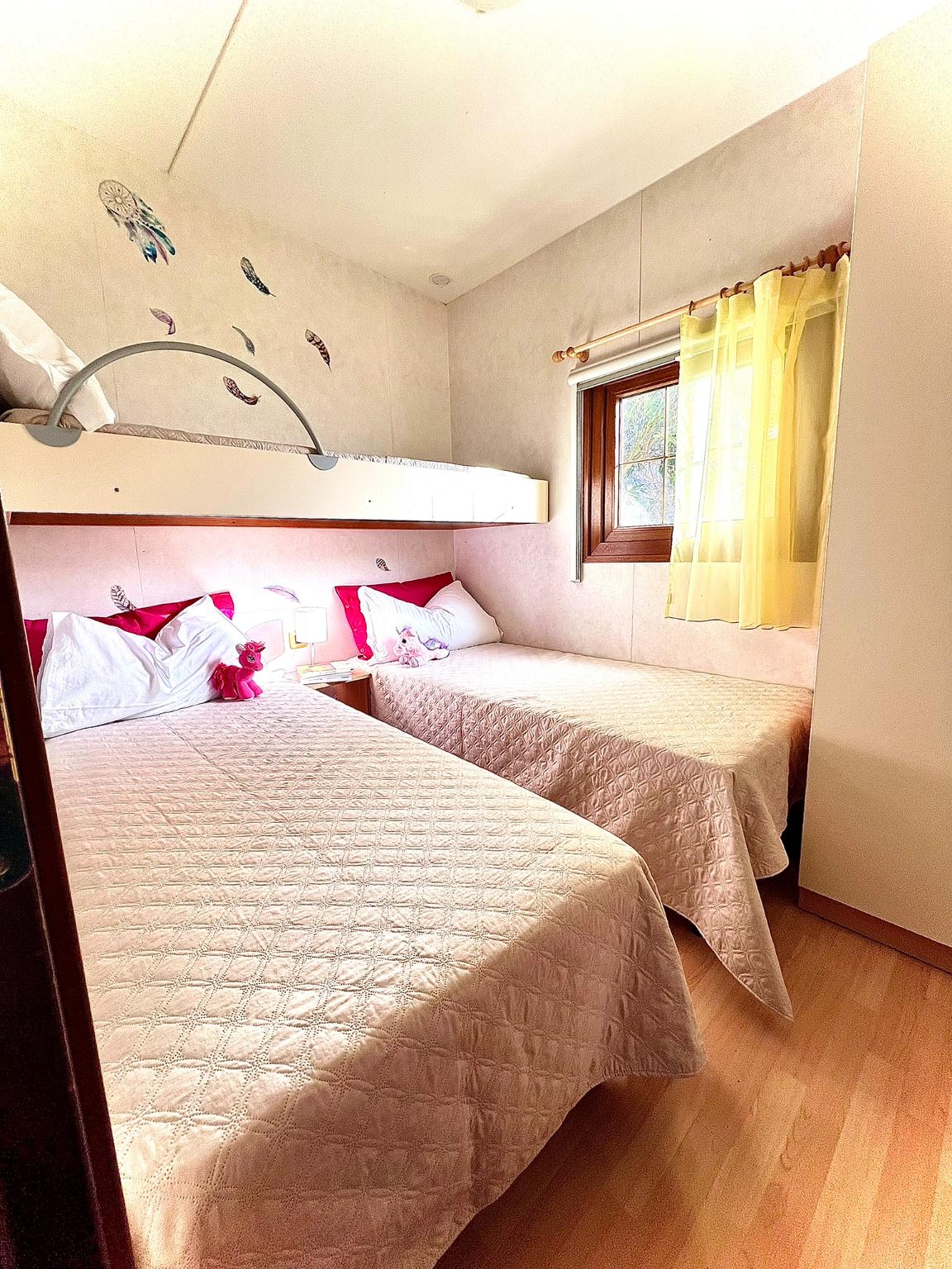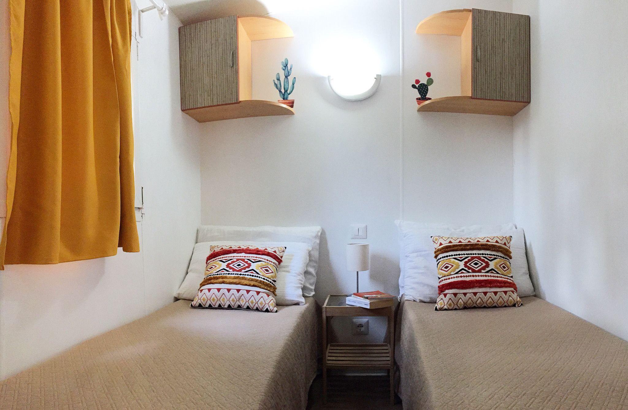 Casa movìl con habitacion doble ( cama francesa), habitacion con camas individuales.