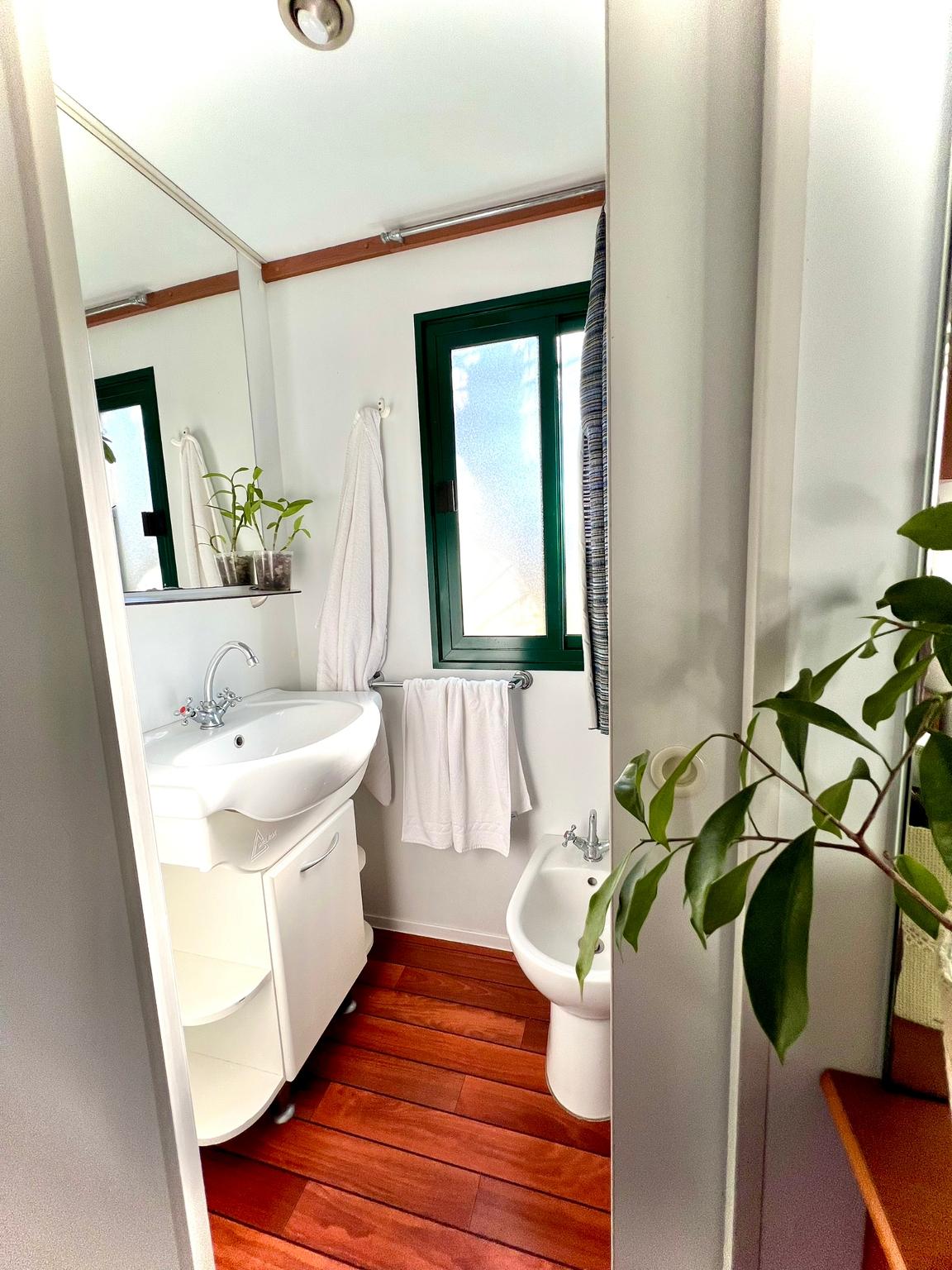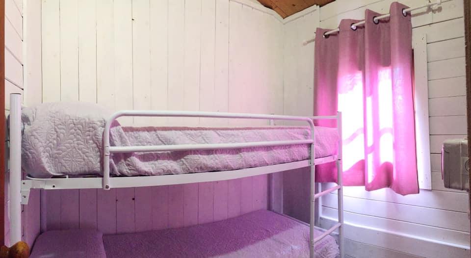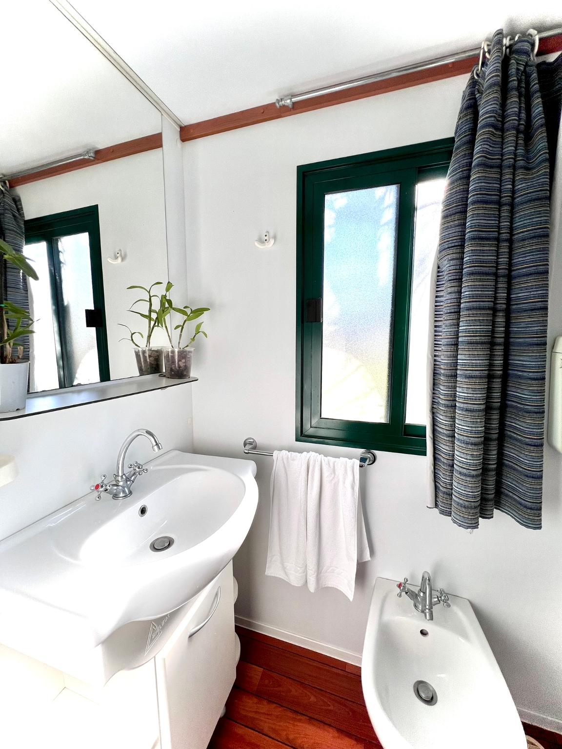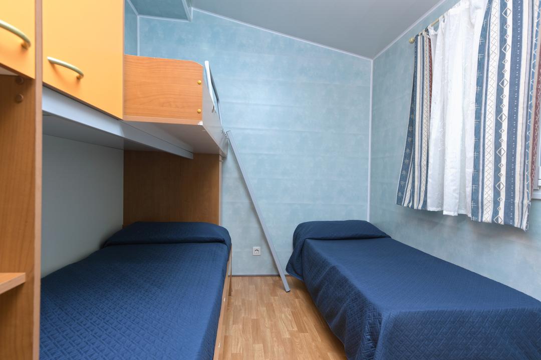 Casa movìl con habitacion doble ( cama francesa), habitacion con camas individuales.