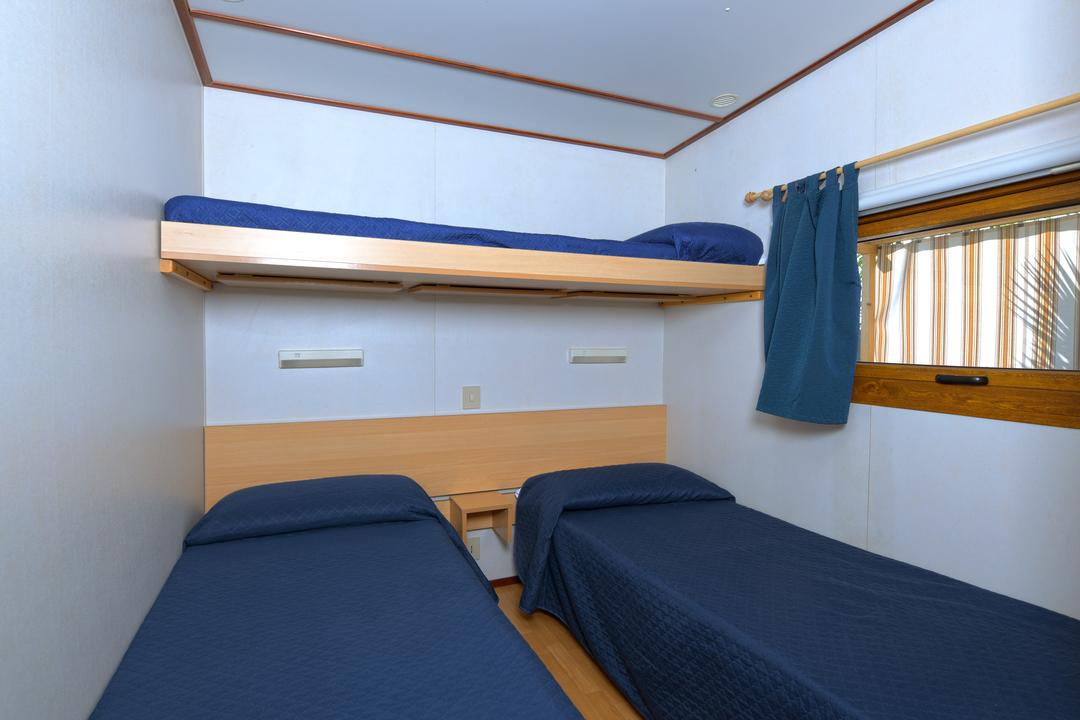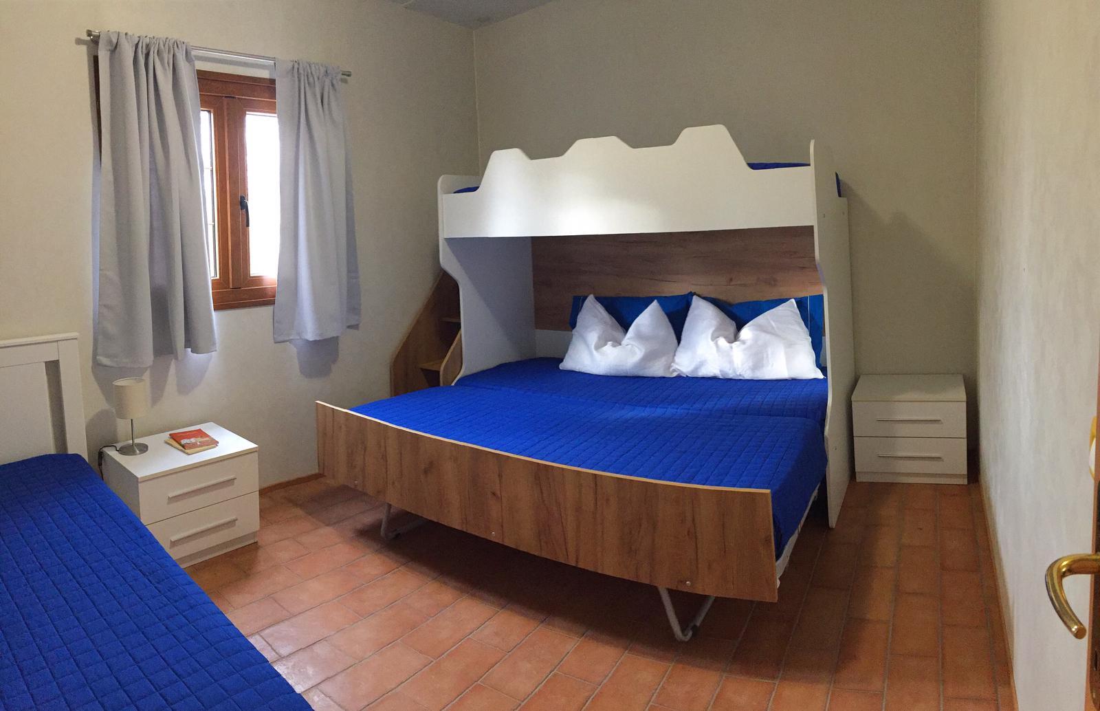 DESCRIPCIÓN: Doble habitacion, Dormitorio con litera (la cama alta es sólo para un niño hasta de 7 años), cama individual y cama plegable. Gran salón con sofá Kitchenette, fregadero, horno y frigorífico. Cuarto de baño con cabina de ducha de pared y plato bajado, lavabo, bidé, WC.