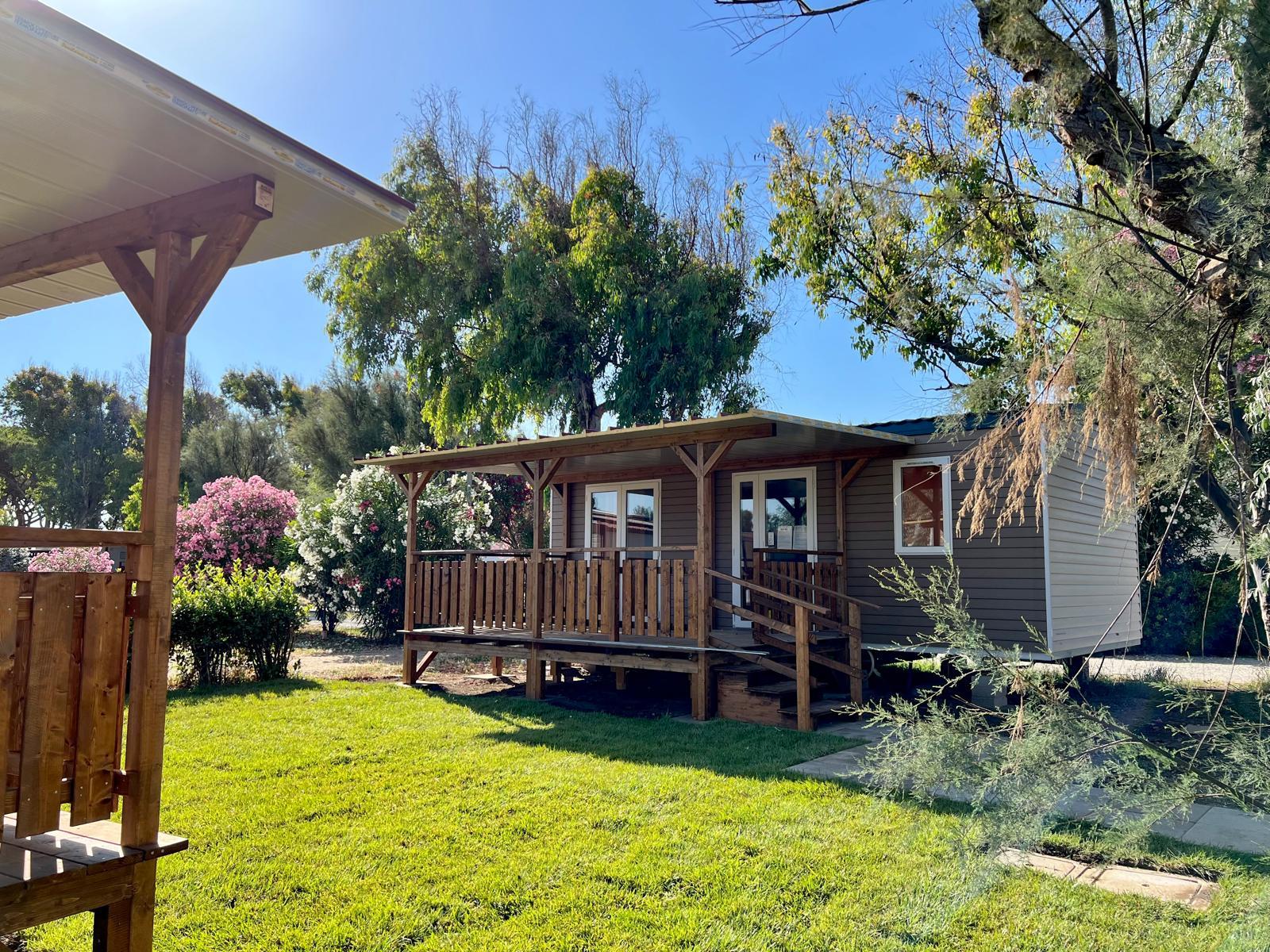 Casa móvil con gran cuidado en el diseño, esta al límite de el pinar y cerca de la piscina.