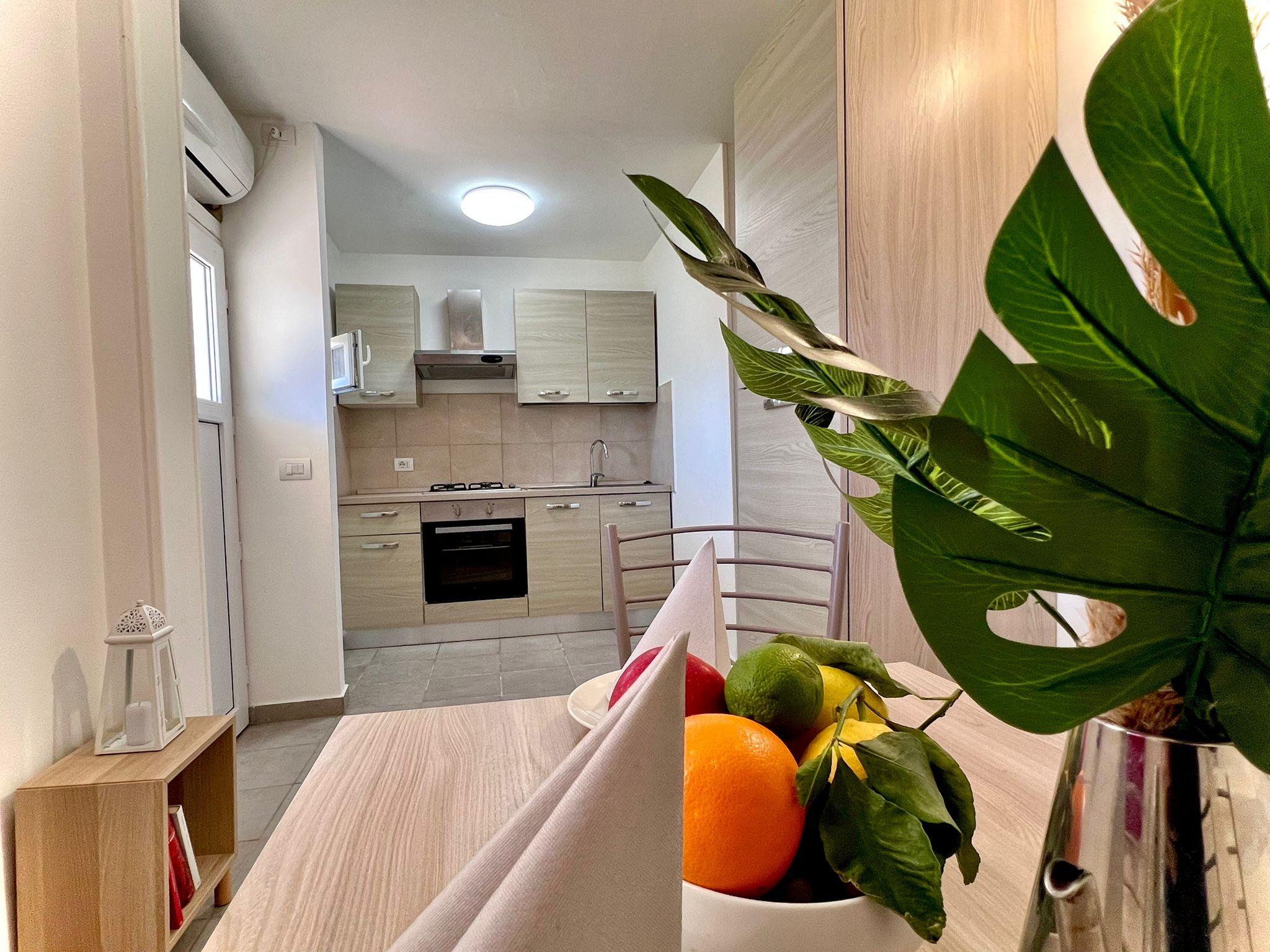 Una pequeña terraza equipada con mesa y sillas ofrece un agradable rincón de relajación. Servicios: aire acondicionado y calefacción, TV, frigorífico. Sombrilla con 2 tumbonas en la playa