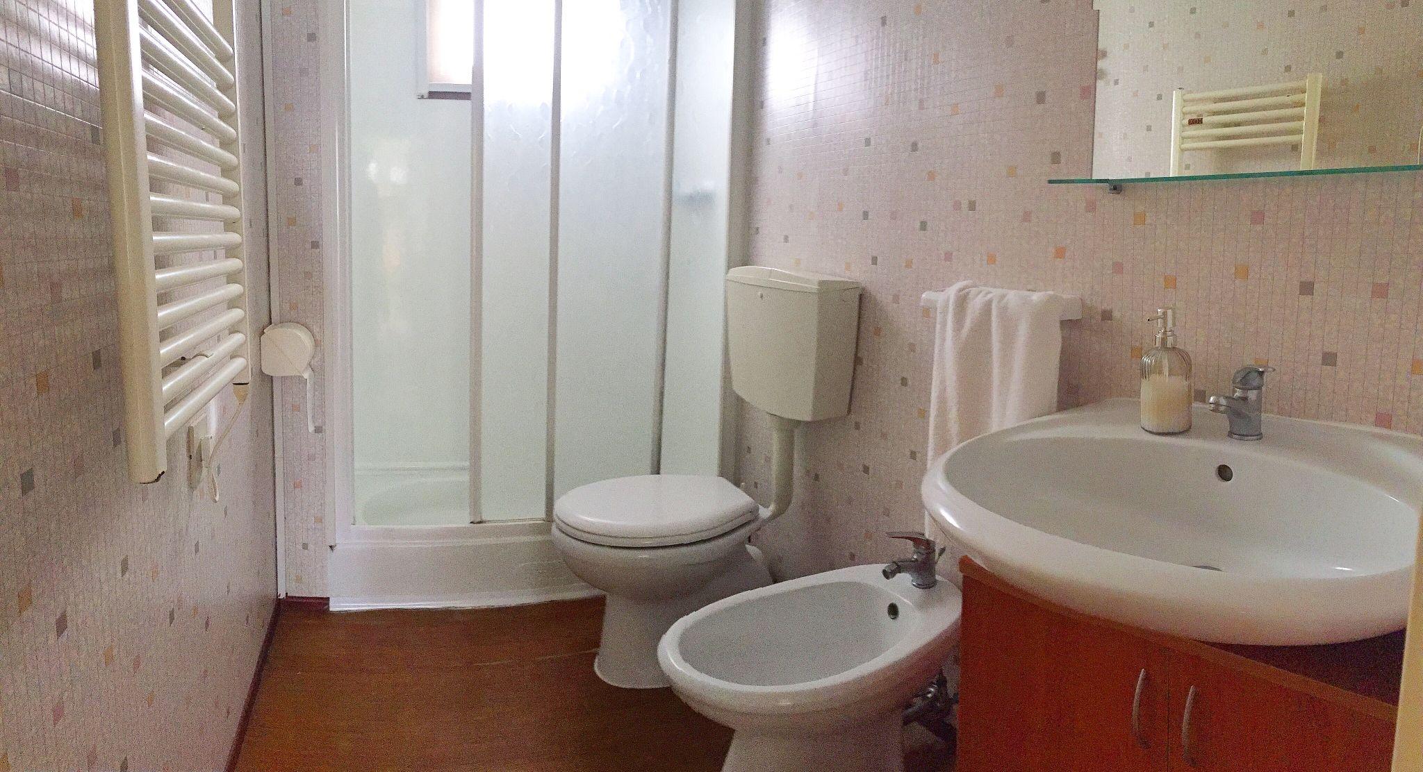 habitación doble, habitación con dos camas individuales y una litera, baño con ducha y bidè, cocineta con frigorifico/ congelator, TV y aire acondicionado/calefaccion