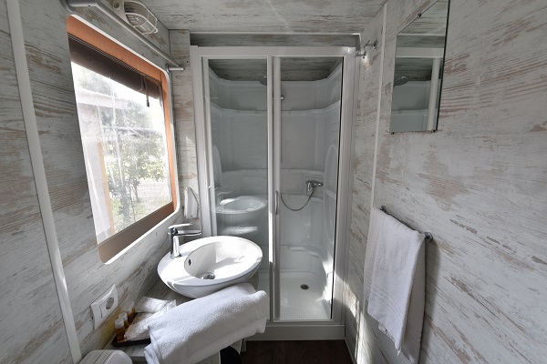 Elles ont une chambre avec un confortable lit double, une deuxième chambre avec un lit simple et un lit superposé, un grand séjour avec coin cuisine et salle de bains avec douche et lavabo. La grande terrasse extérieure où vous pourrez vous détendre, devient une seule pièce avec le salon lorsque les rideaux antérieurs sont ouverts.