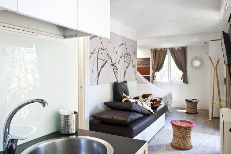Elles ont une chambre avec un lit double, une deuxième chambre avec un lit simple et un lit superposé, un grand séjour avec coin cuisine et salle de bains avec douche et lavabo.