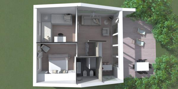 Les Bungalows Deluxe, en matériaux de haute qualité, avec l’utilisation des couleurs naturelles, l’attention aux détails et le confort, sont parfaits pour la famille, groupe d’amis, mais aussi pour les couples qui veulent profiter d’un séjour relaxant et inoubliable.Entrée indépendante, grandes fenêtres, véranda avec table et bancs. Intérieur équipé d’une climatisation réglable. 2 chambres, une double avec TV et une avec lits jumeaux (possibilité de lit supplémentaire), salon avec TV, canapé-lit et une kitchenette, salle de bains avec douche. Connexion Wi-Fi gratuite. Max. 6 personnes.